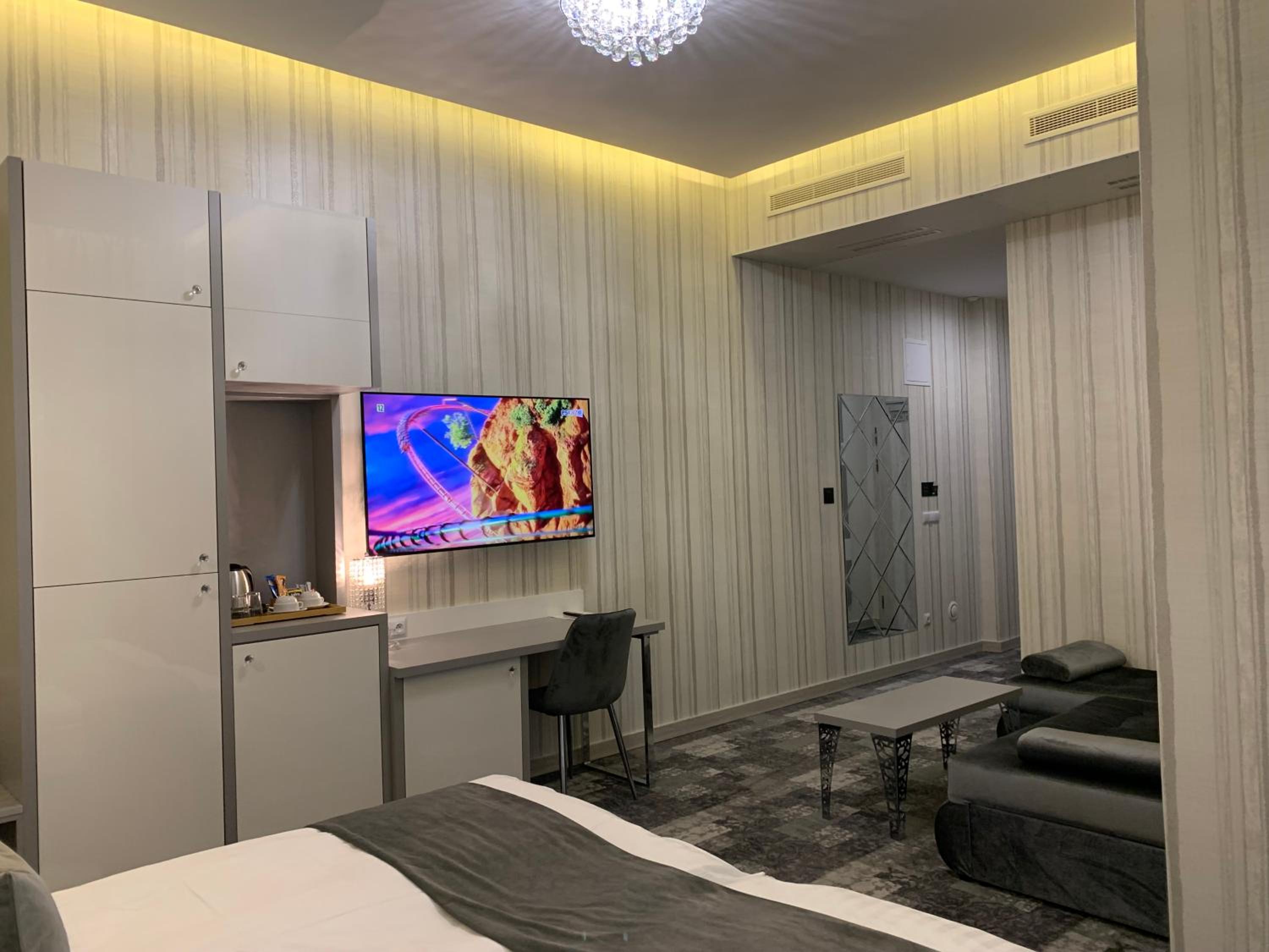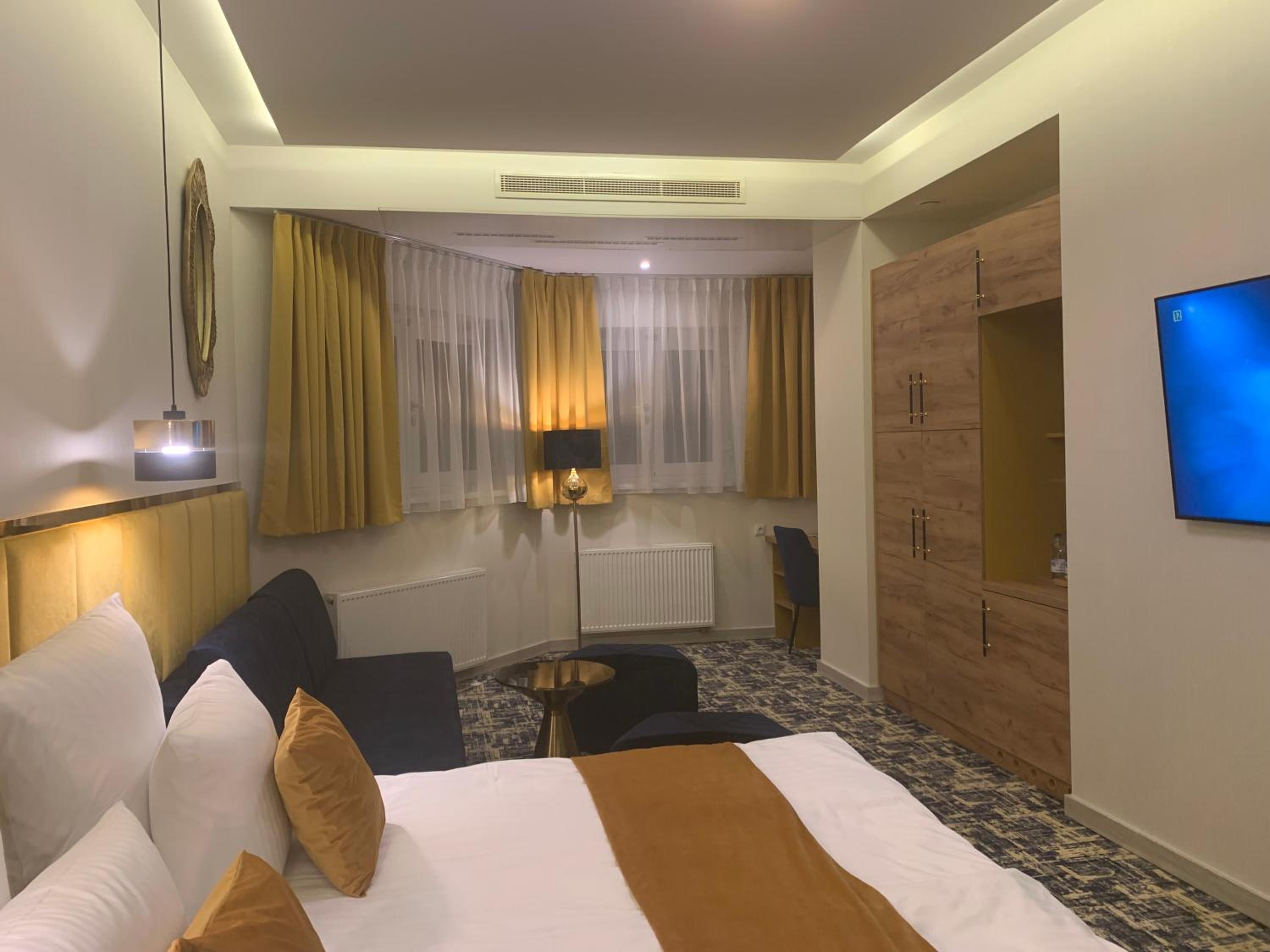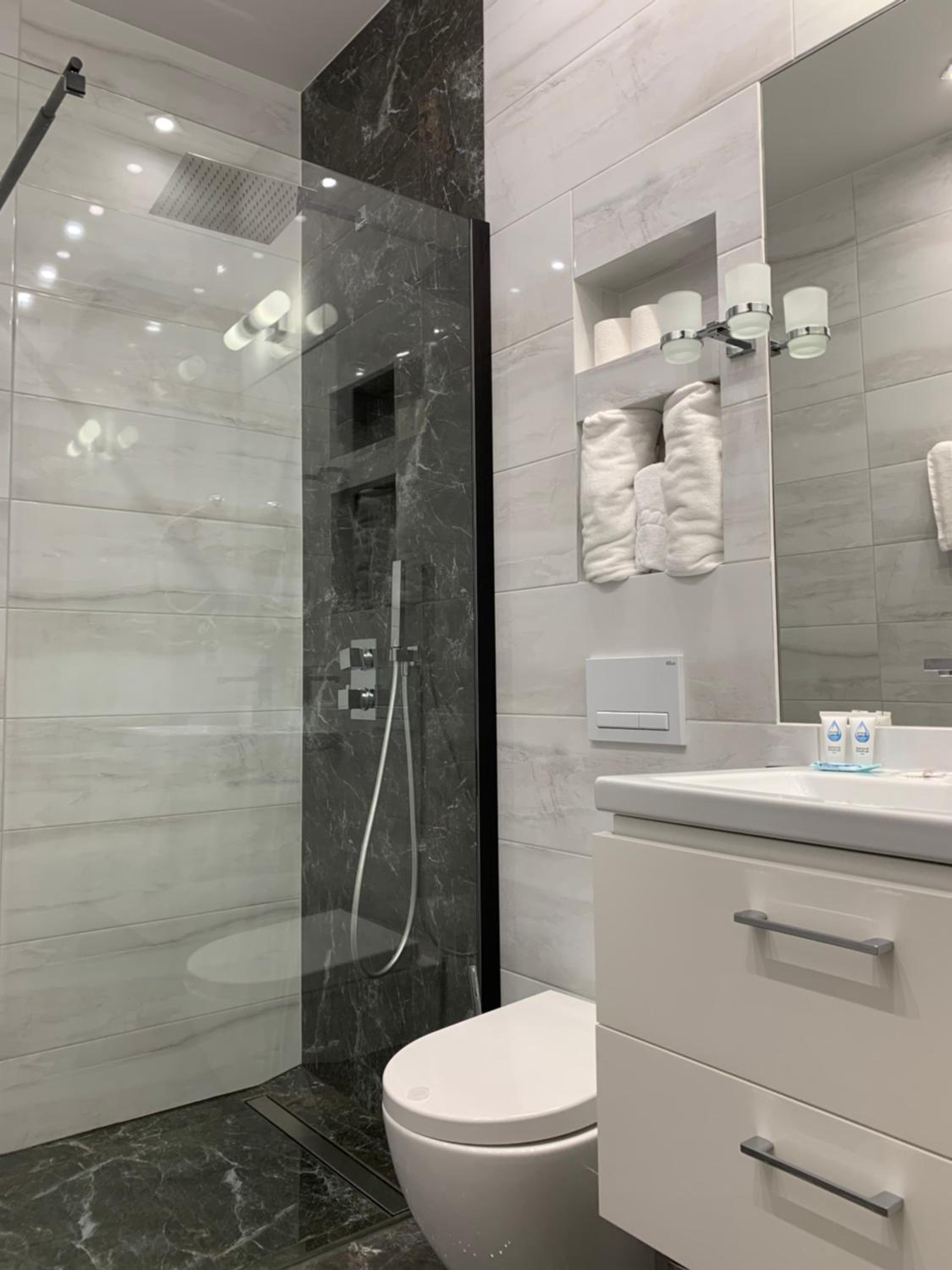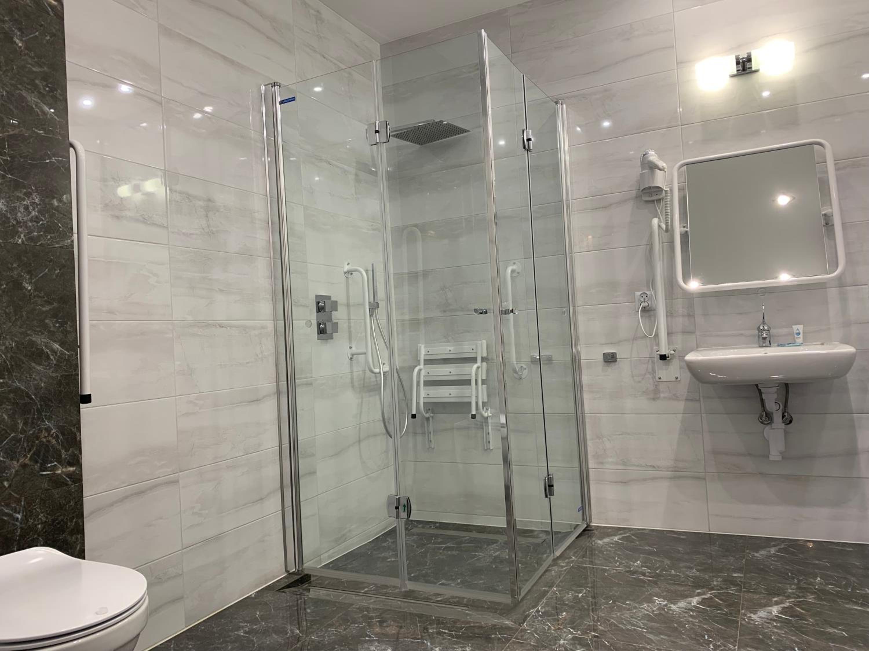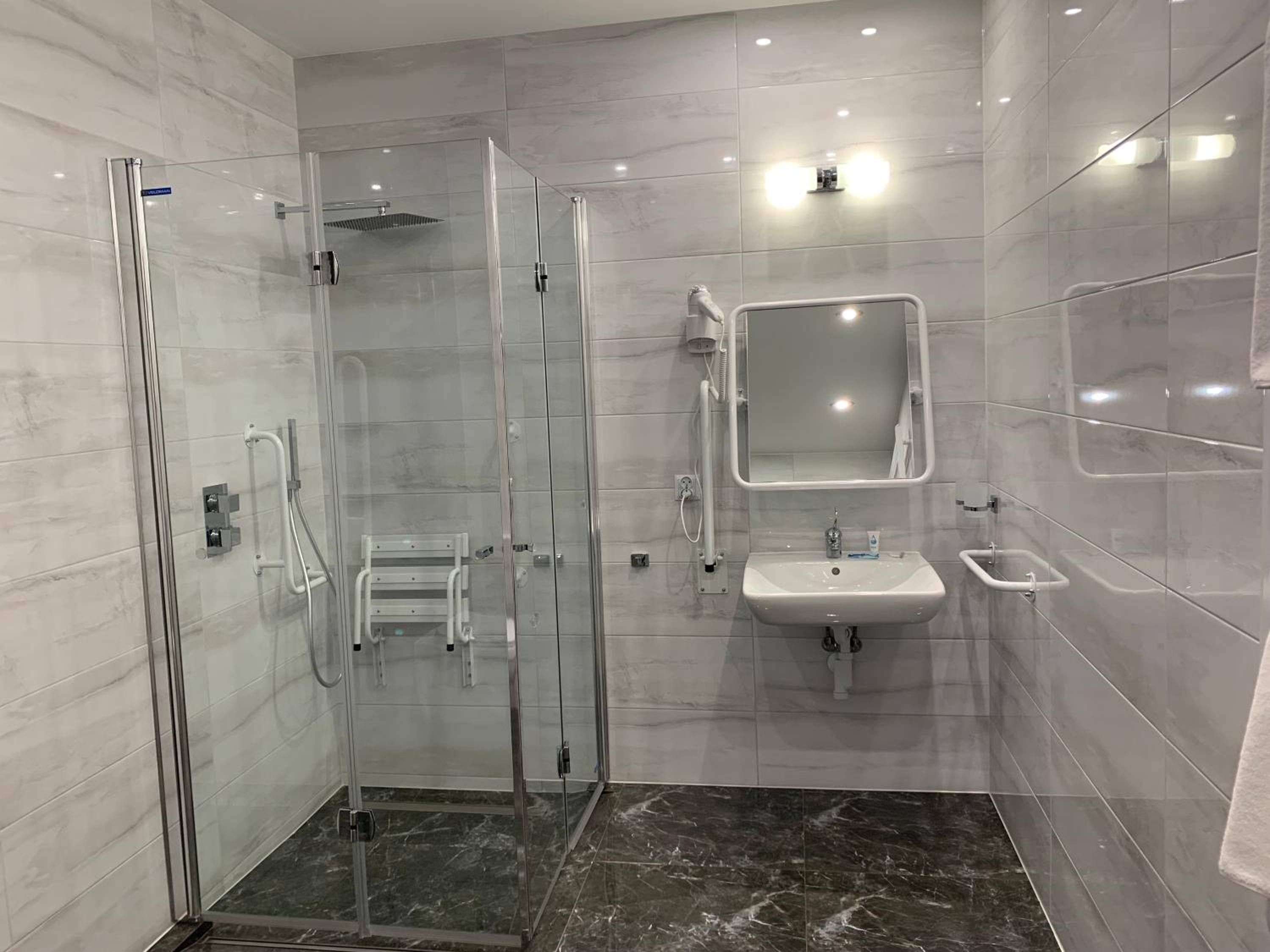 Nowoczesny, duży pokój. Wygodne łóżko. Przestronna łazienka z dużym prysznicem.