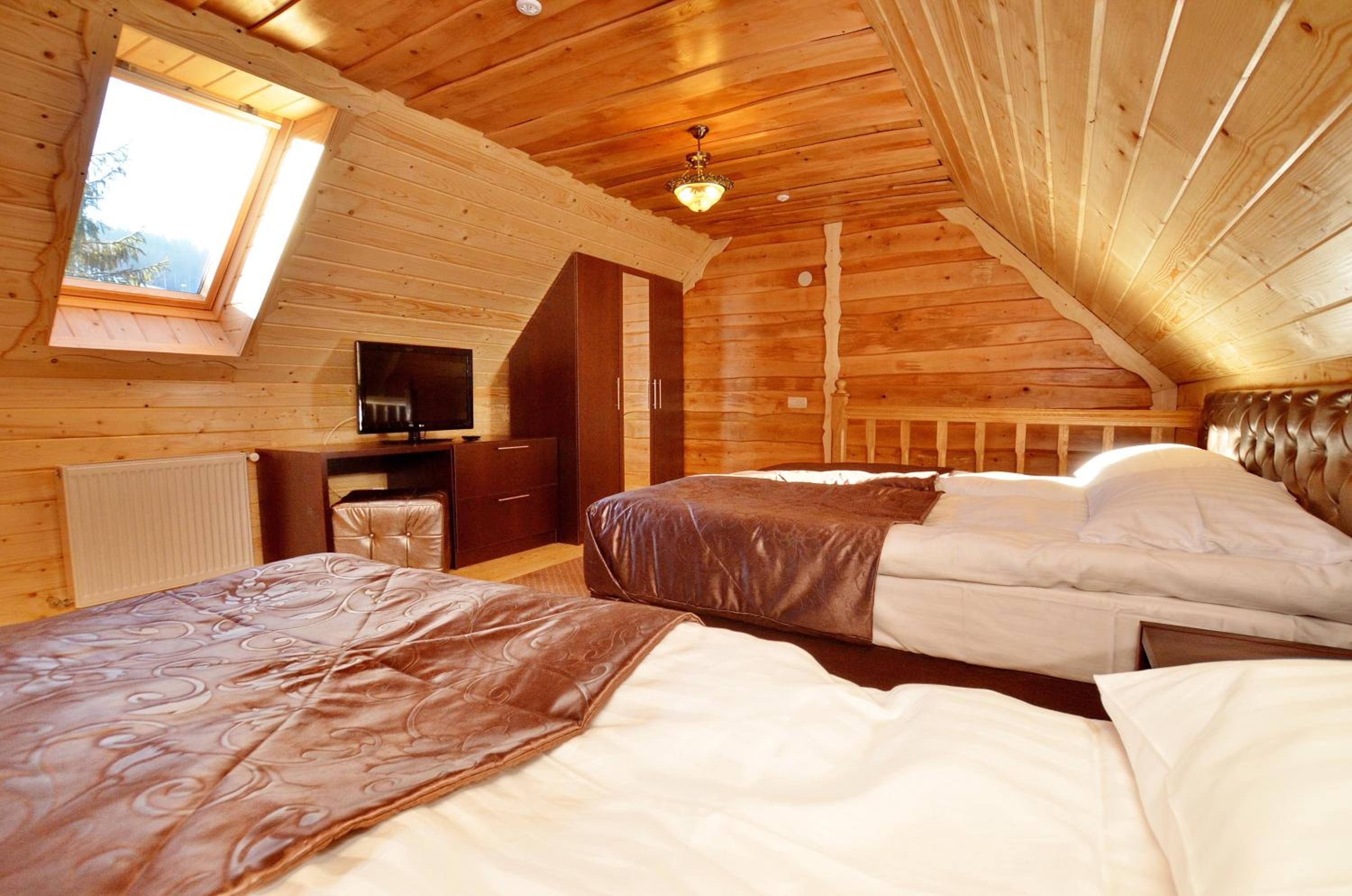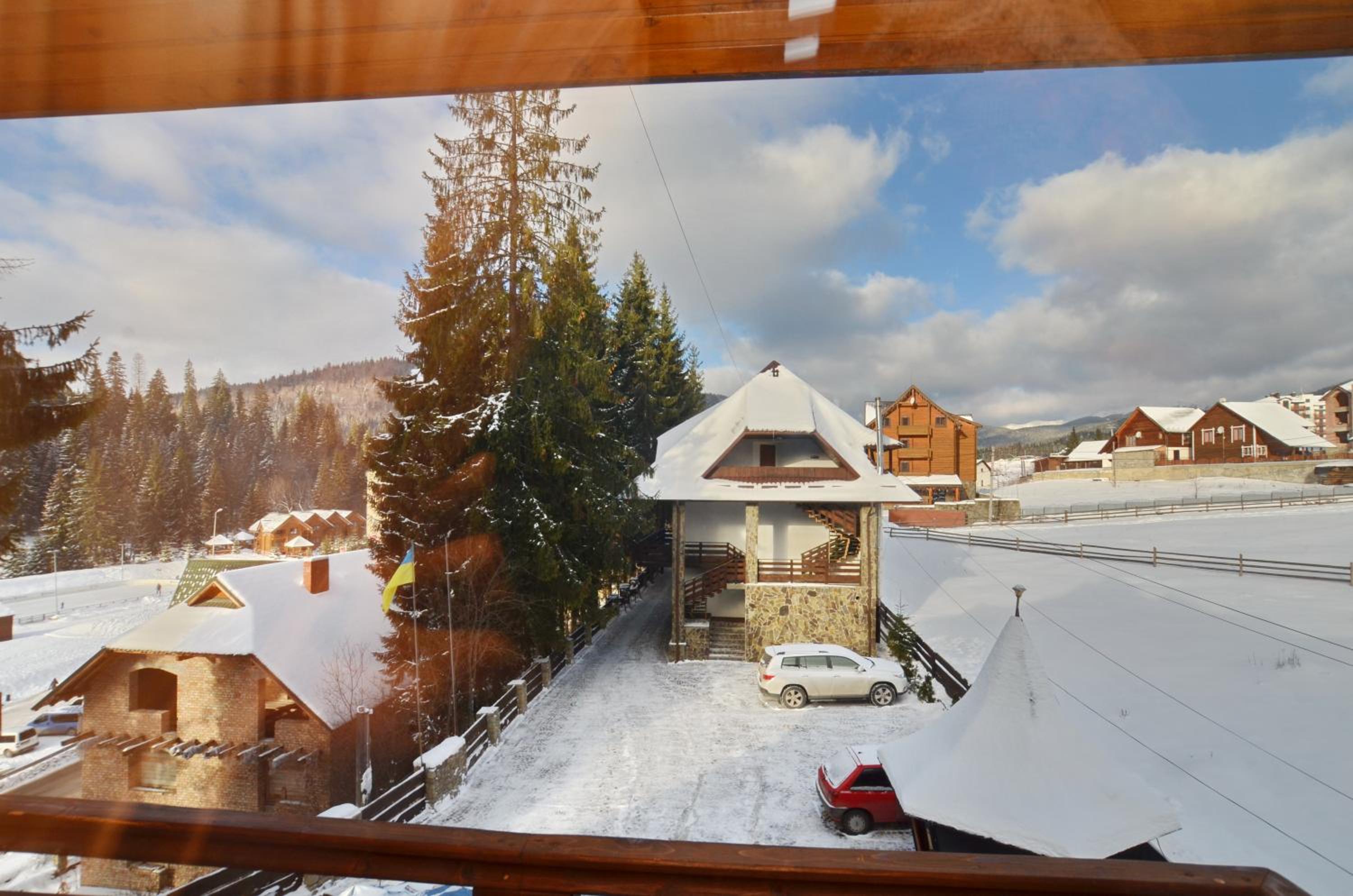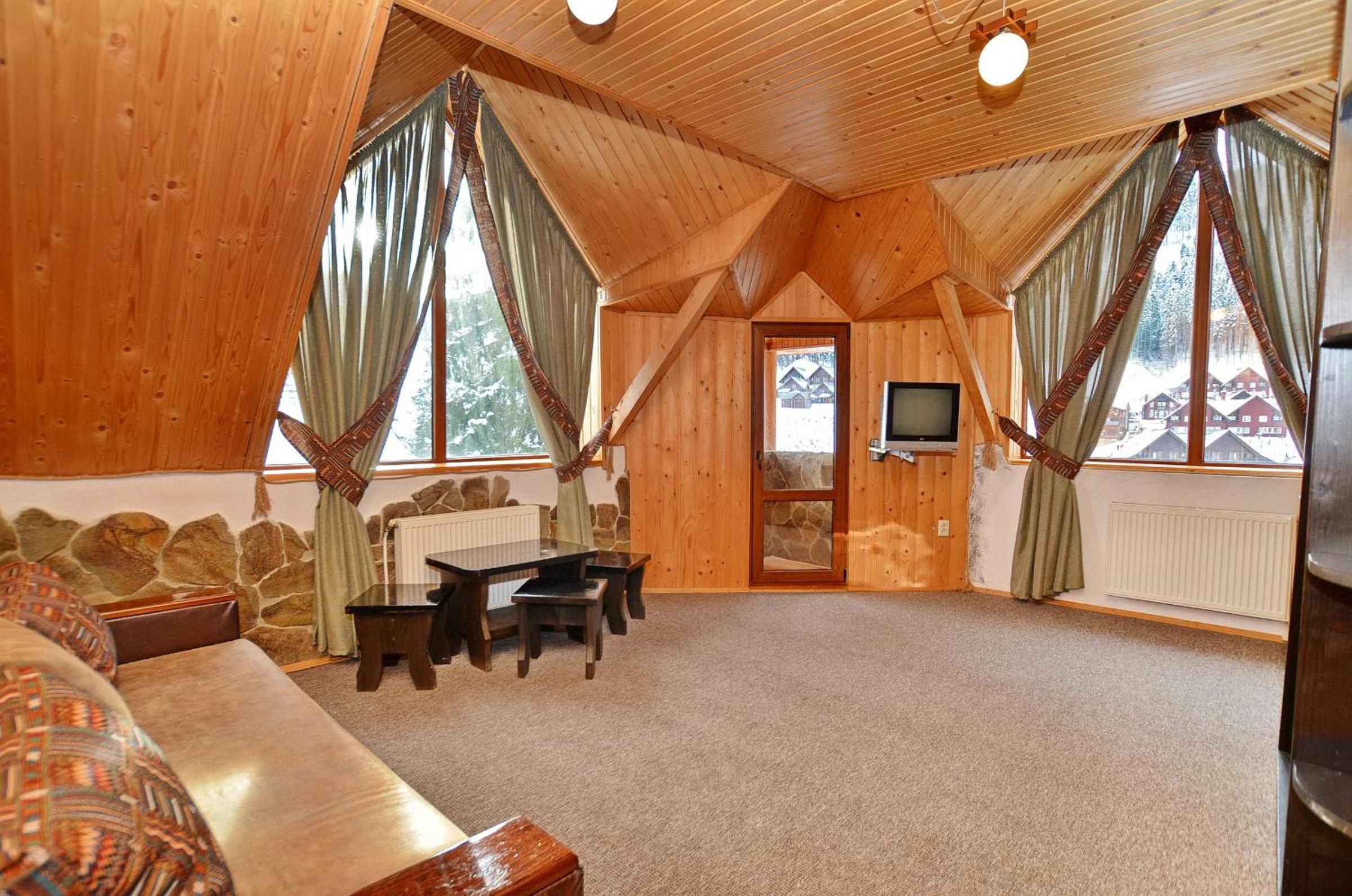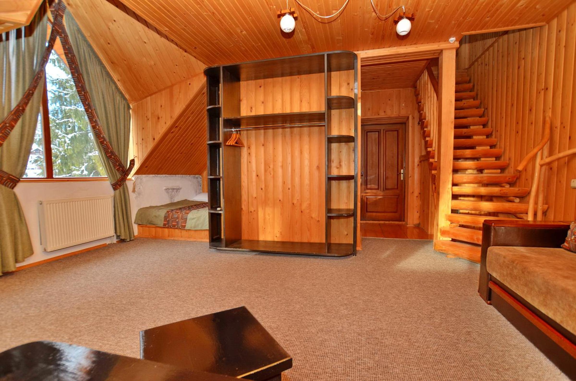 Великий двоповерховий номер для великої родини, є прокат лиж, зранку возять до підйомників. Дуже гарне та смачне дворазове харчування, що включено у вартість. Розташування в самому серці Буковеля. Гостинний персонал, періодичне прибирання в номері. Красивий краєвид з вікон.