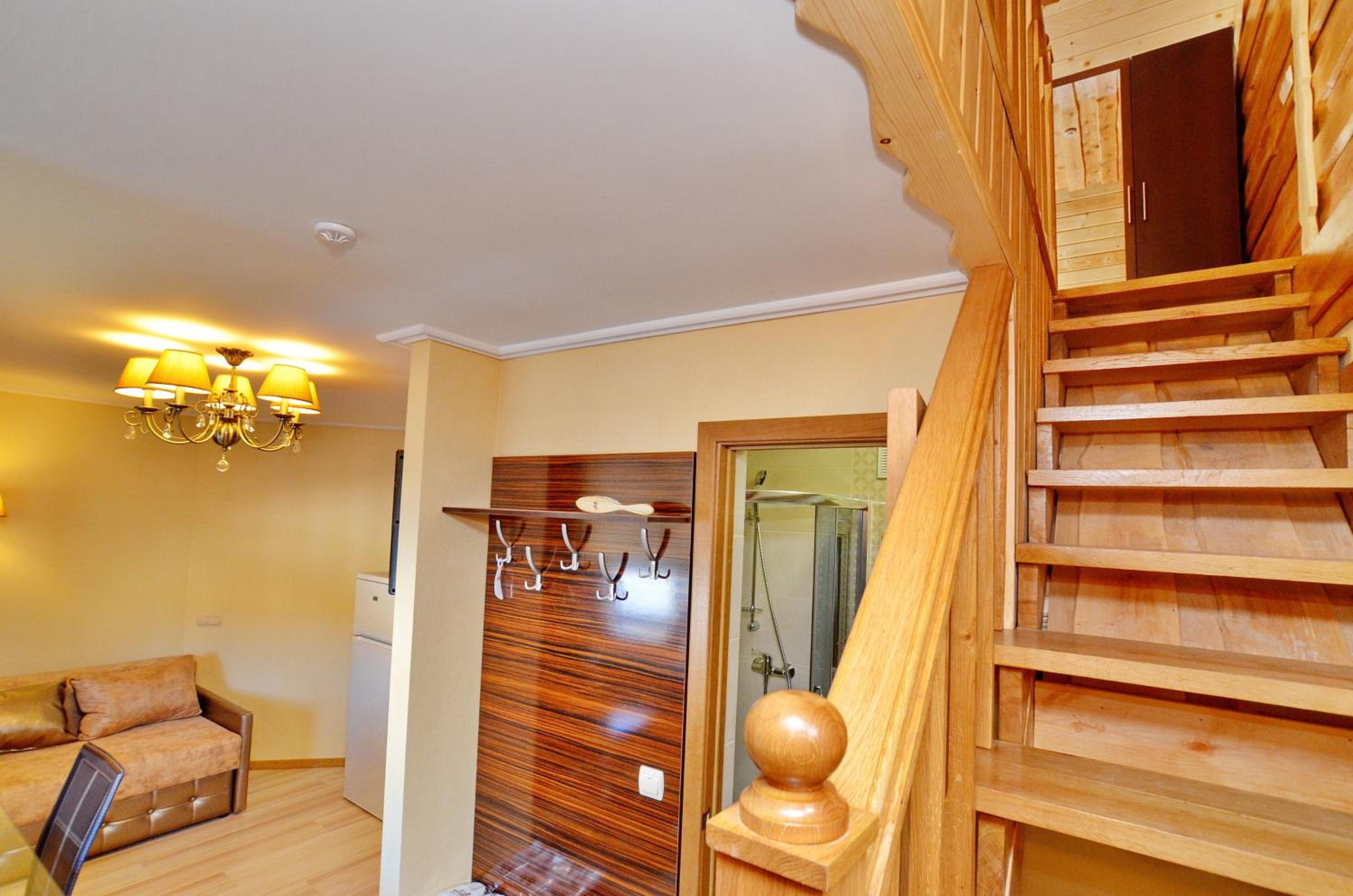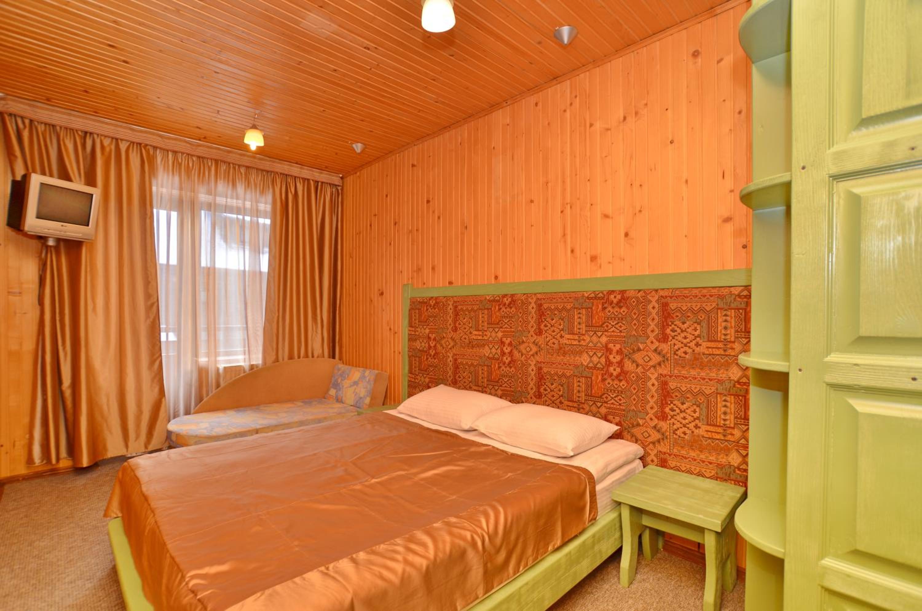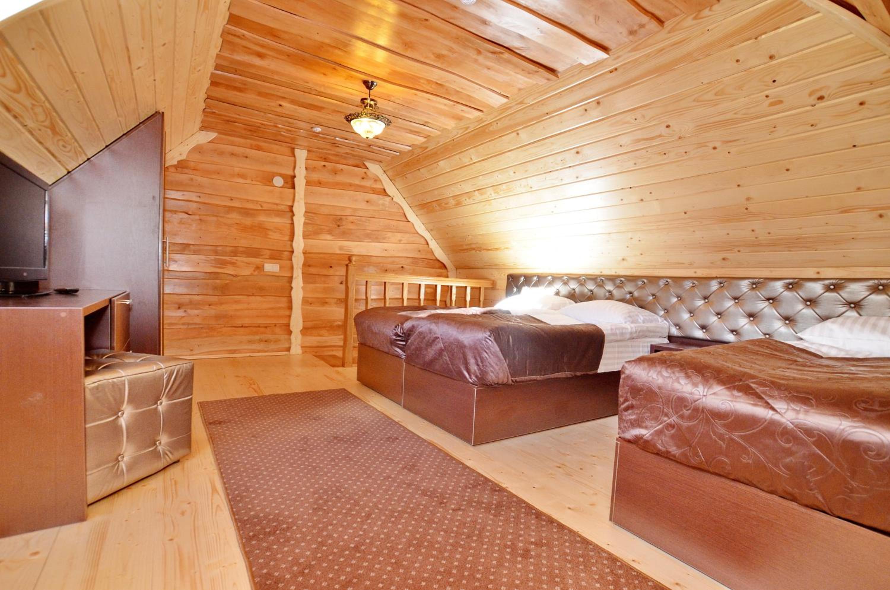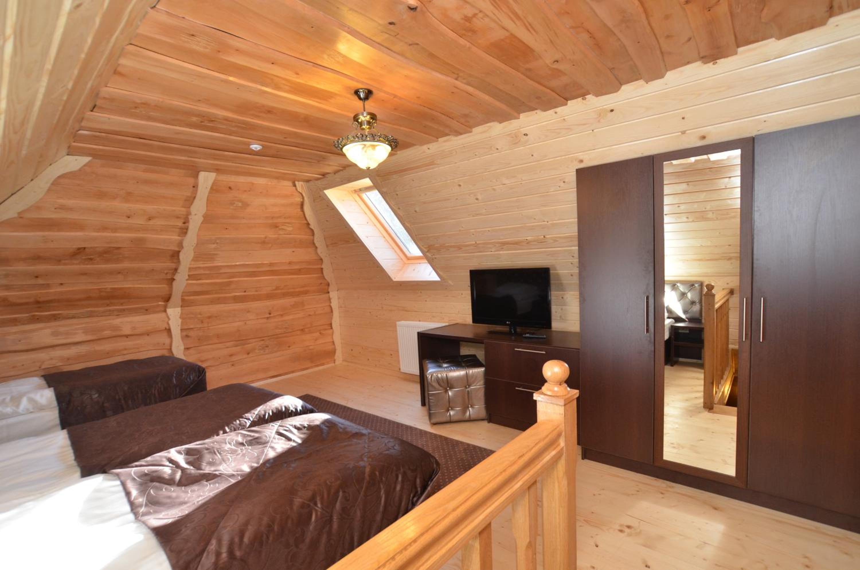 Великий двоповерховий номер для великої родини, є прокат лиж, зранку возять до підйомників. Дуже гарне та смачне дворазове харчування, що включено у вартість. Розташування в самому серці Буковеля. Гостинний персонал, періодичне прибирання в номері. Красивий краєвид з вікон.