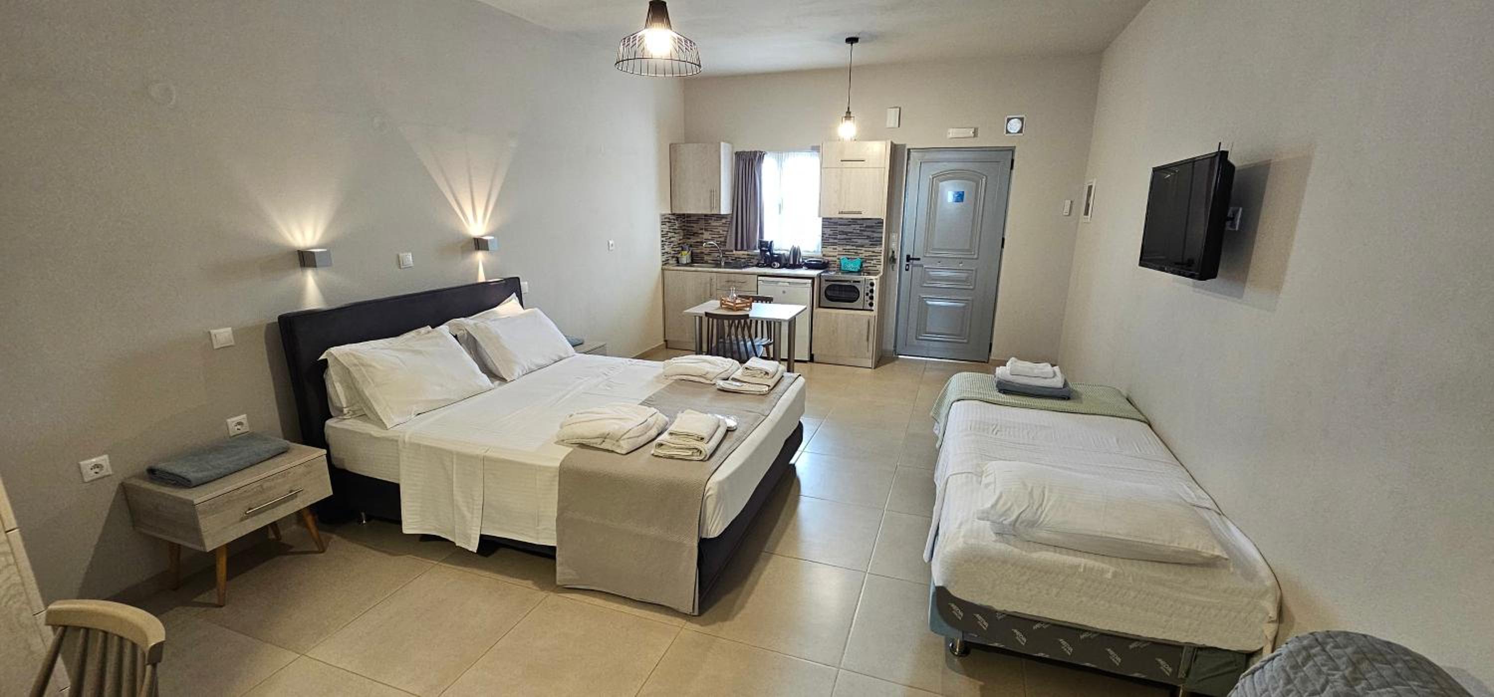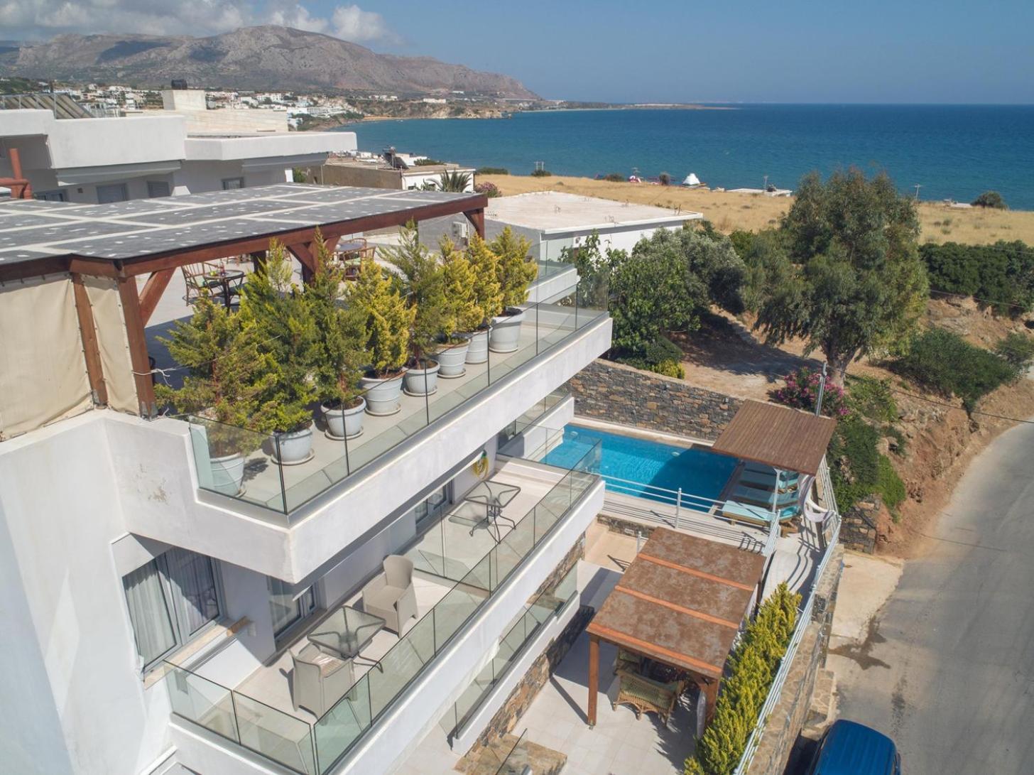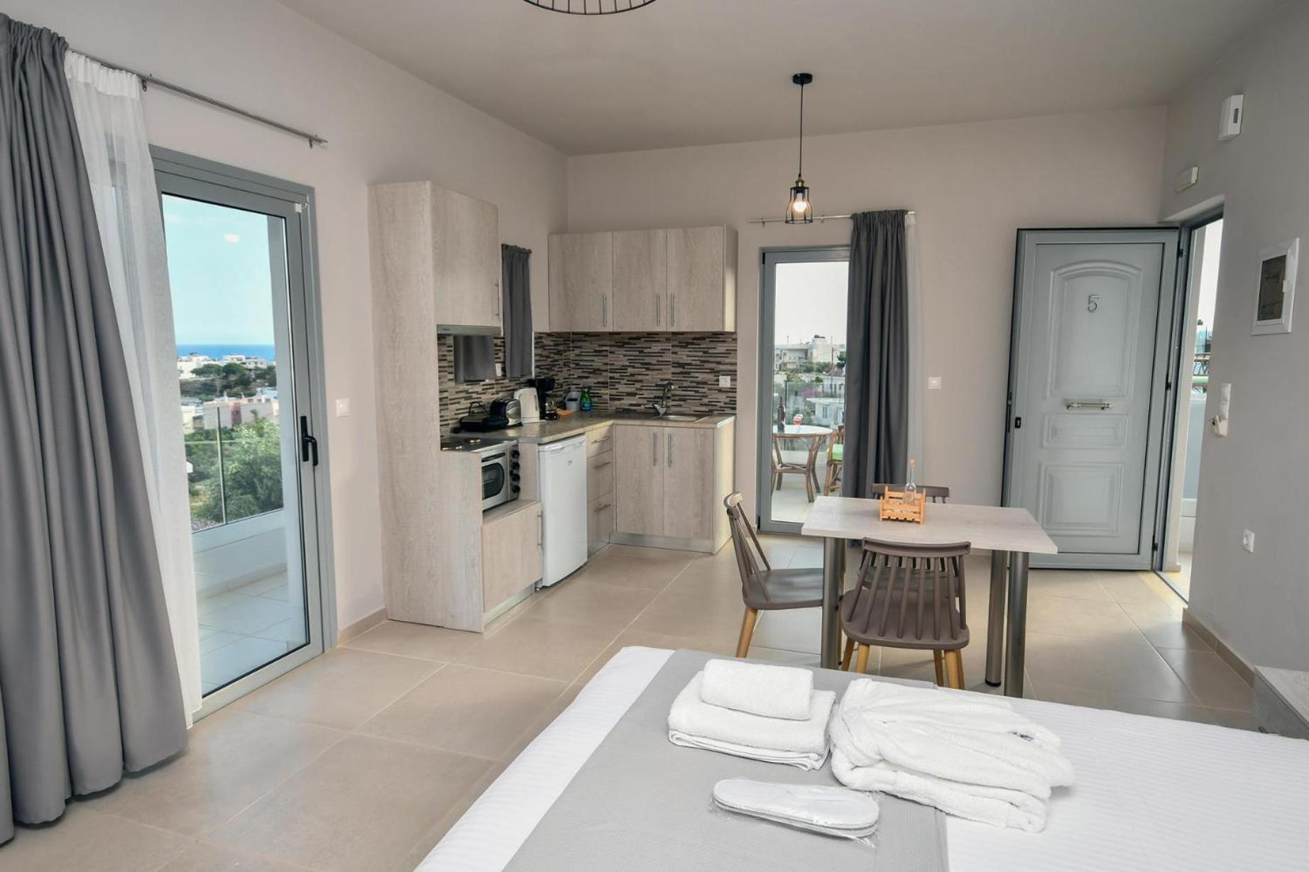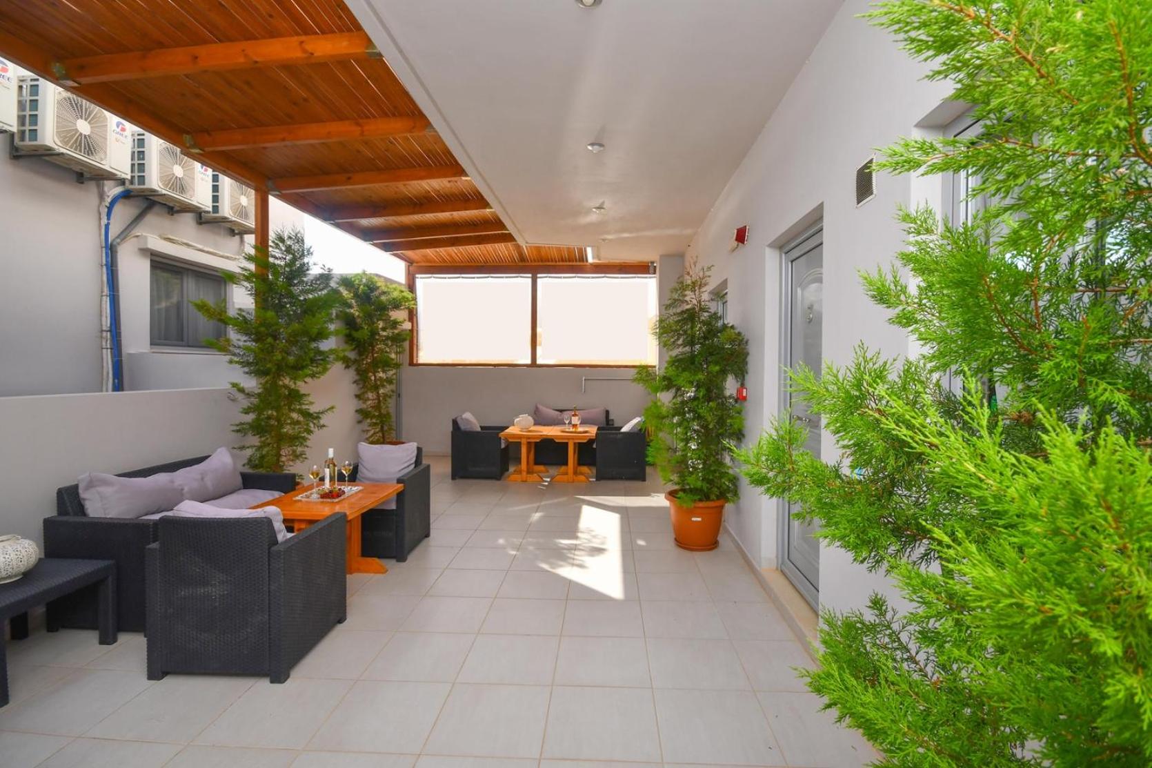 Unwind in the lush garden, take a refreshing dip in the outdoor swimming pool, or socialize in the shared lounge area. With Makrigialos Beach just 400 meters away and Kalamokanias Beach a short distance from the aparthotel, you're in for a treat of sun, sand, and sea.