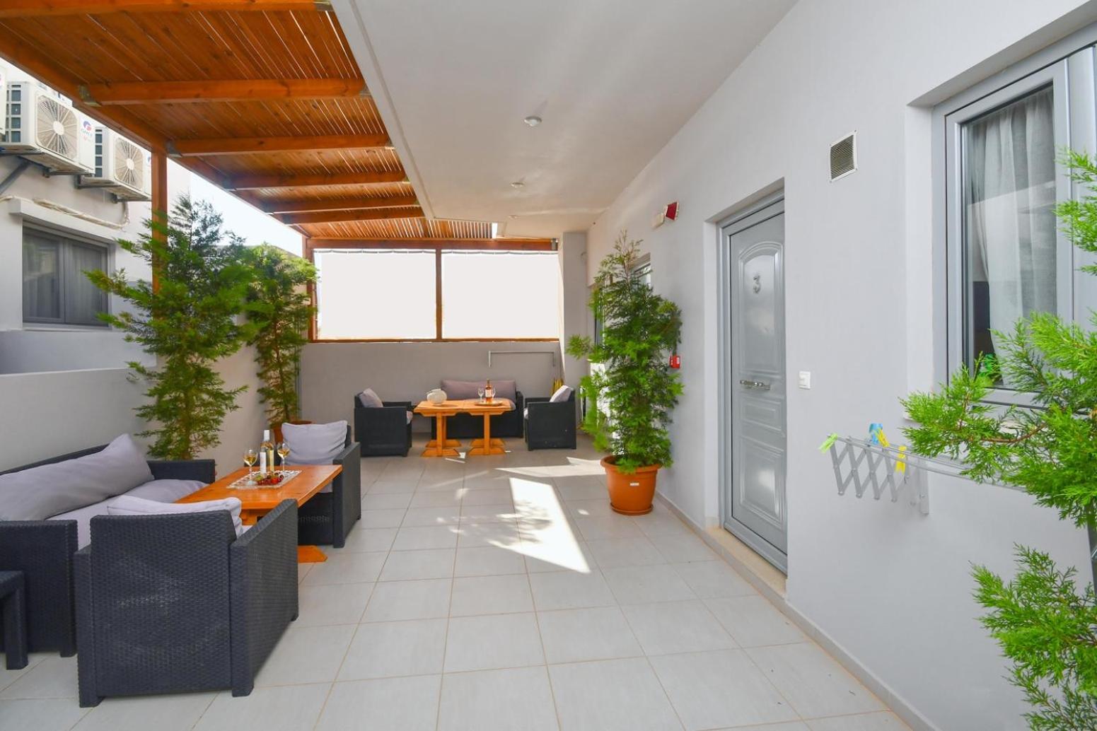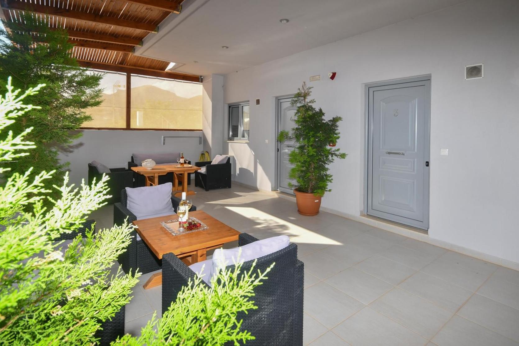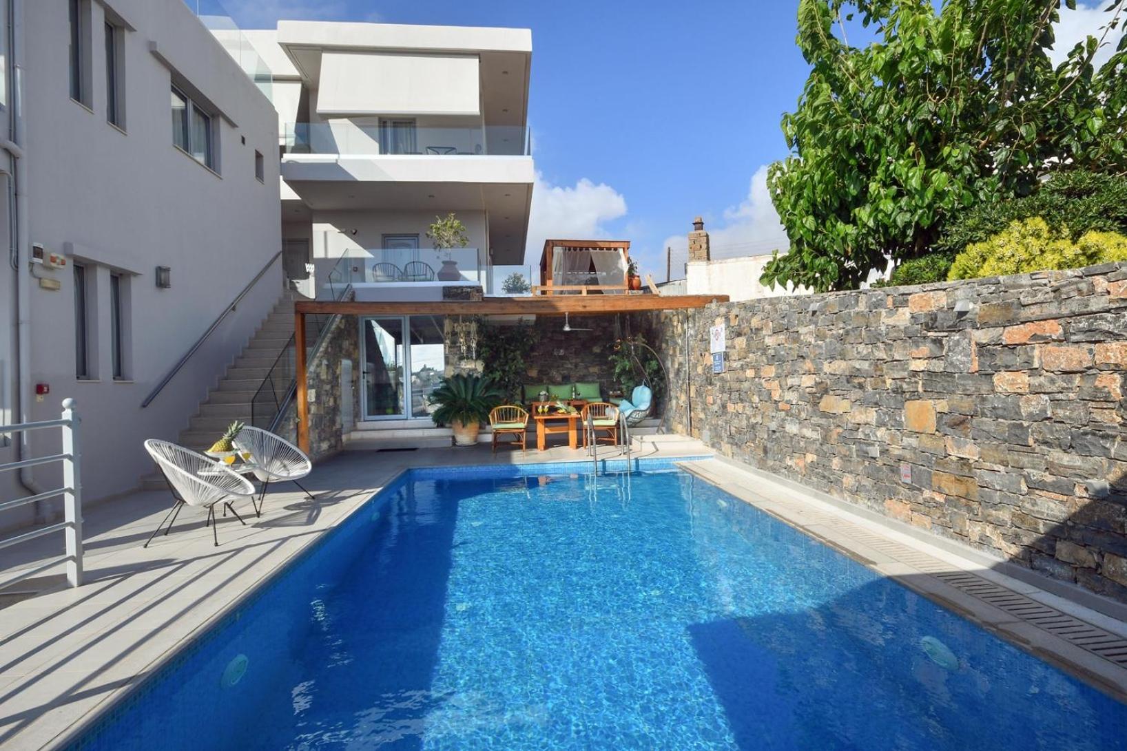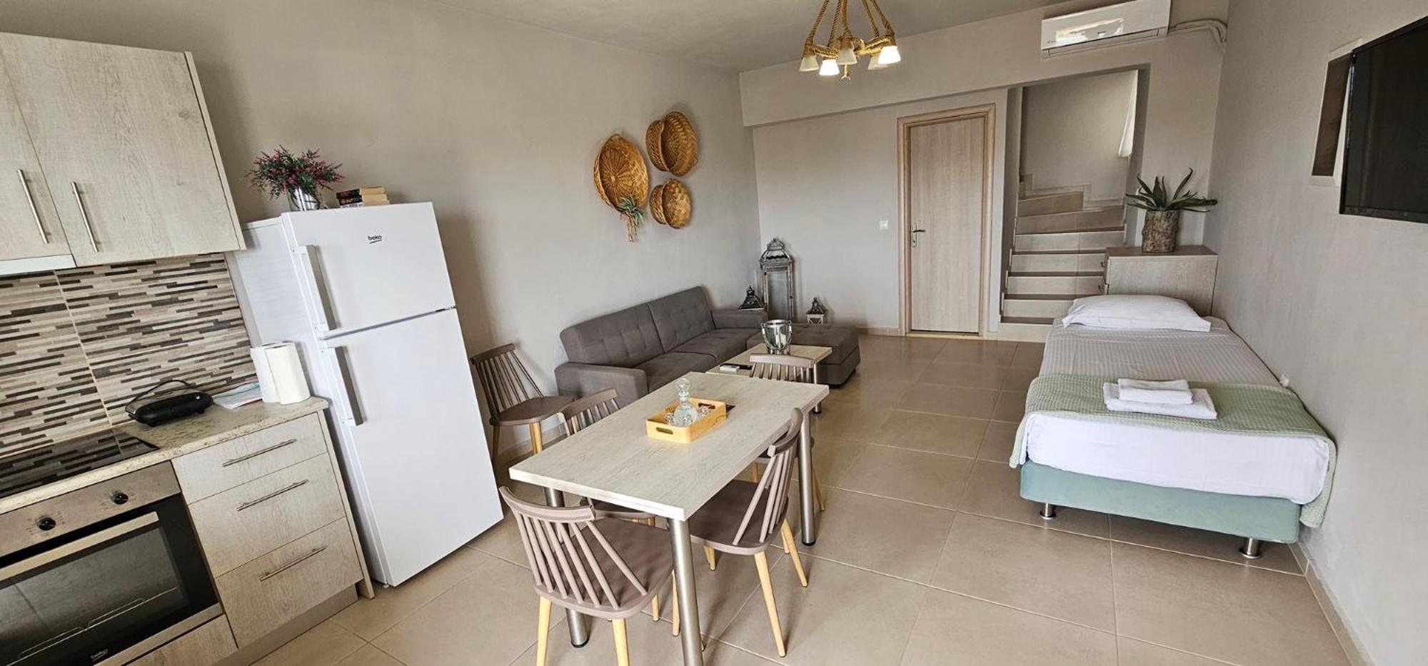 Unwind in the lush garden, take a refreshing dip in the outdoor swimming pool, or socialize in the shared lounge area. With Makrigialos Beach just 400 meters away and Kalamokanias Beach a short distance from the aparthotel, you're in for a treat of sun, sand, and sea.