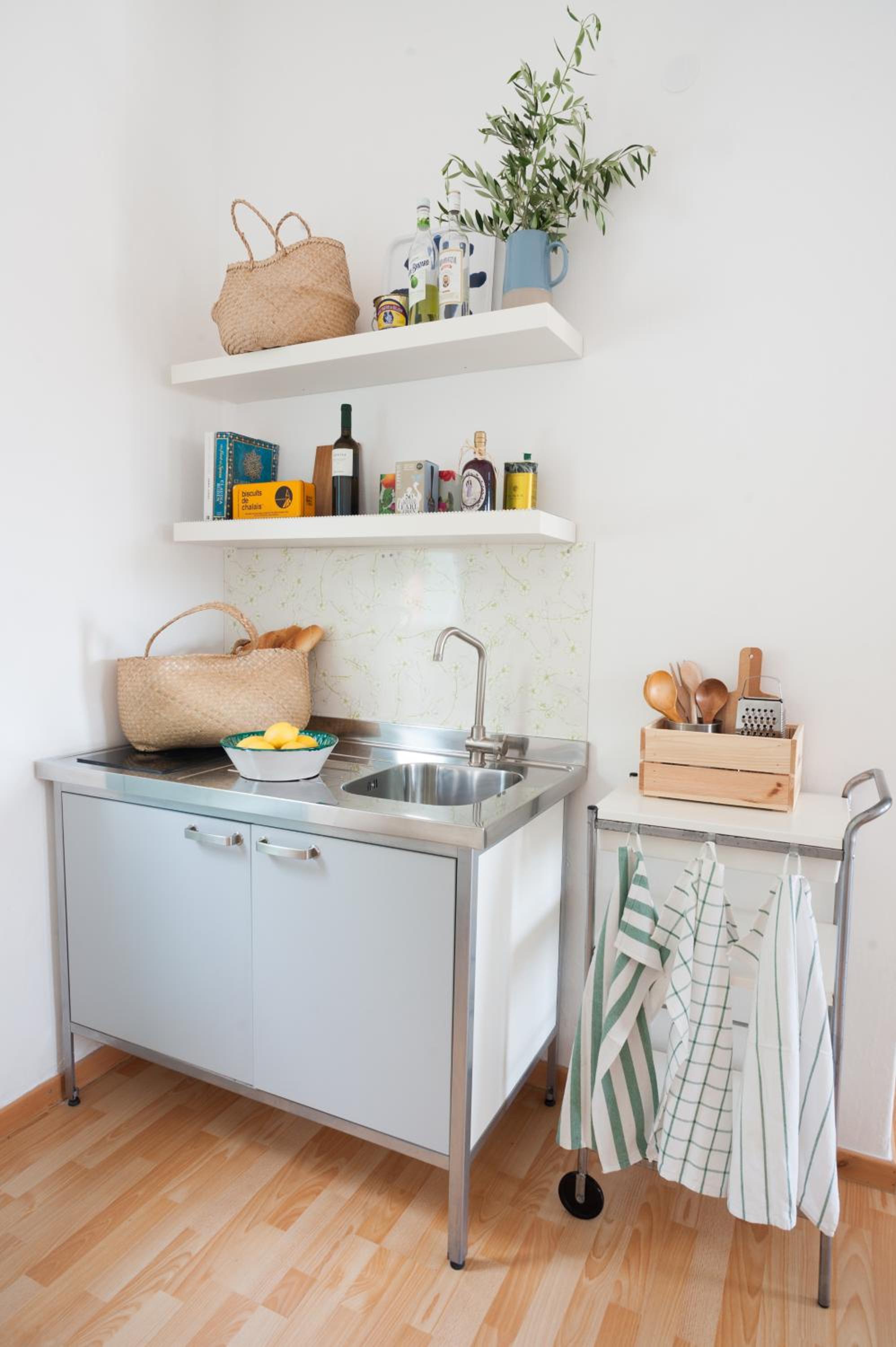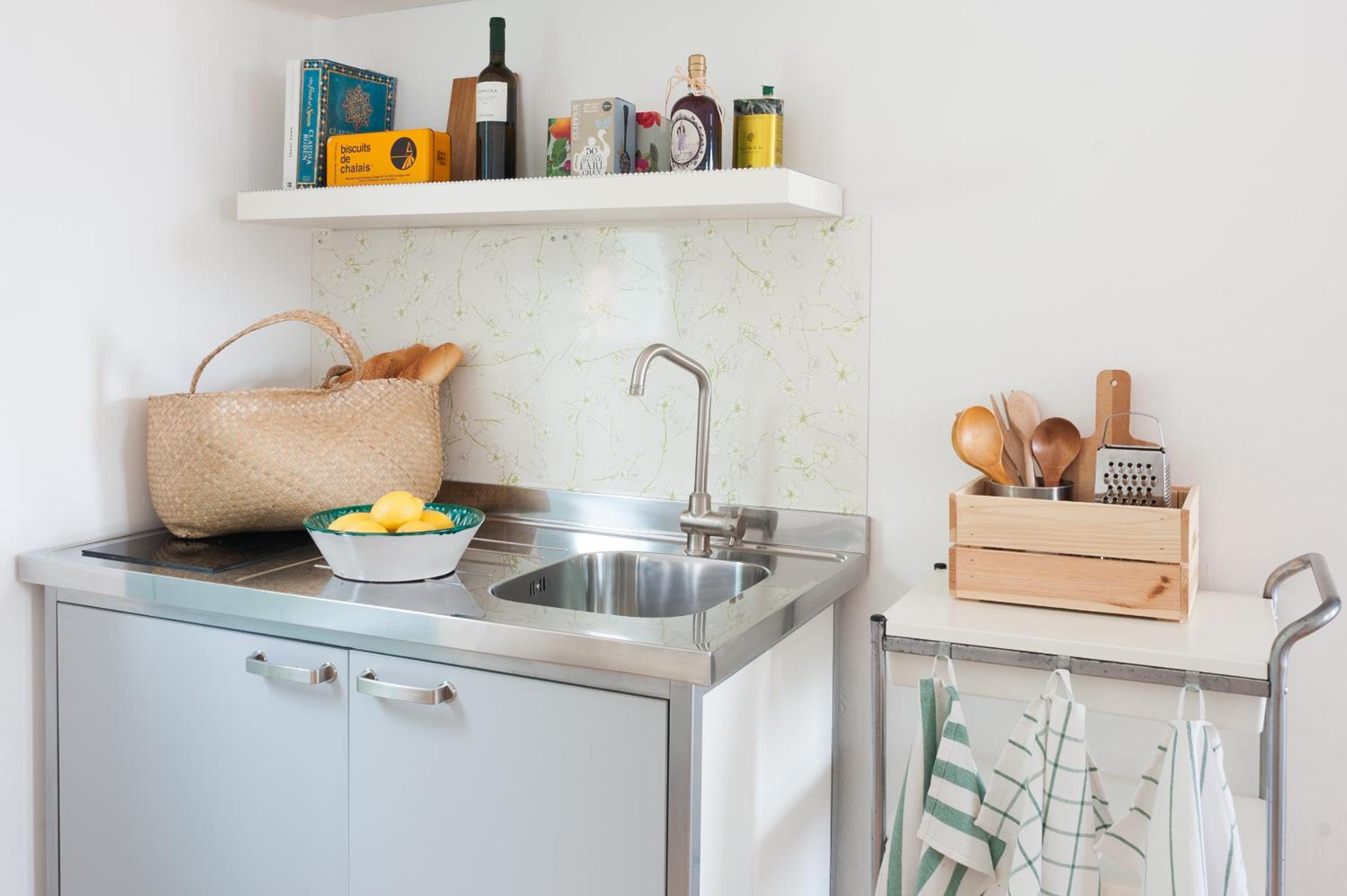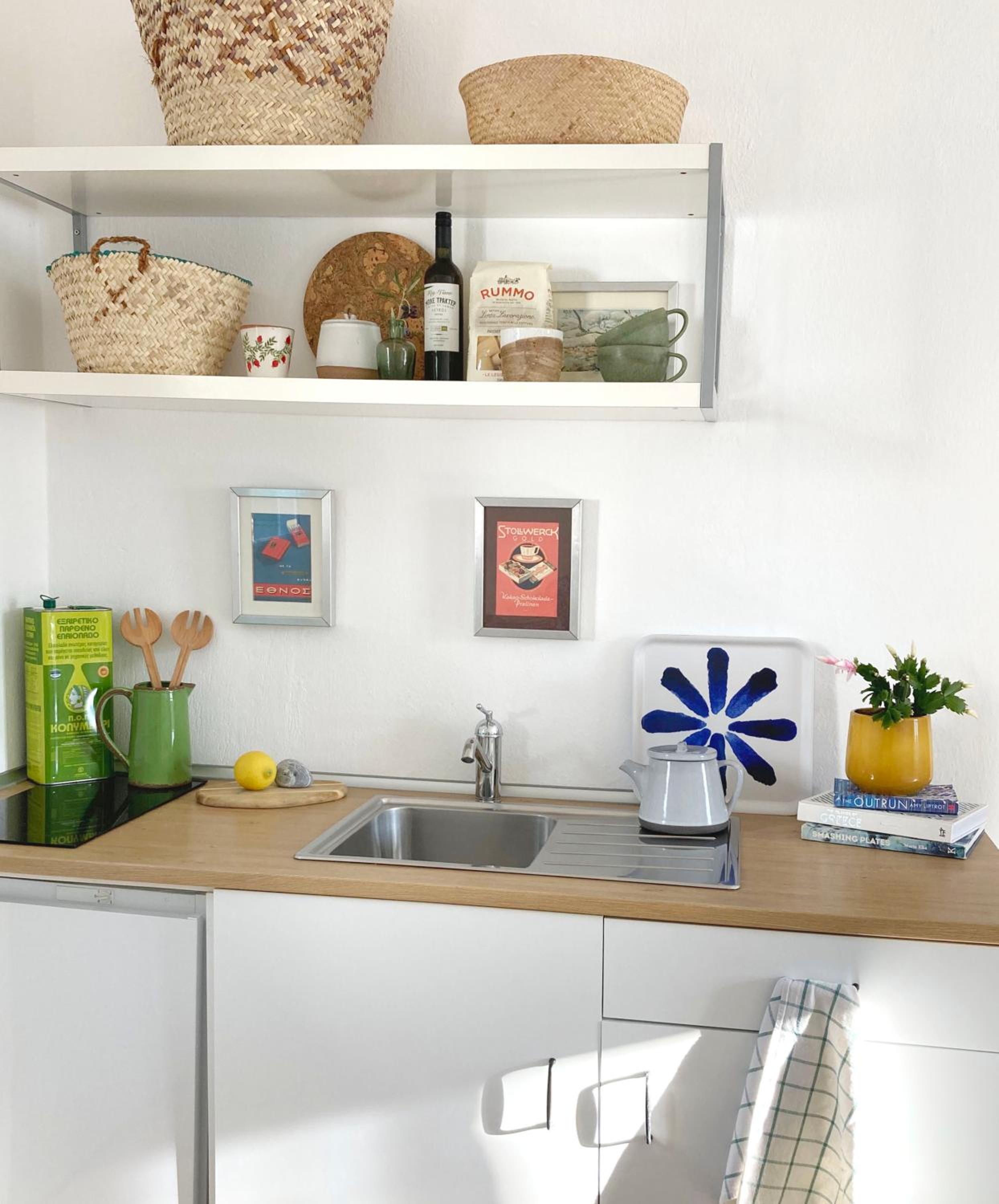 Die Küche könnte ein bisschen besser ausgestattet sein, um vielleicht auch mal zu kochen.