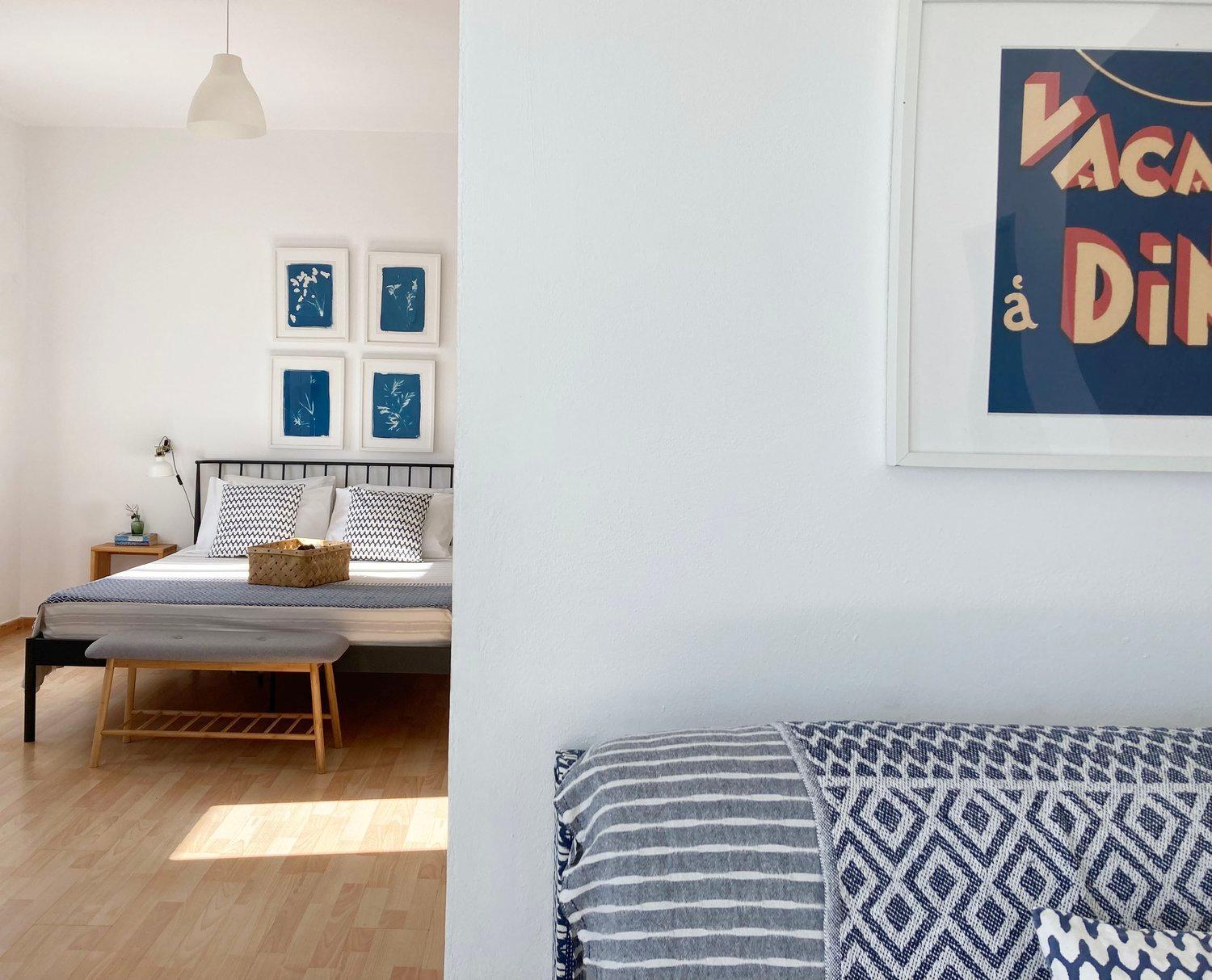 Amazing view from a large patio with table and chairs. Al and Kittt were great hosts. We wish we could stay there longer. Excellent Beach very close. Nice little port town and a quick drive or walk to the castle and windmills just above the hotel. We had inherited cat friends right from the beginning. 🐈 Hercules and Bowie. Fully equipped kitchen. Nice large dining table. Very spacious rooms and lots of cabinets to store your clothes. Having 2 bathrooms was very nice.
