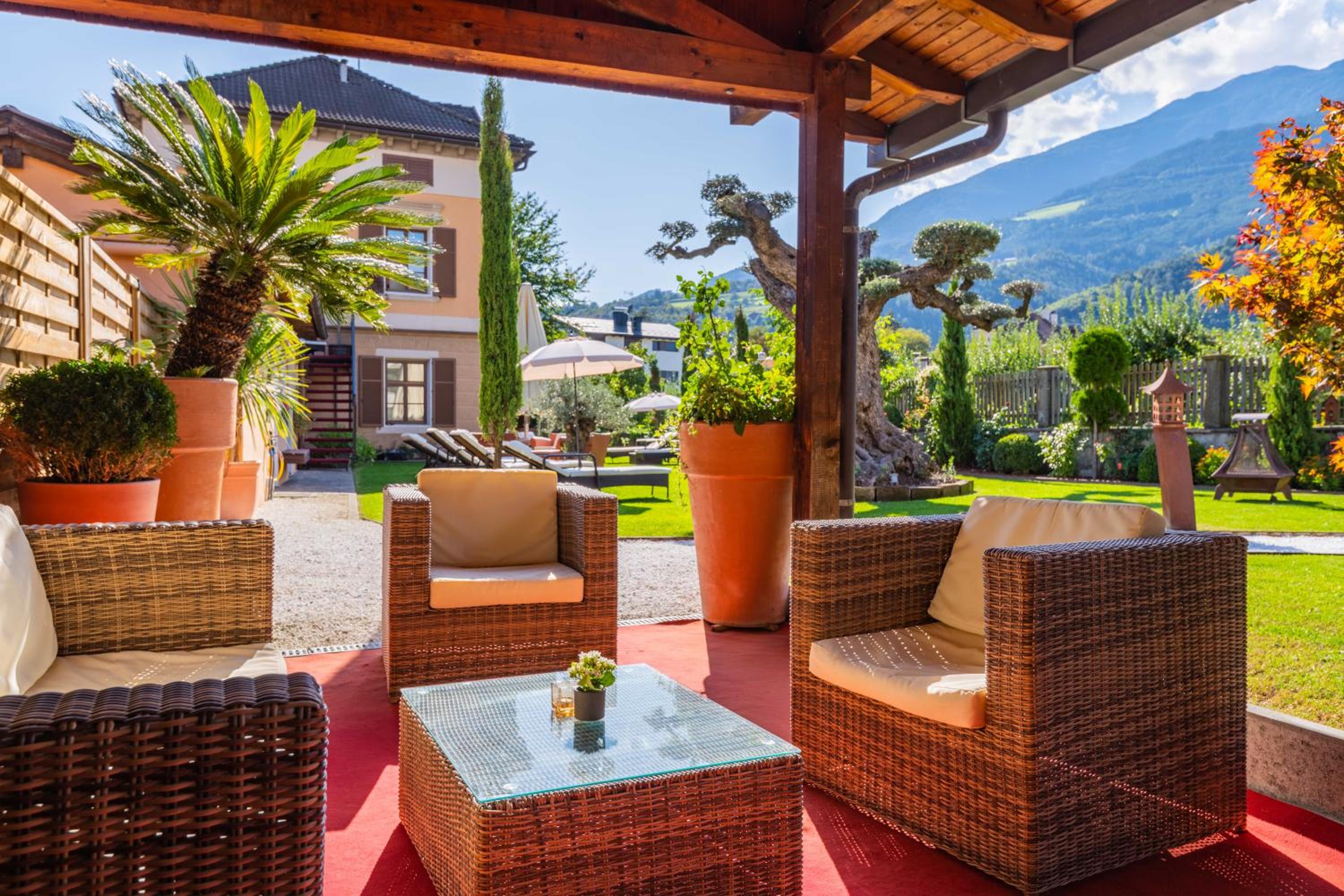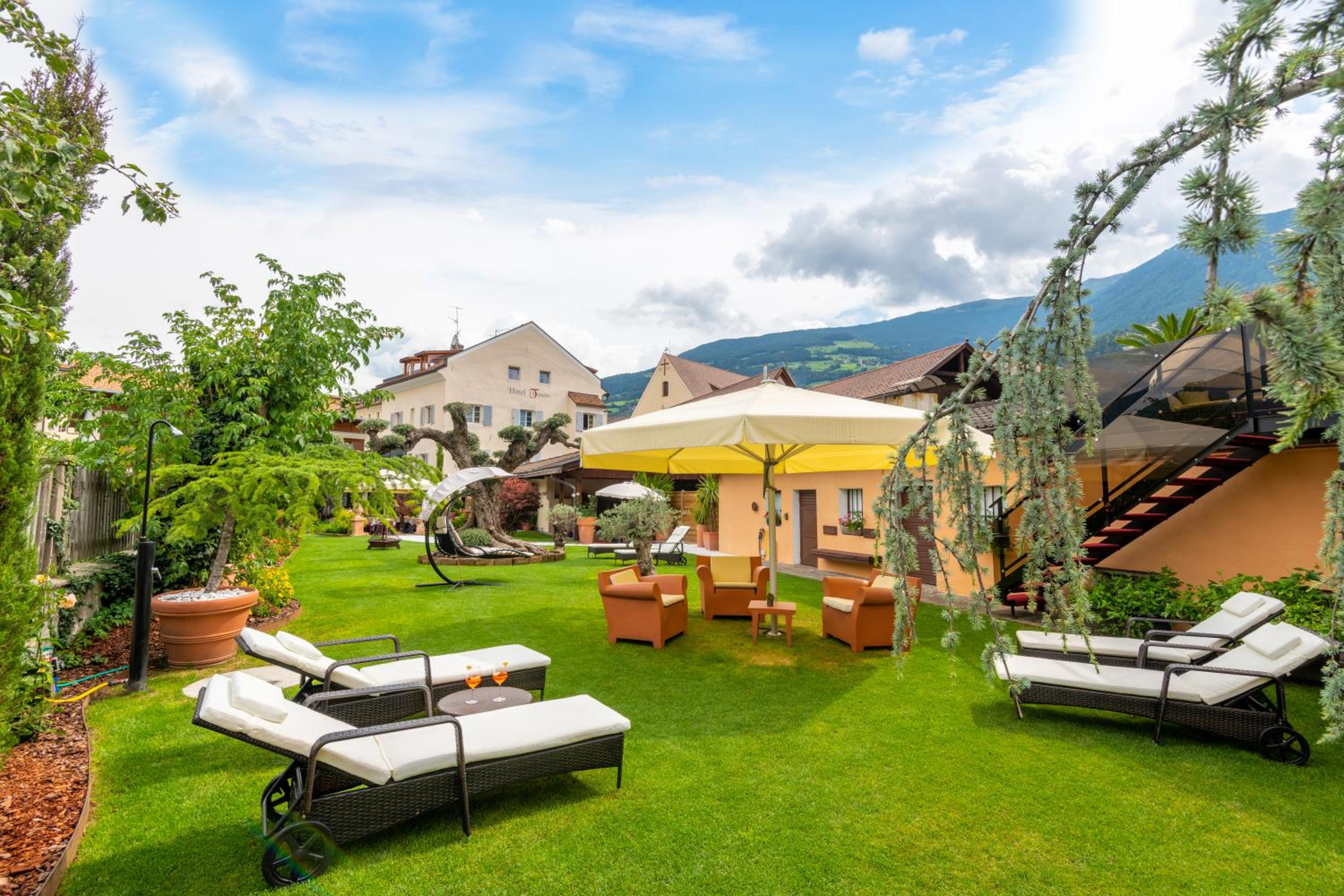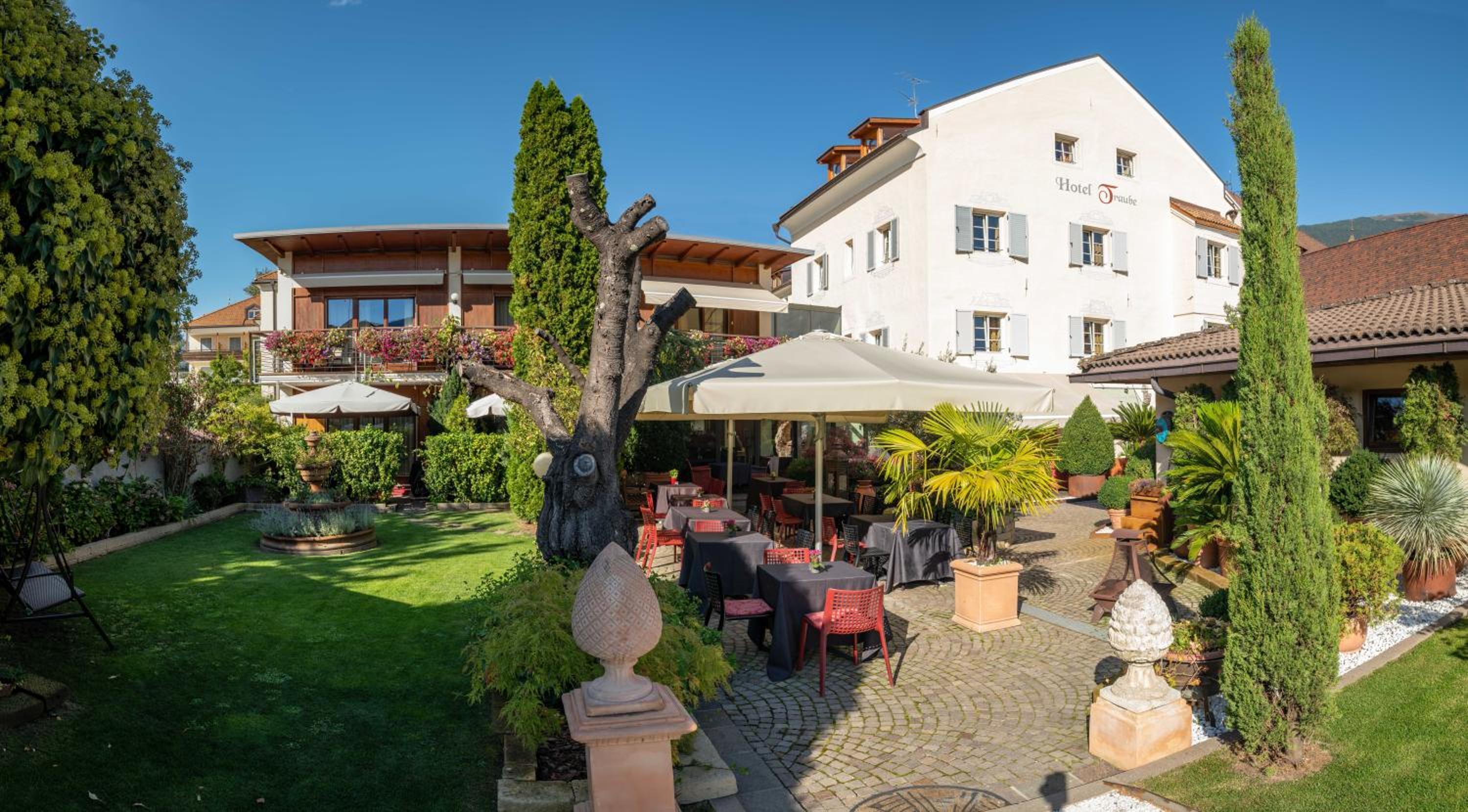 Residence Traube in Bressanone offers stunning mountain views and sustainable luxury. Guests can enjoy an open-air bath, free bikes, and a garden while staying at this eco-friendly property.