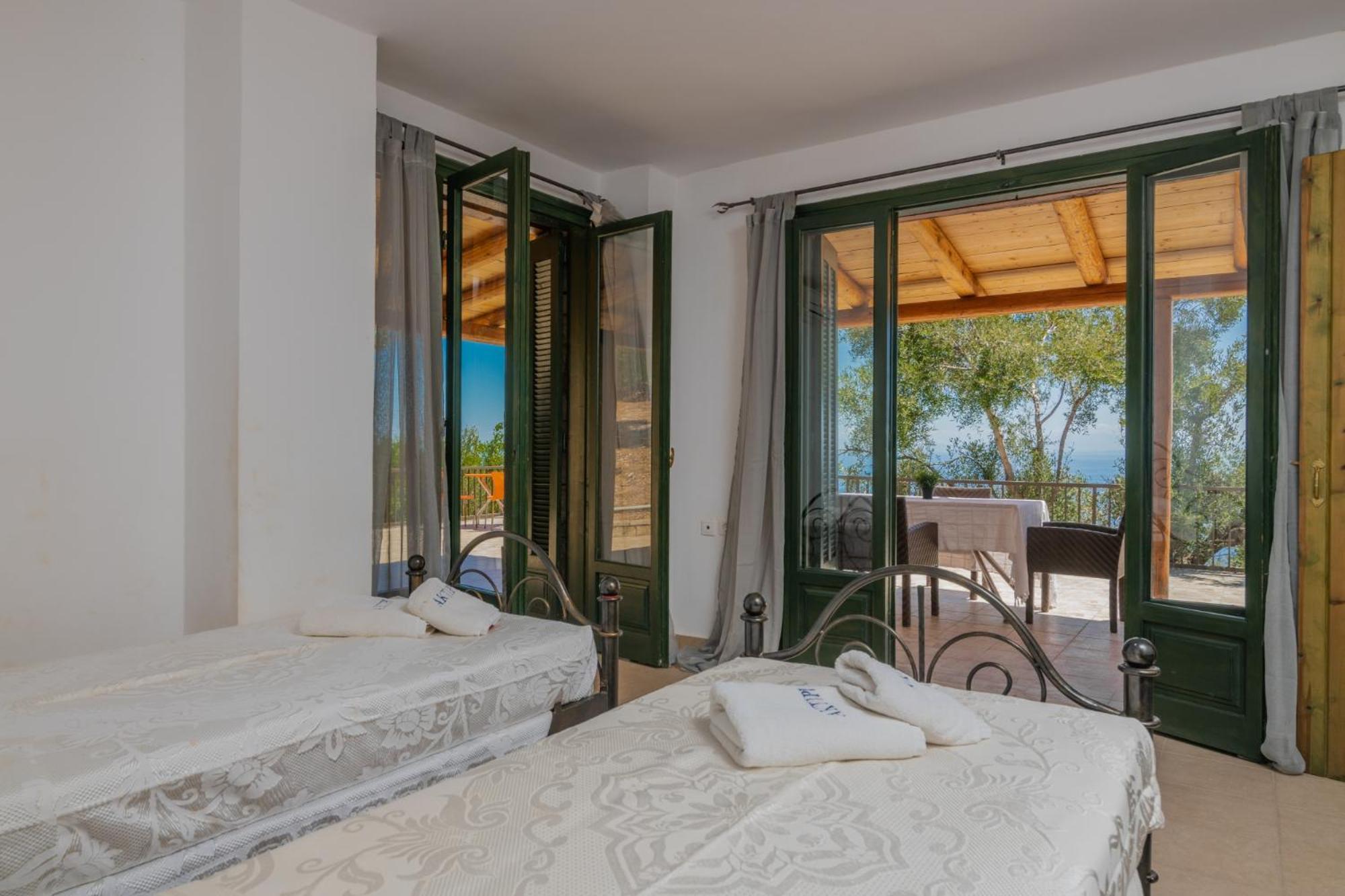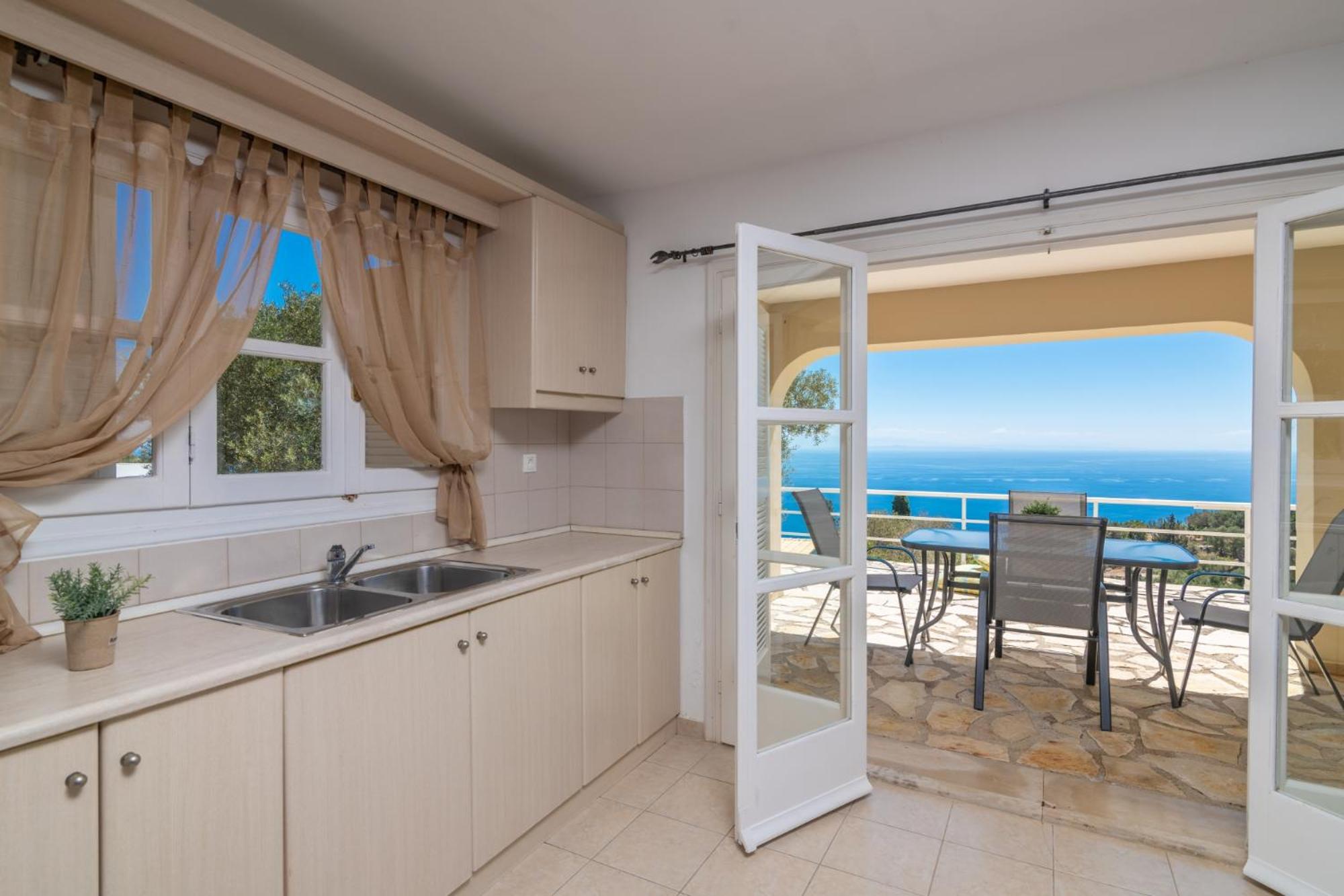 Enjoy the breathtaking views of the Ionian Sea from your furnished balcony at Armyra Villas. The self-catered studios and villas offer the convenience of a kitchenette or fully equipped kitchen, perfect for a relaxing stay.