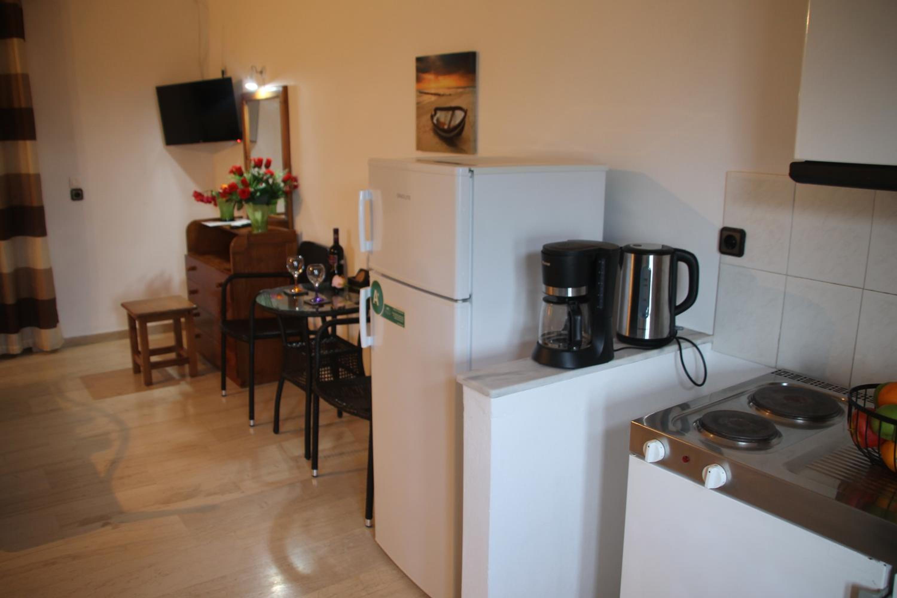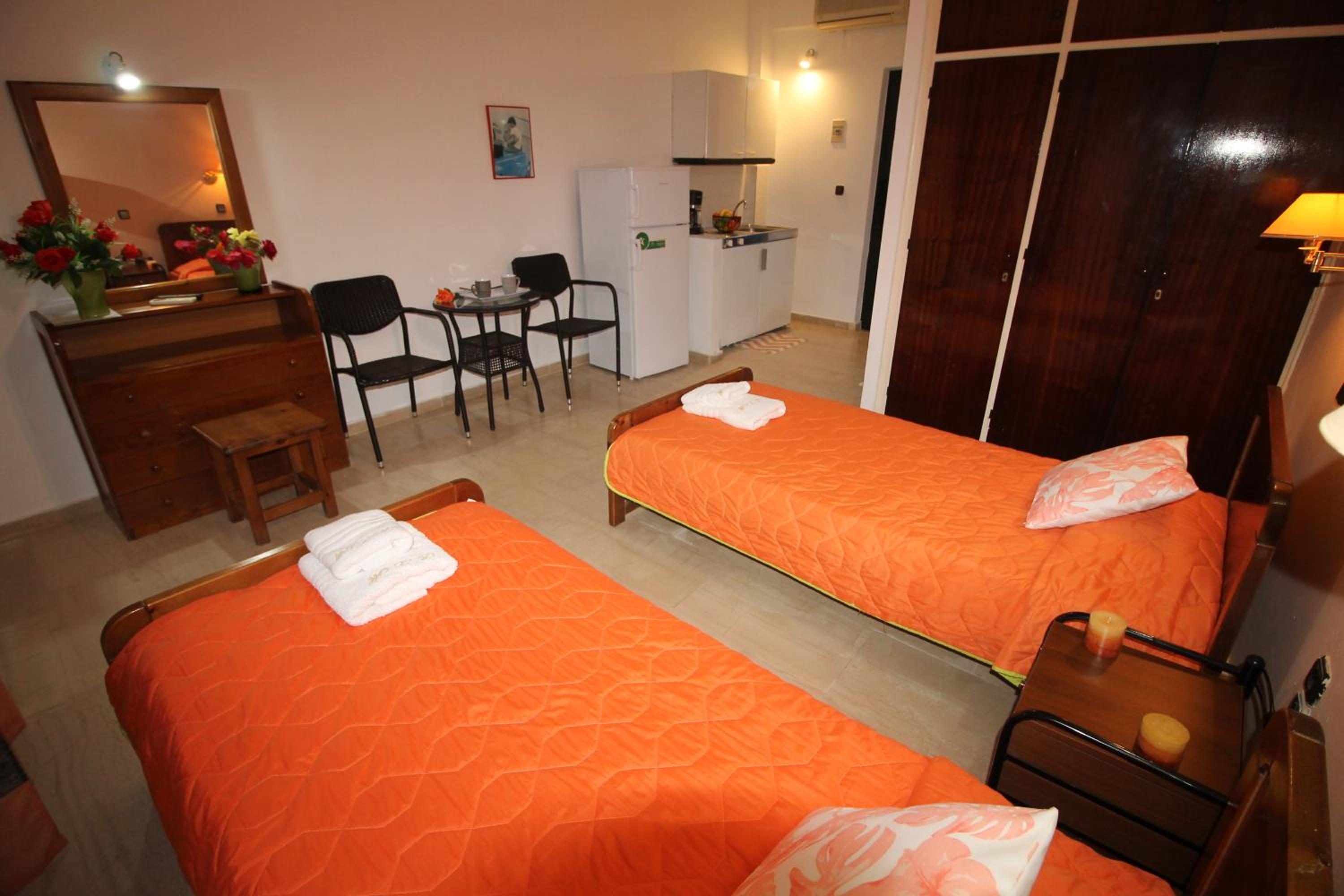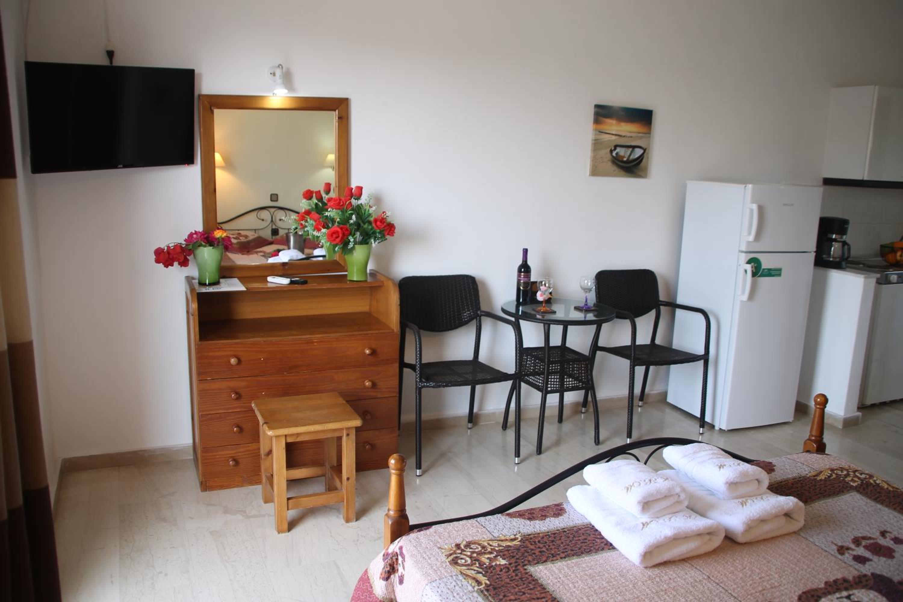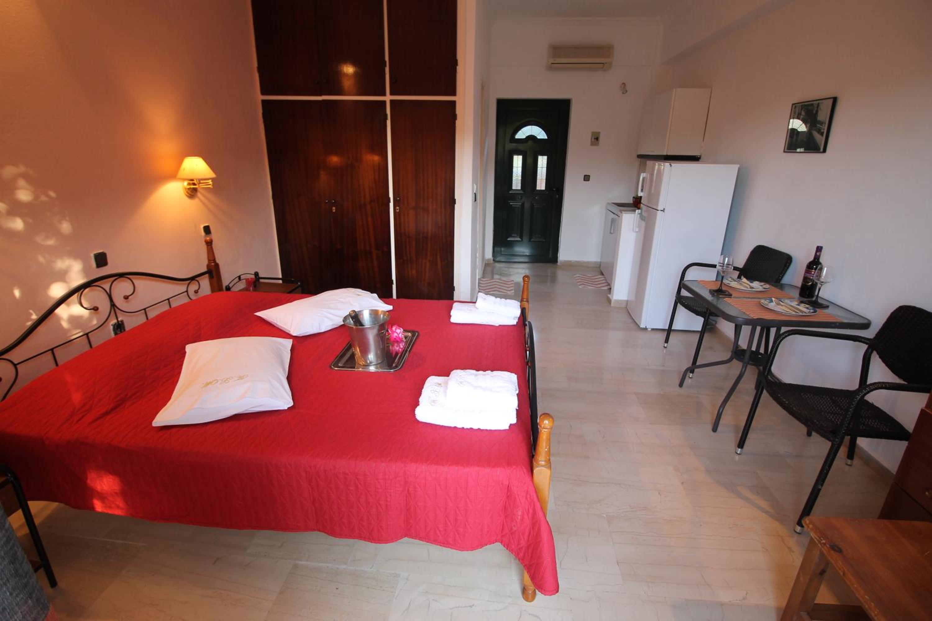 Die Lage ist ideal, nur ein paar Schritte zum Strand. Ruhig gelegen, in einer Seitengasse.In der Nähe Restaurants und Supermärkte. Kostas ist ein unheimlich netter und hilfsbereiter Gastgeber.Mistkörbe wurden täglich geleert, nach drei Tagen Gab es frische Handtücher.