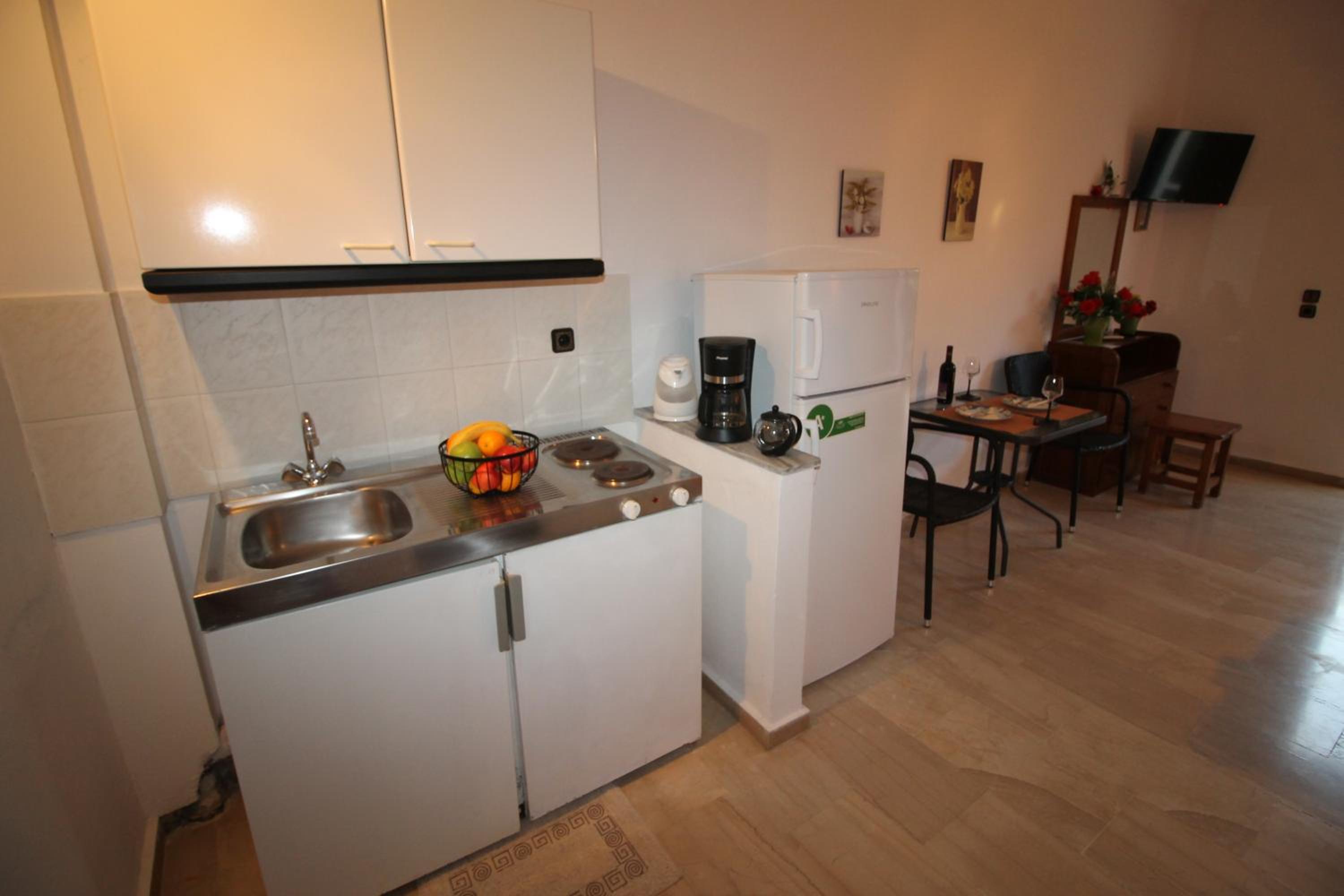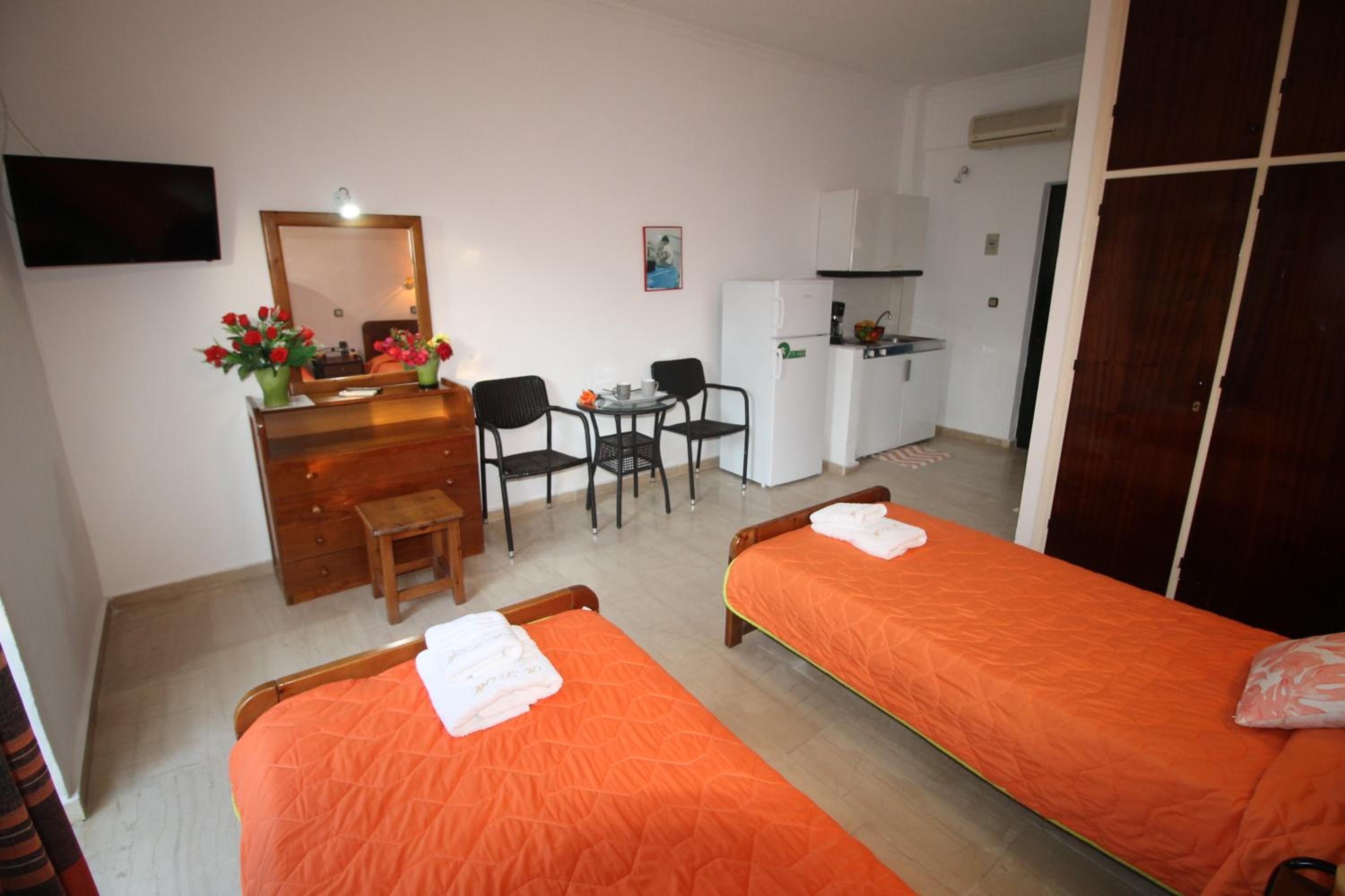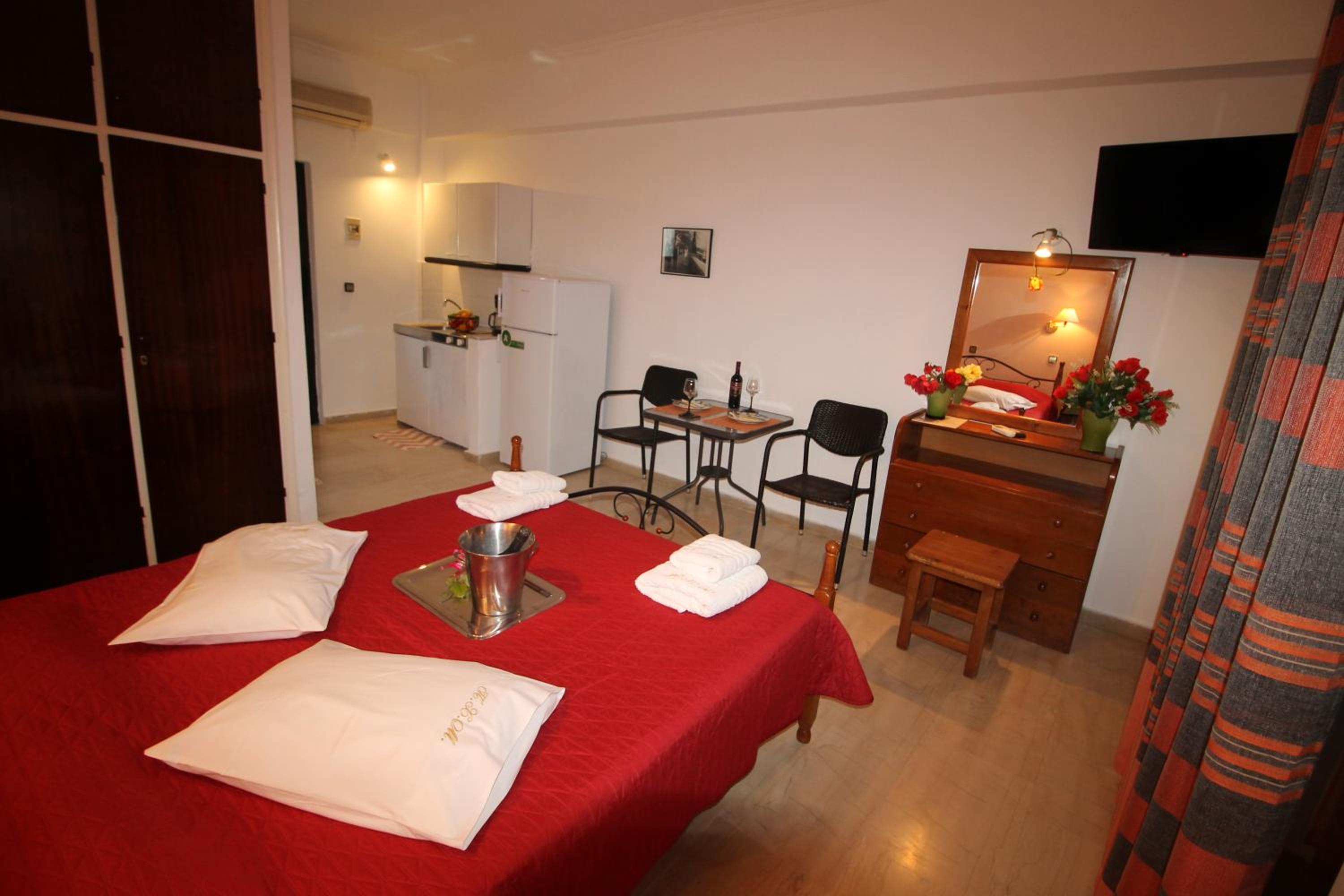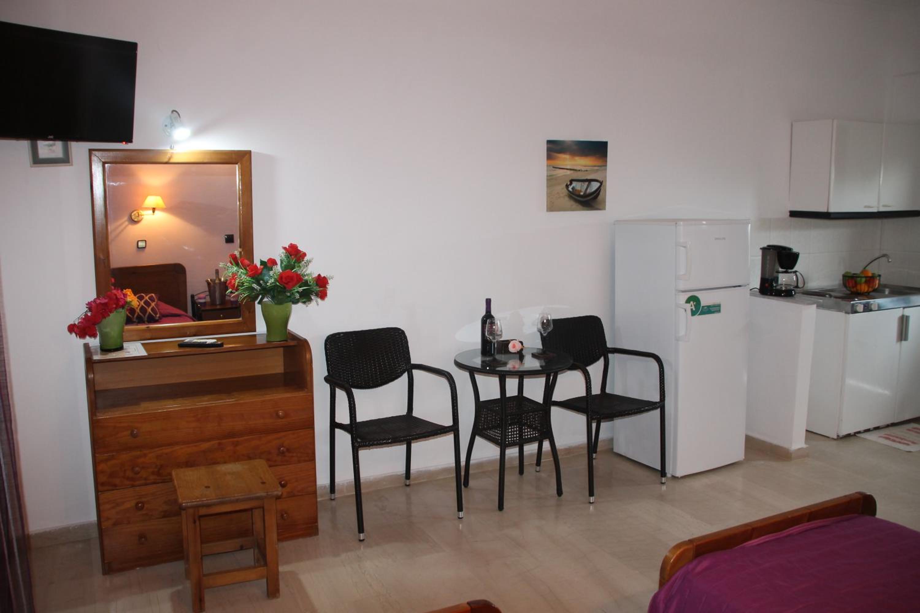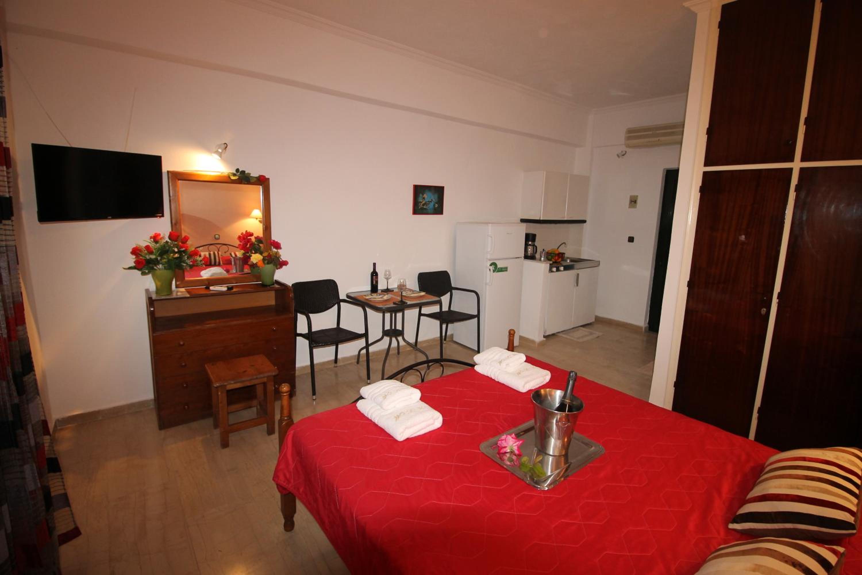 Die Lage ist ideal, nur ein paar Schritte zum Strand. Ruhig gelegen, in einer Seitengasse.In der Nähe Restaurants und Supermärkte. Kostas ist ein unheimlich netter und hilfsbereiter Gastgeber.Mistkörbe wurden täglich geleert, nach drei Tagen Gab es frische Handtücher.