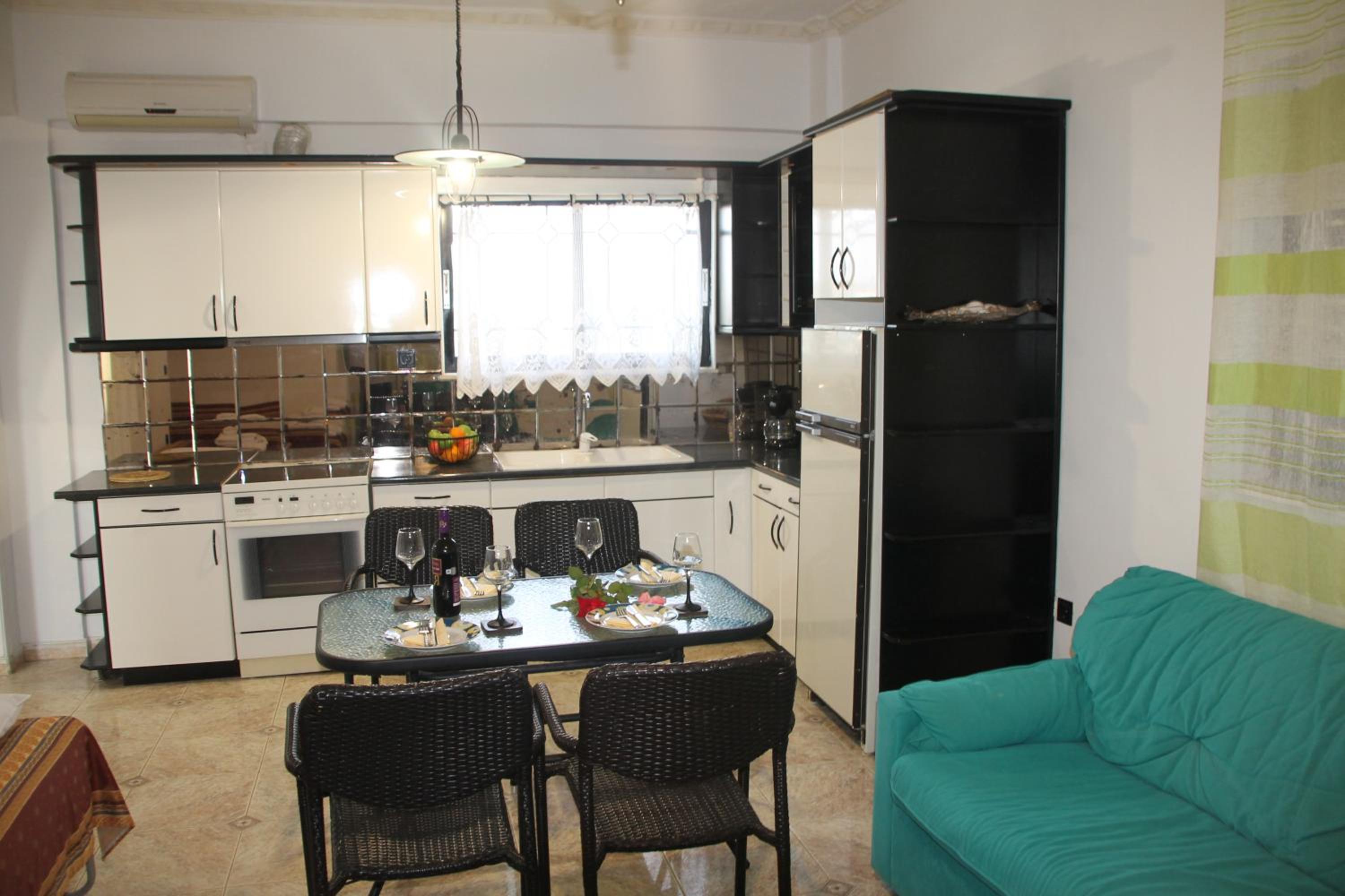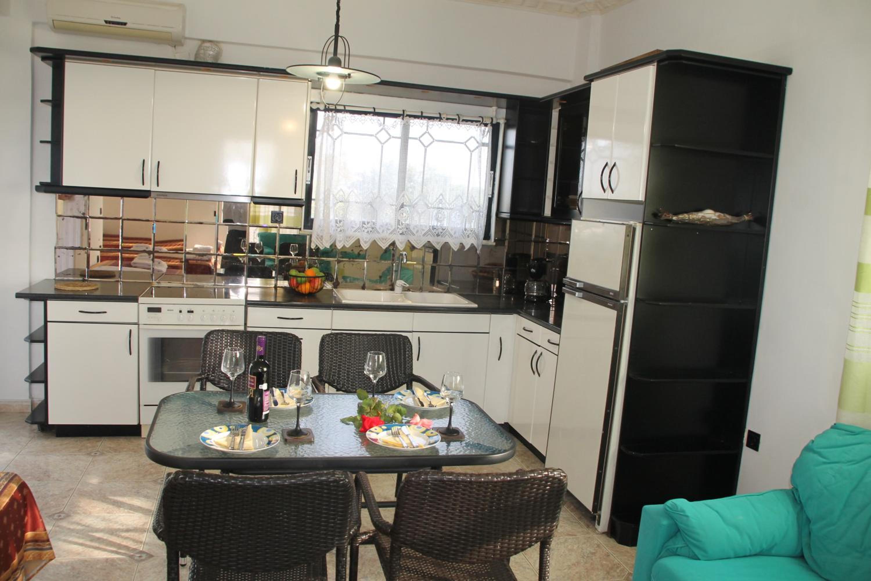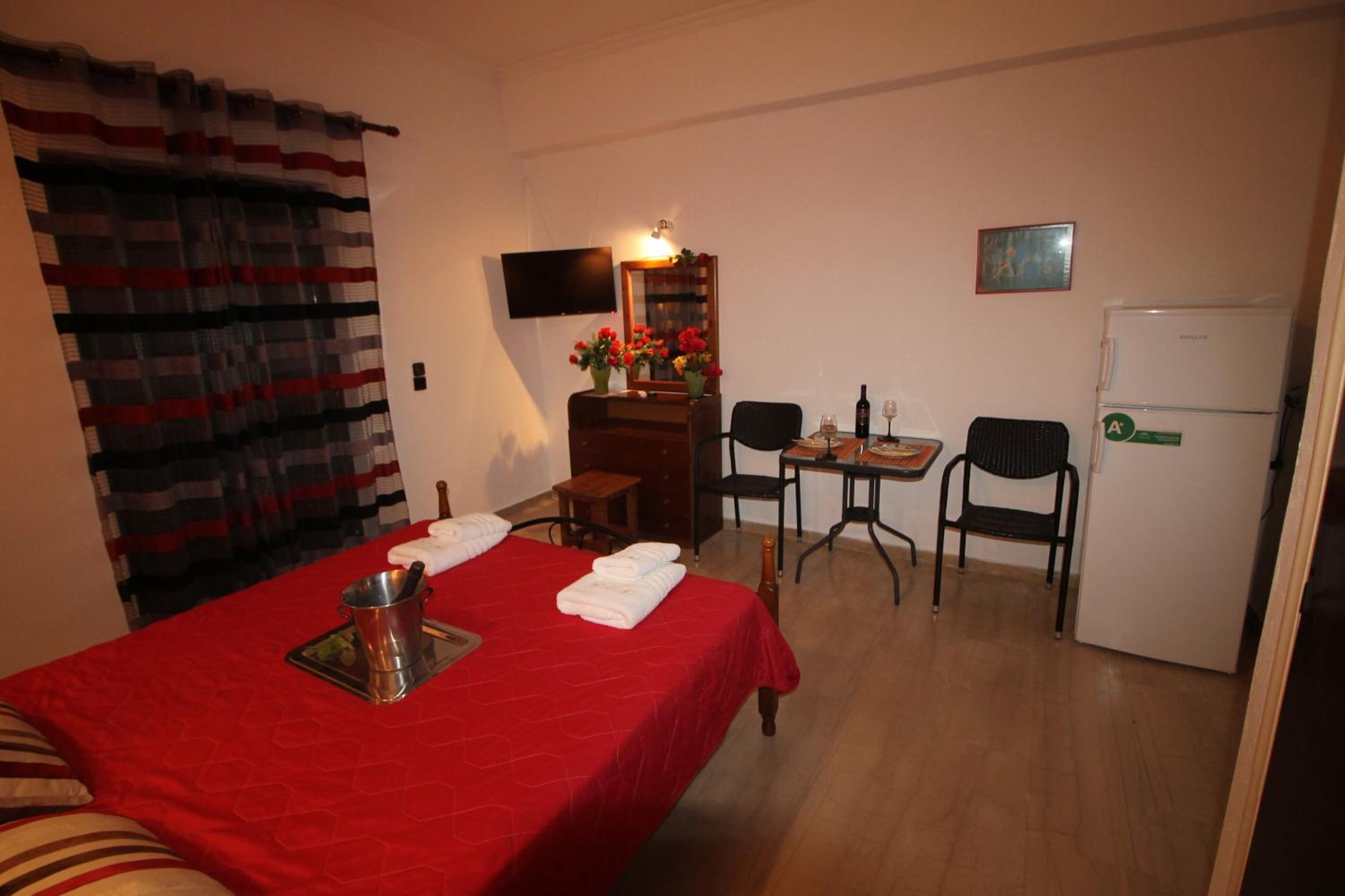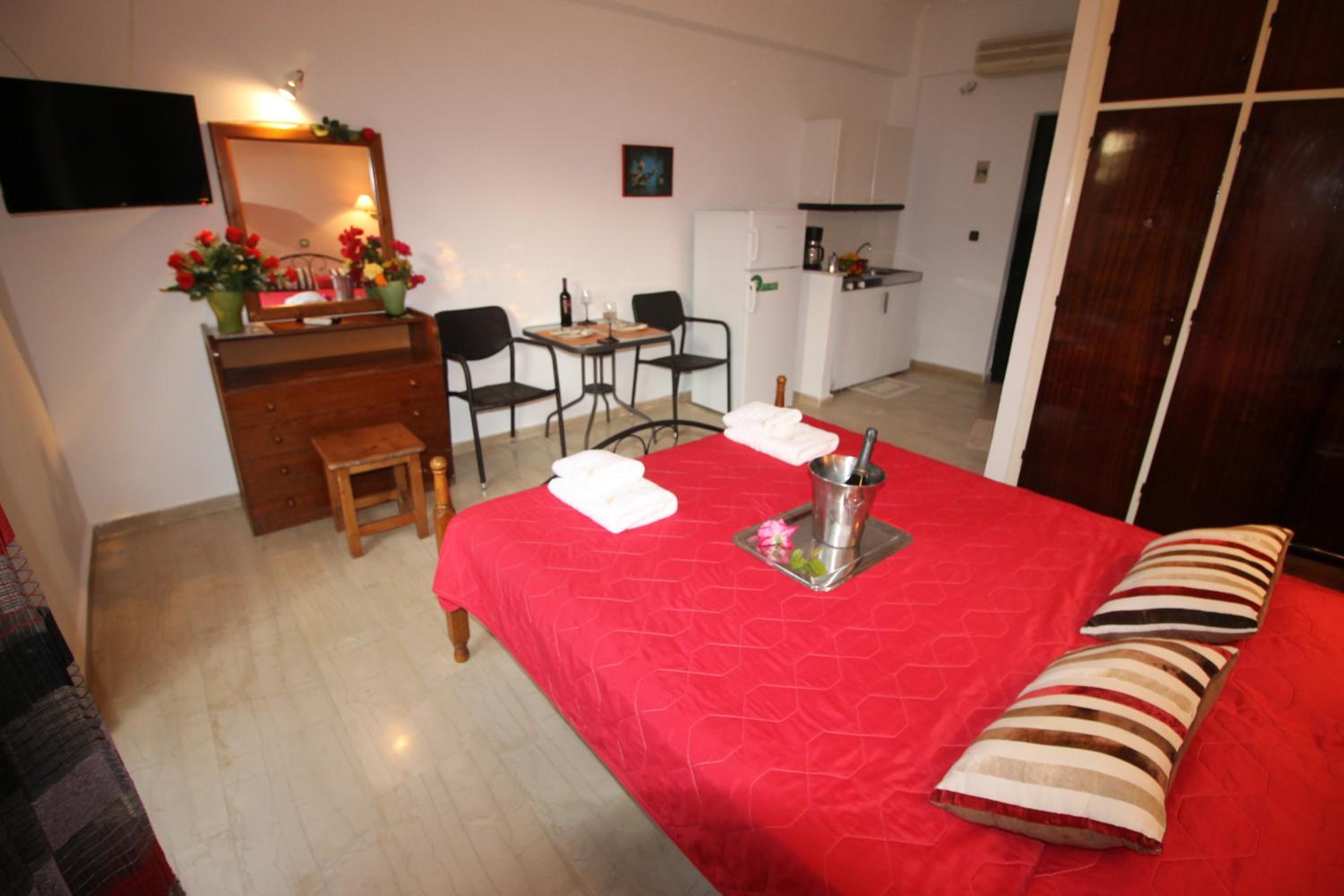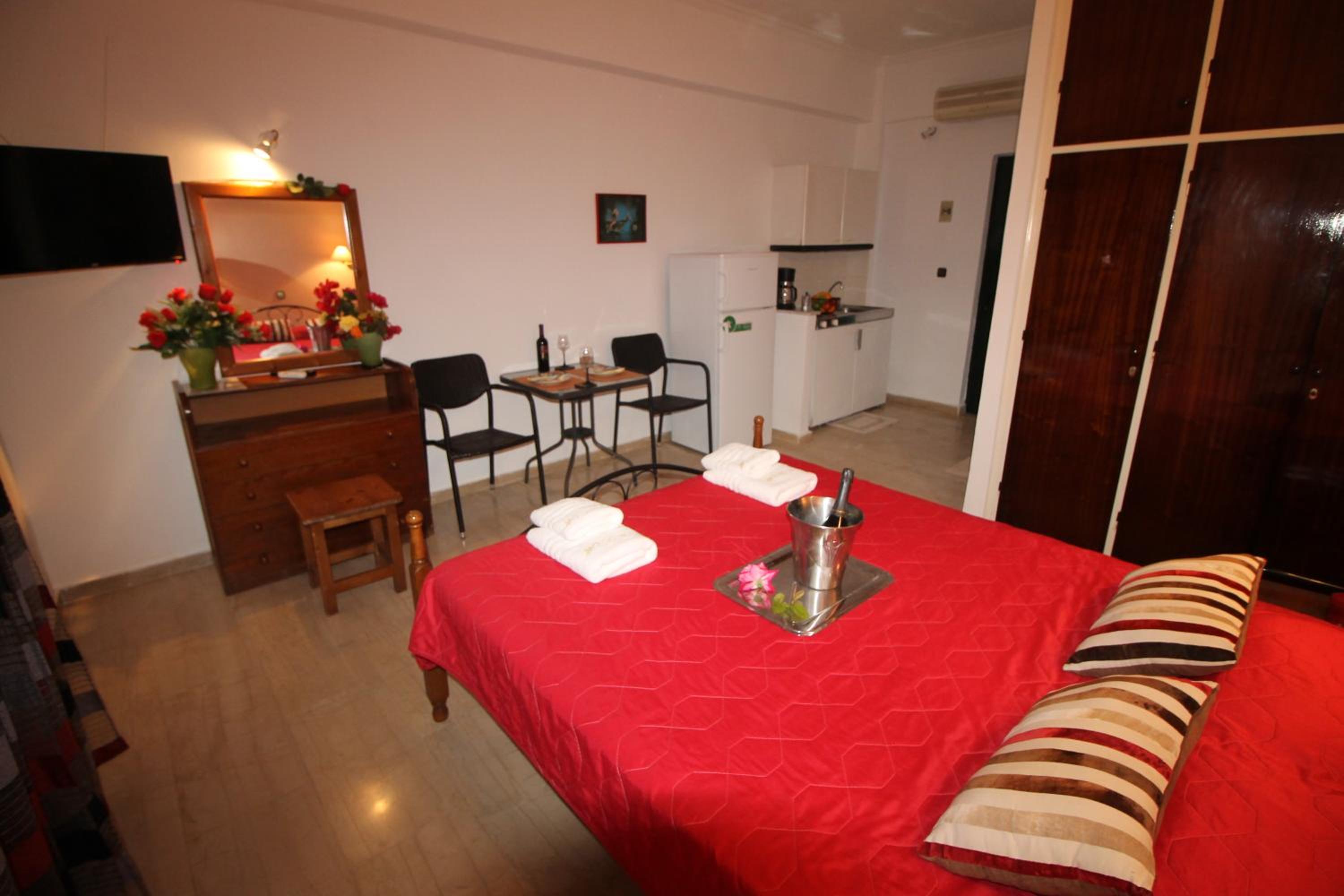 Die Lage ist ideal, nur ein paar Schritte zum Strand. Ruhig gelegen, in einer Seitengasse.In der Nähe Restaurants und Supermärkte. Kostas ist ein unheimlich netter und hilfsbereiter Gastgeber.Mistkörbe wurden täglich geleert, nach drei Tagen Gab es frische Handtücher.