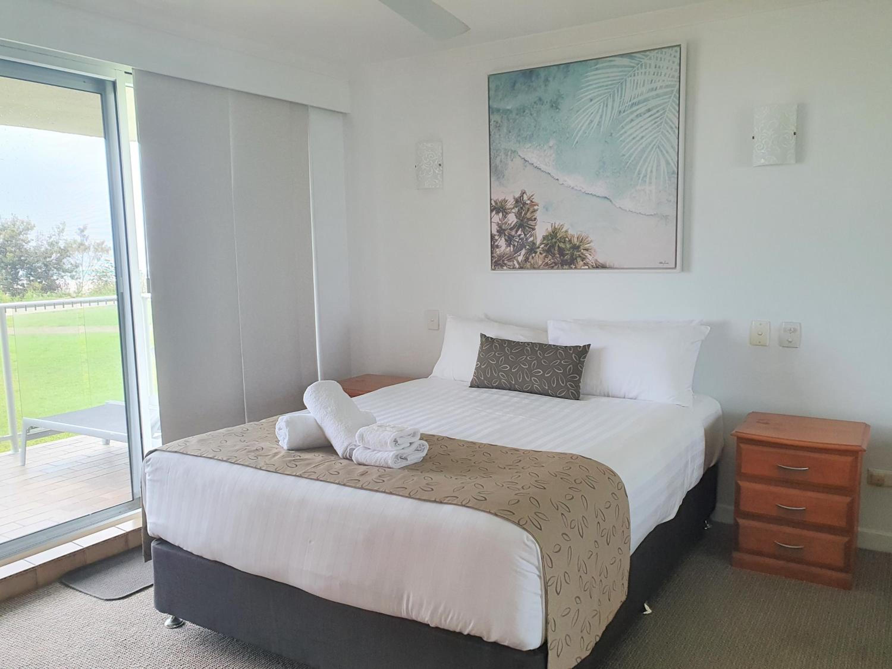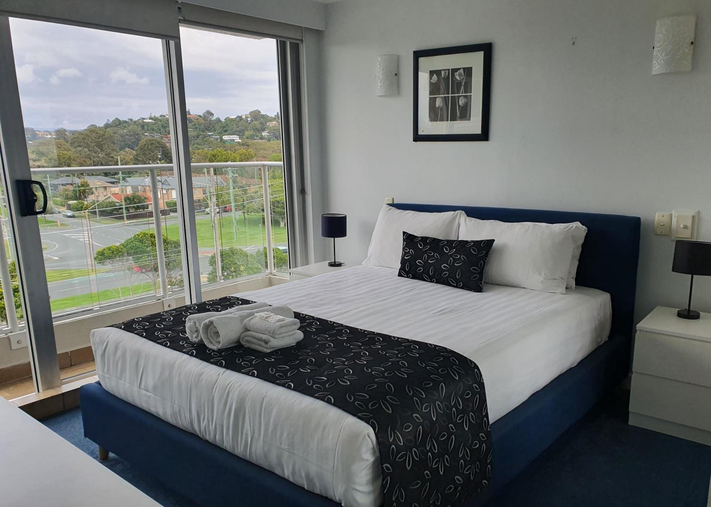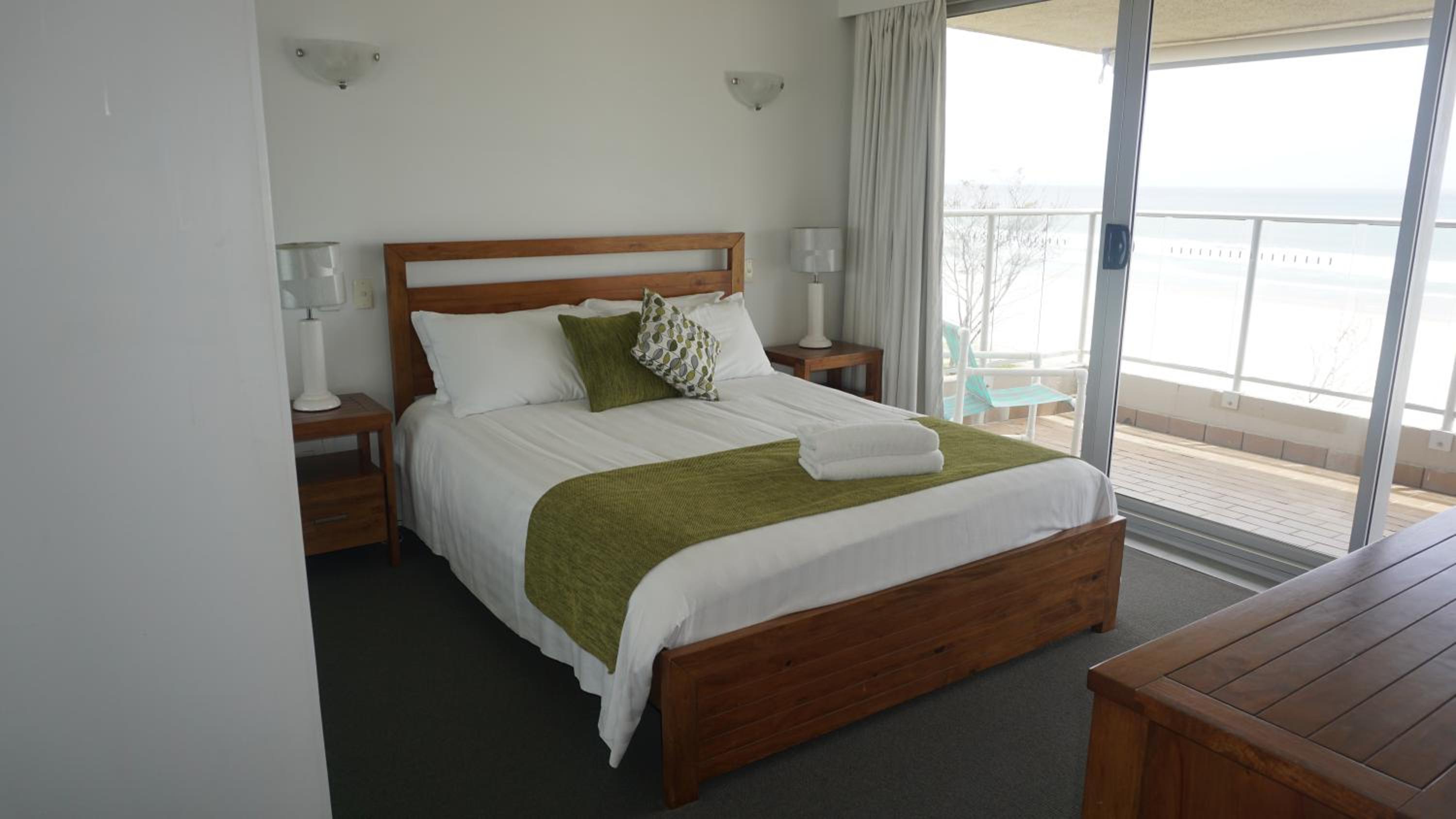 Spectacular Views: Wake up to stunning ocean views from your private balcony at Pacific Surf Absolute Beachfront Apartments.