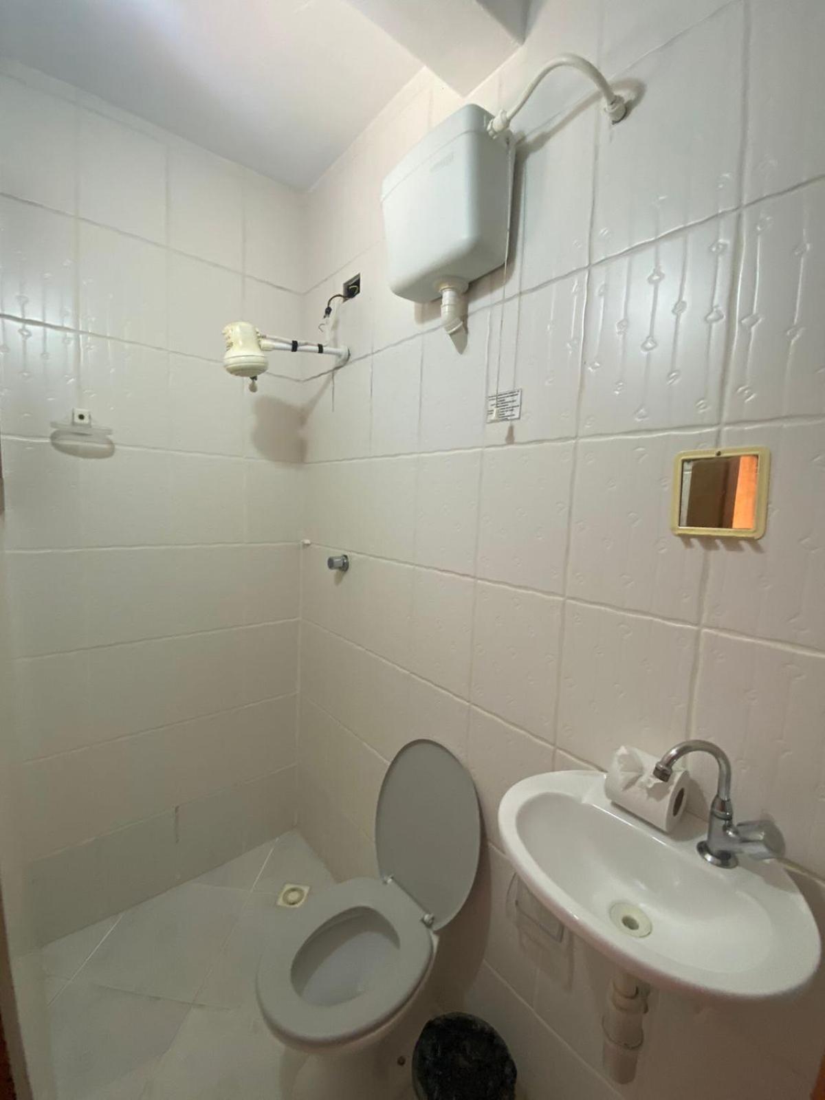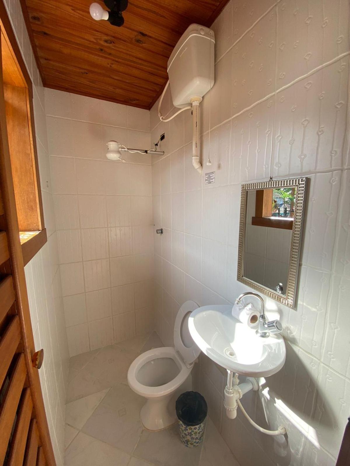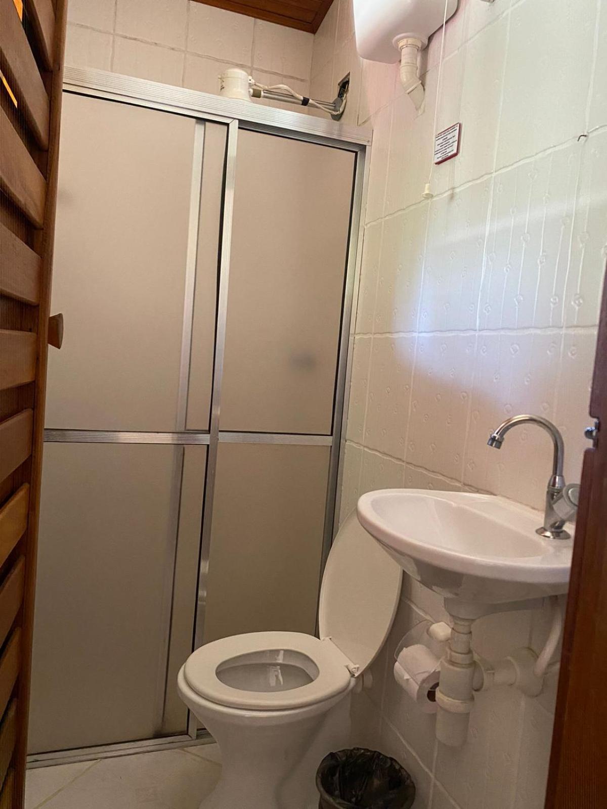 Banheiro não tem box , tampa da privada solta.