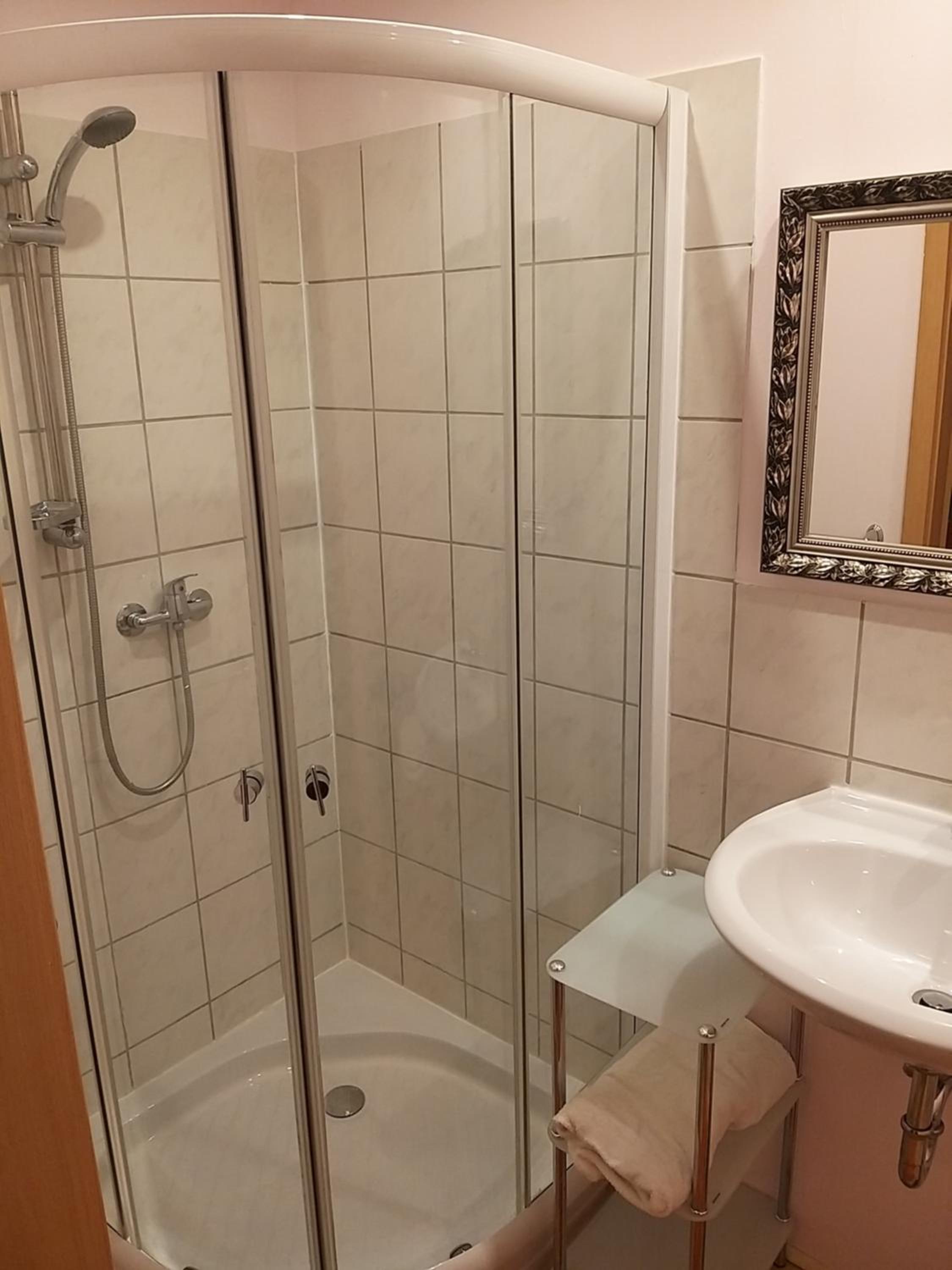 Wir waren eigentlich im umgebauten Bus unterwegs und wollten vor einem Festival spontan doch eine Nacht mit richtiger Dusche, Bett etc. verbringen. Wir wurden nicht nur nett begrüßt- es stand sogar ein Willkommensschluck nebst Kristallgläsern im - dem Appartement angehörigen- Herrenzimmer bereit.