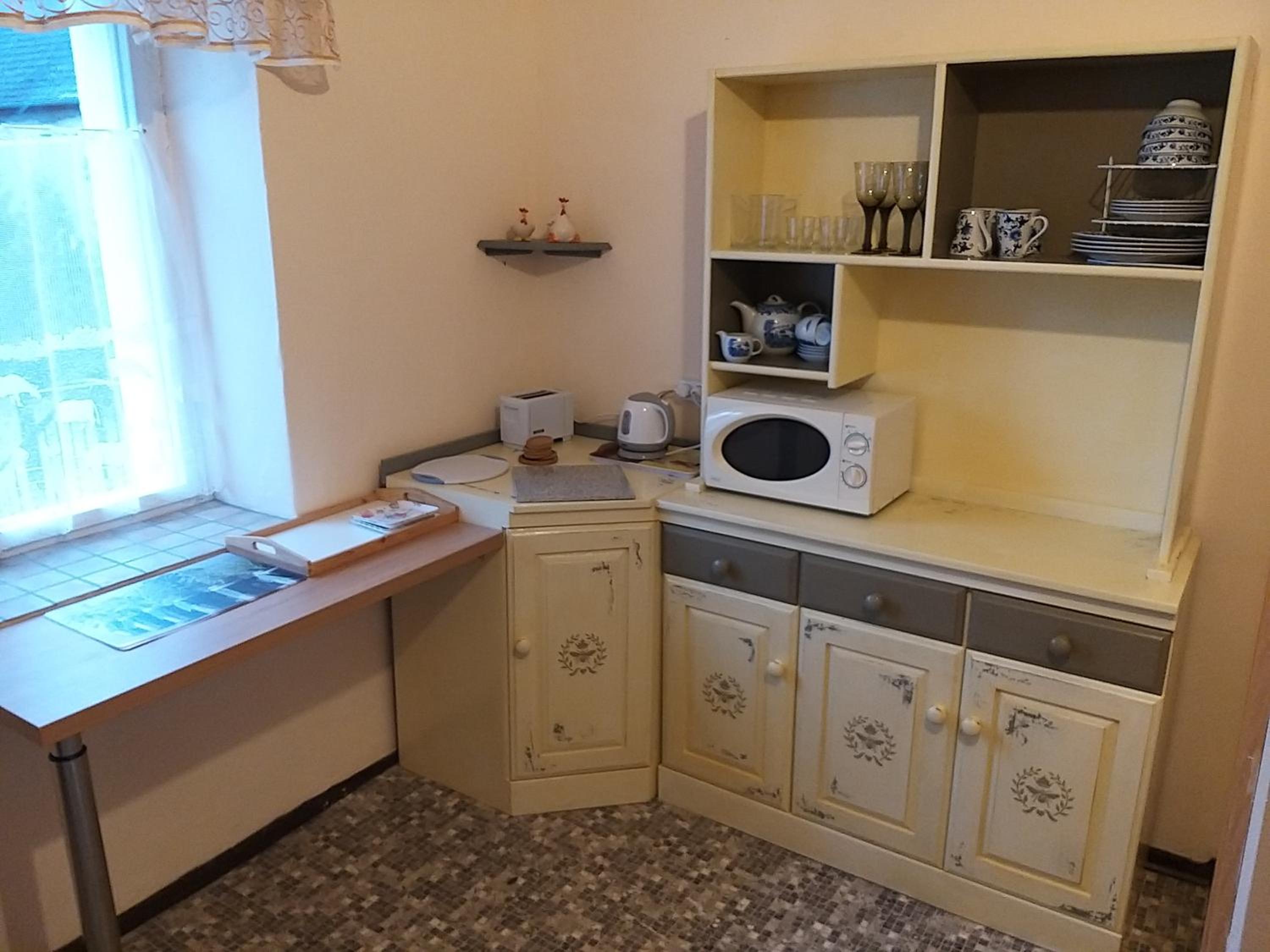 Abseits der großen Verkehrswege versteckt sich ein übrig gebliebenes Relikt längst vergangener Zeiten als Wohnmöglichkeit für Urlaubsgäste. Die Ferienwohnung war groß genug für zwei Erwachsene. Sie bot sogar mehr Platz als wir brauchten. Uns fehlte es an nichts. Die Küche war gut ausgestattet. Der Preis war mehr als sehr gut.