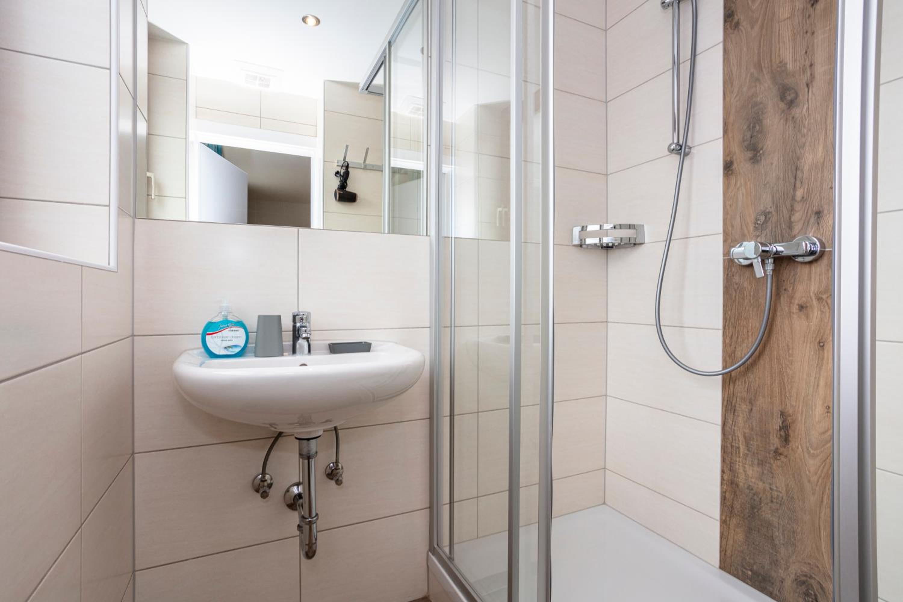 Nothing really, the bathroom is on smaller side, compared to the amount of beds the apartment cant fit, but good shower pressure and more than adequate for our family of 3. There was 1 mirror above sink only. Would have been nice to have another mirror in place as limits the bathroom usage