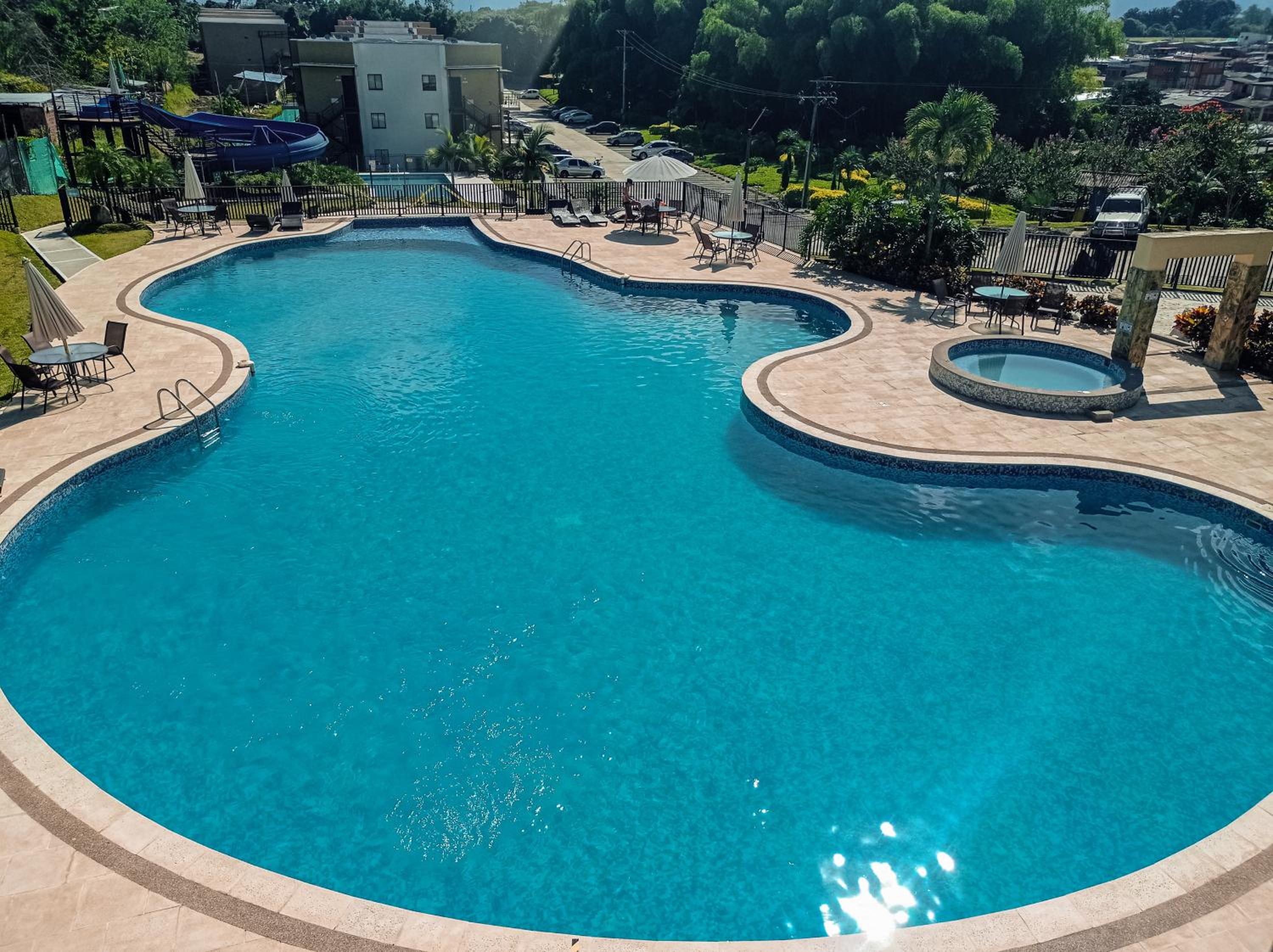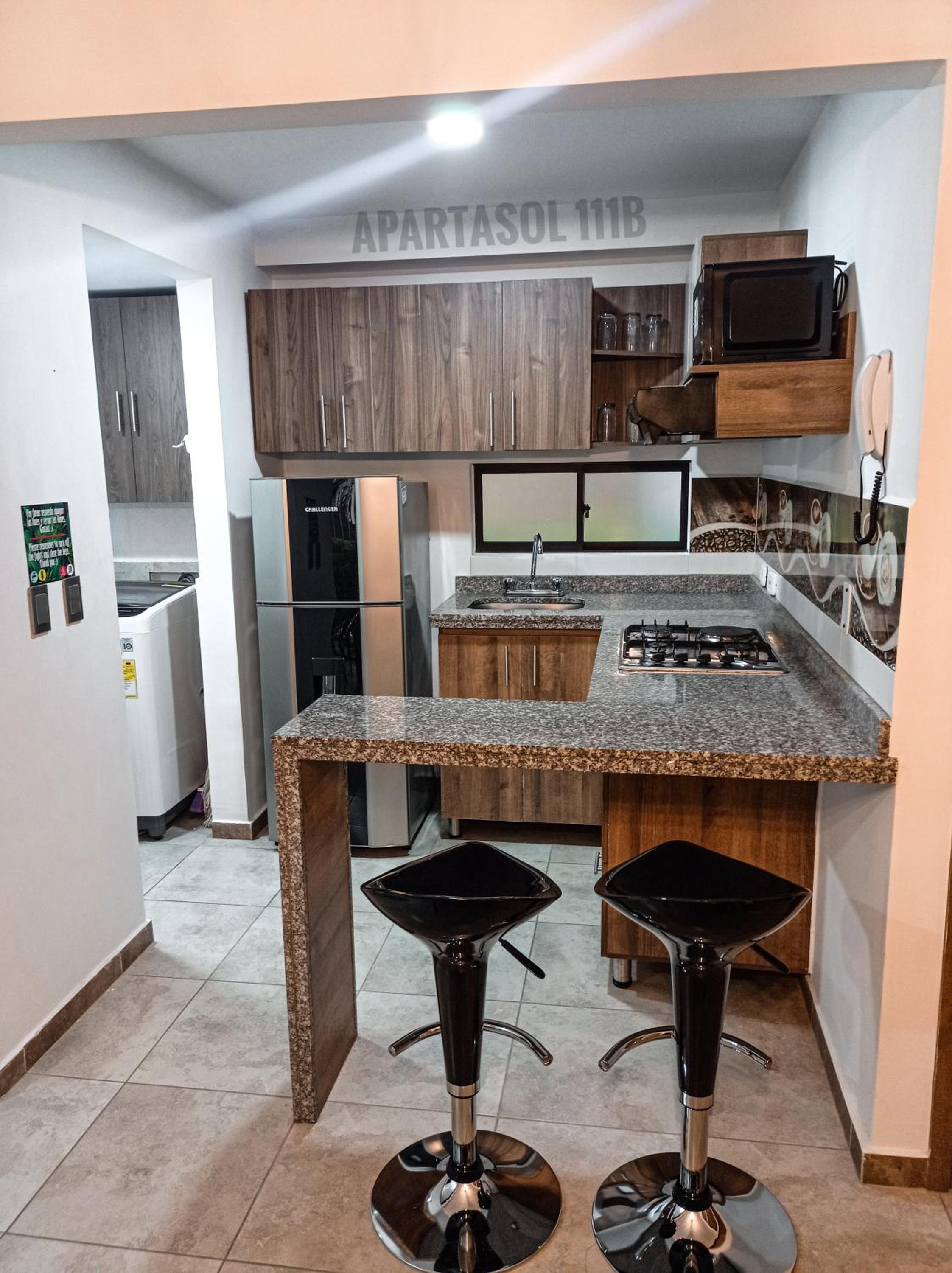Located just 15 km from the National Coffee Park, Apartasol, Eje cafetero Reservas de la Colina 111B offers a delightful stay with a hot tub and indoor pool. The 2-bedroom aparthotel features a spacious living room with a flat-screen TV, a fully equipped kitchen, and 2 bathrooms.