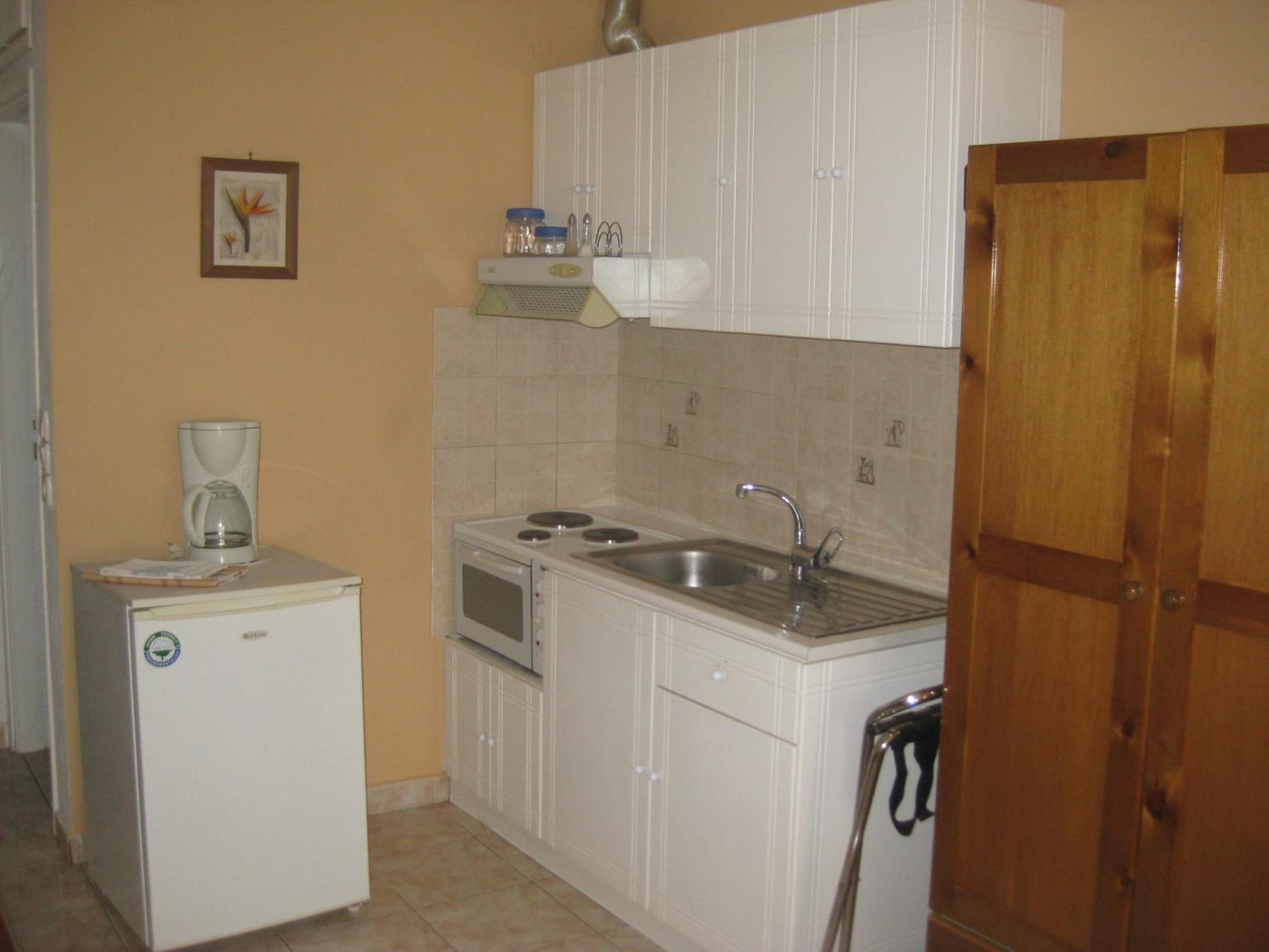 Fully-Equipped Studios: Enjoy the comfort of air-conditioned studios with a kitchenette, TV, iron, and a modern bathroom in each unit.