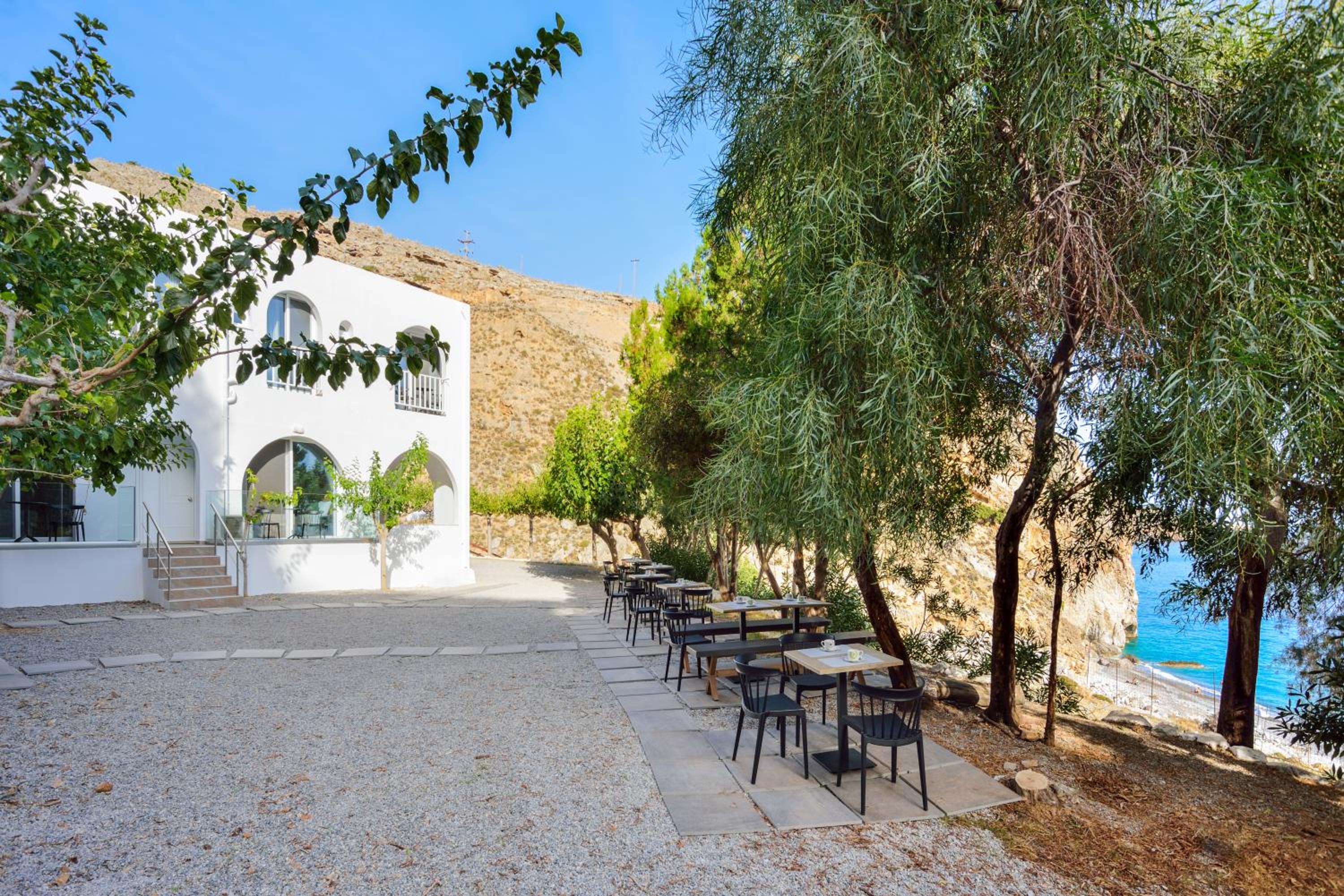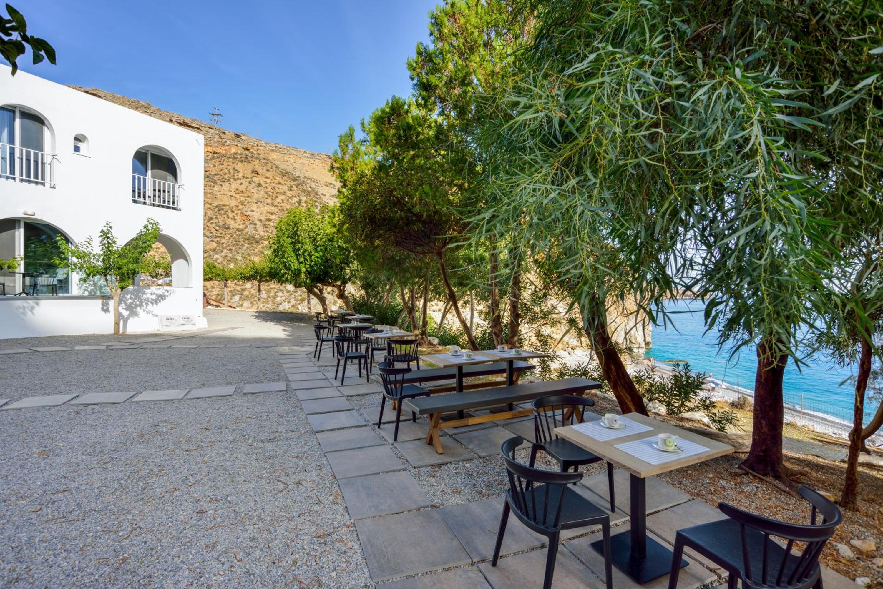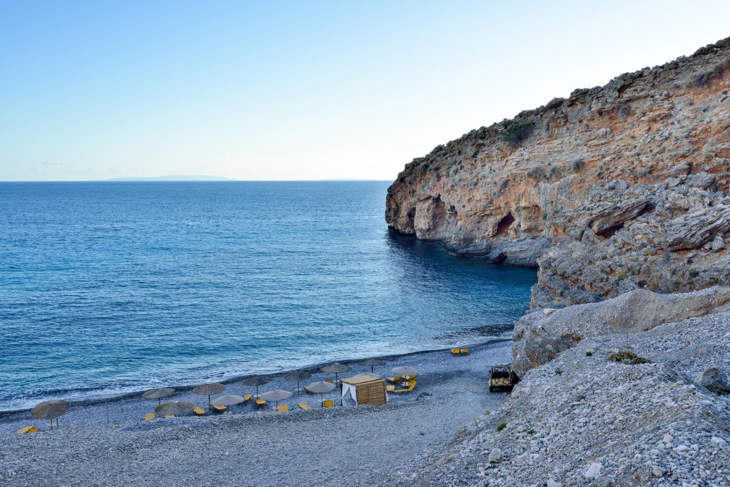 Great location, cosy clean beach just below the hotel, Rooms are spacy, beds are very comfortable. 5 minutes by car to Sfakia with option to take boat to Lutro. Nice restaurants plus breakfast options in Sfakia as breakfast is not included.