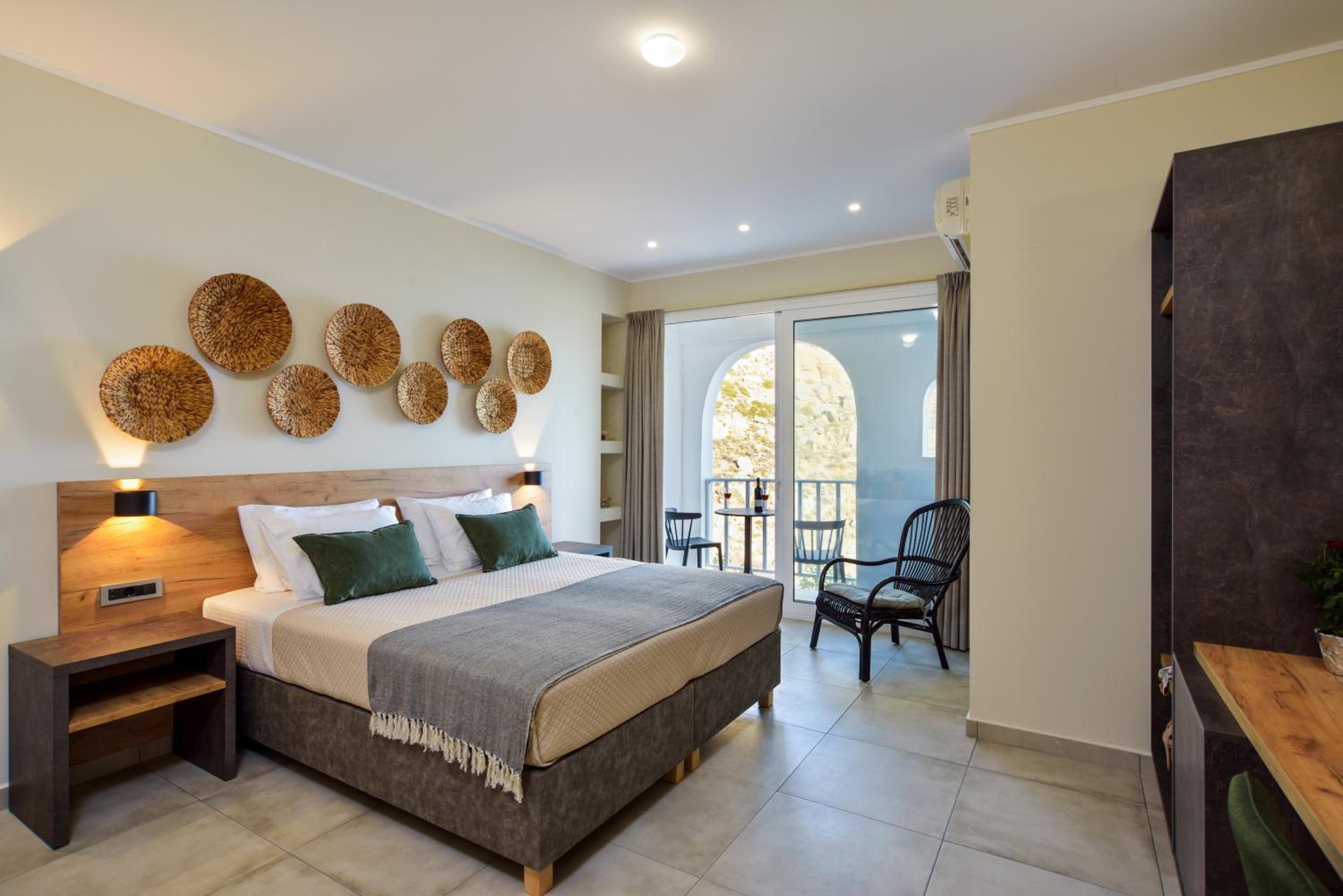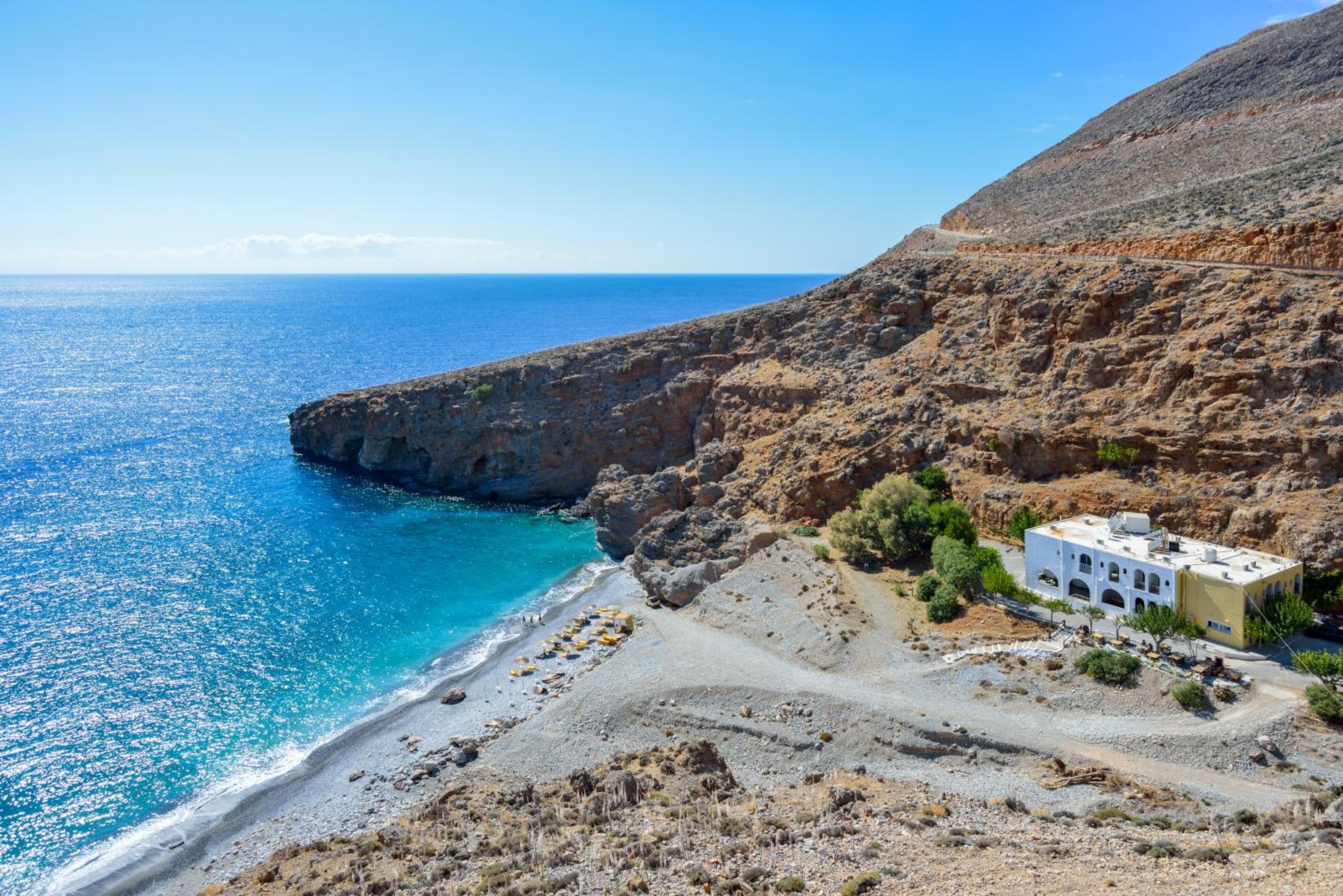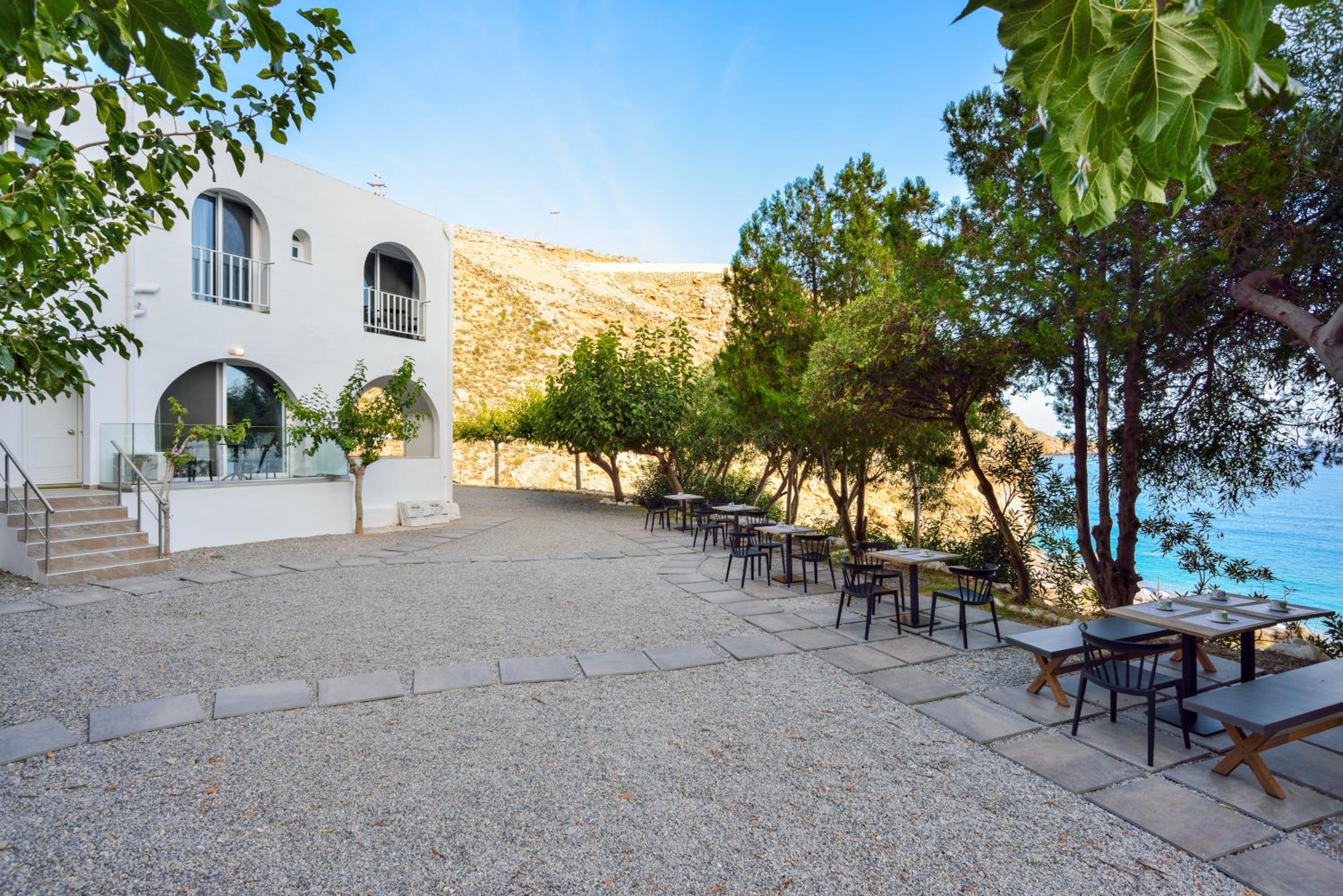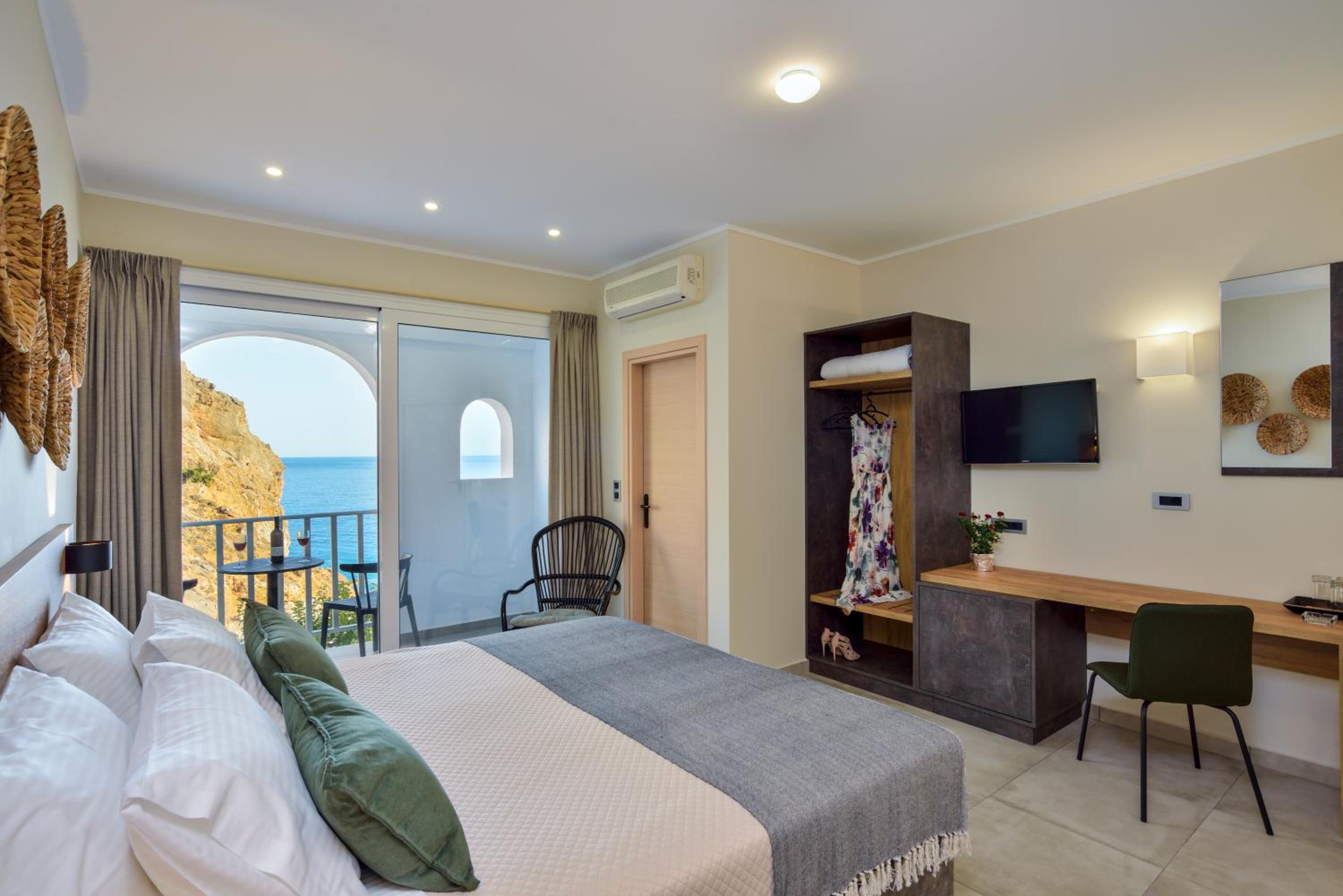 Great location, cosy clean beach just below the hotel, Rooms are spacy, beds are very comfortable. 5 minutes by car to Sfakia with option to take boat to Lutro. Nice restaurants plus breakfast options in Sfakia as breakfast is not included.