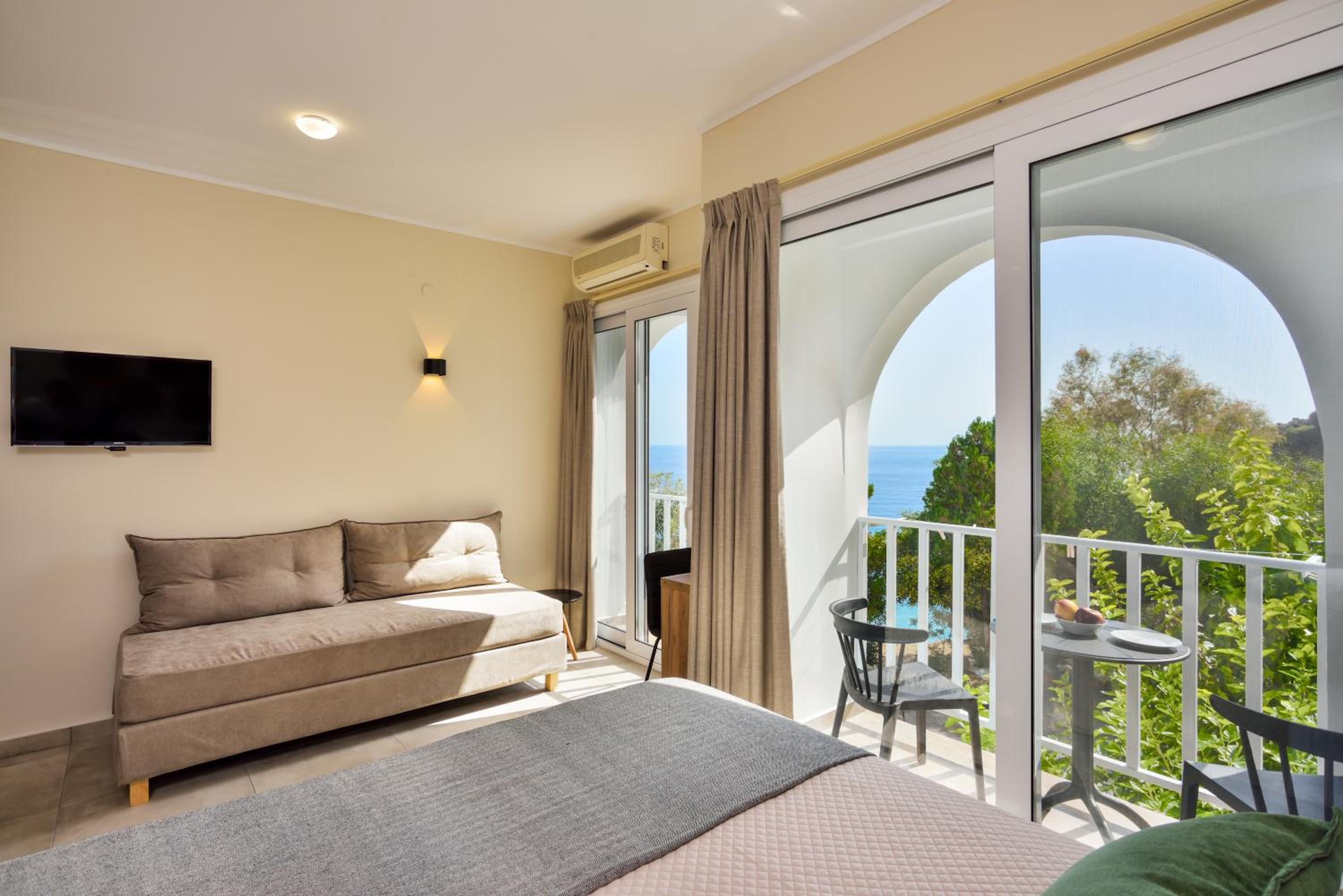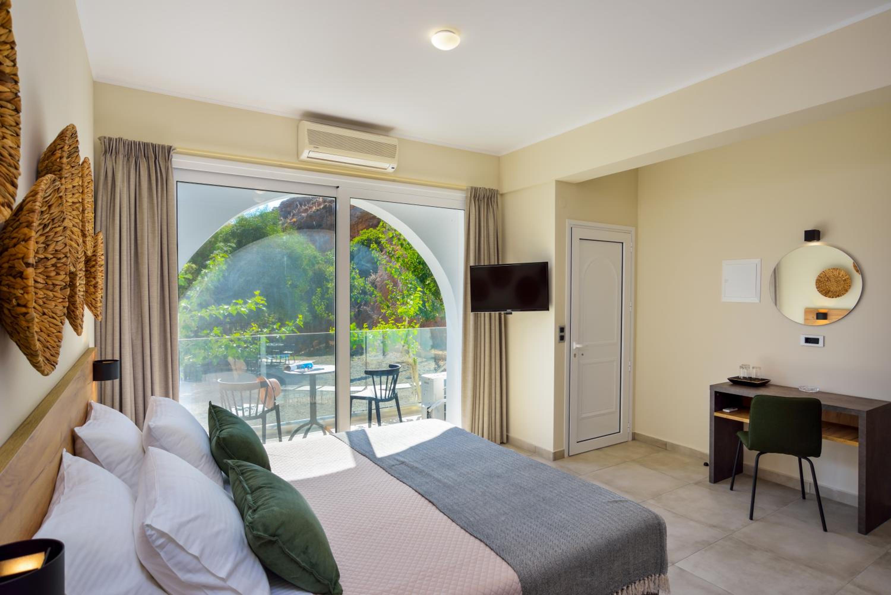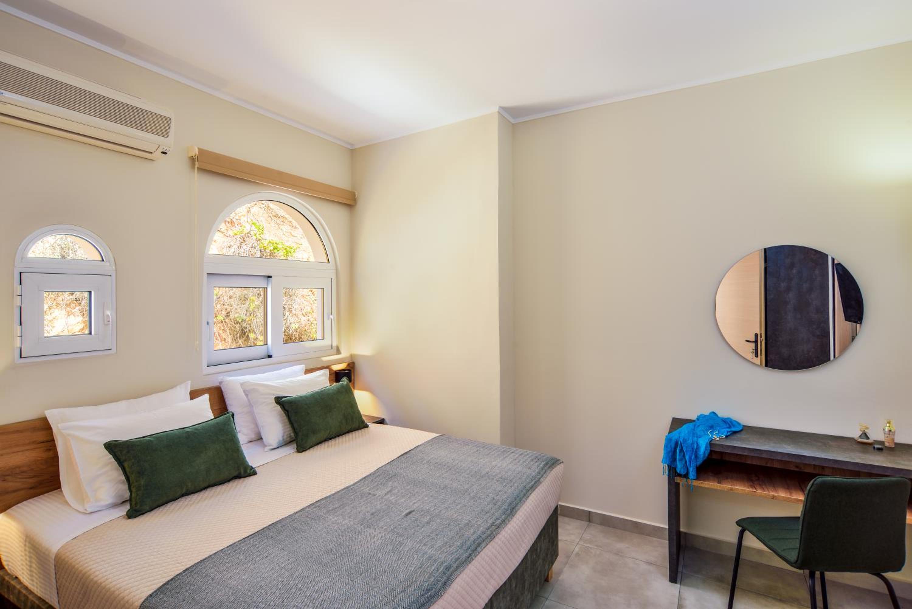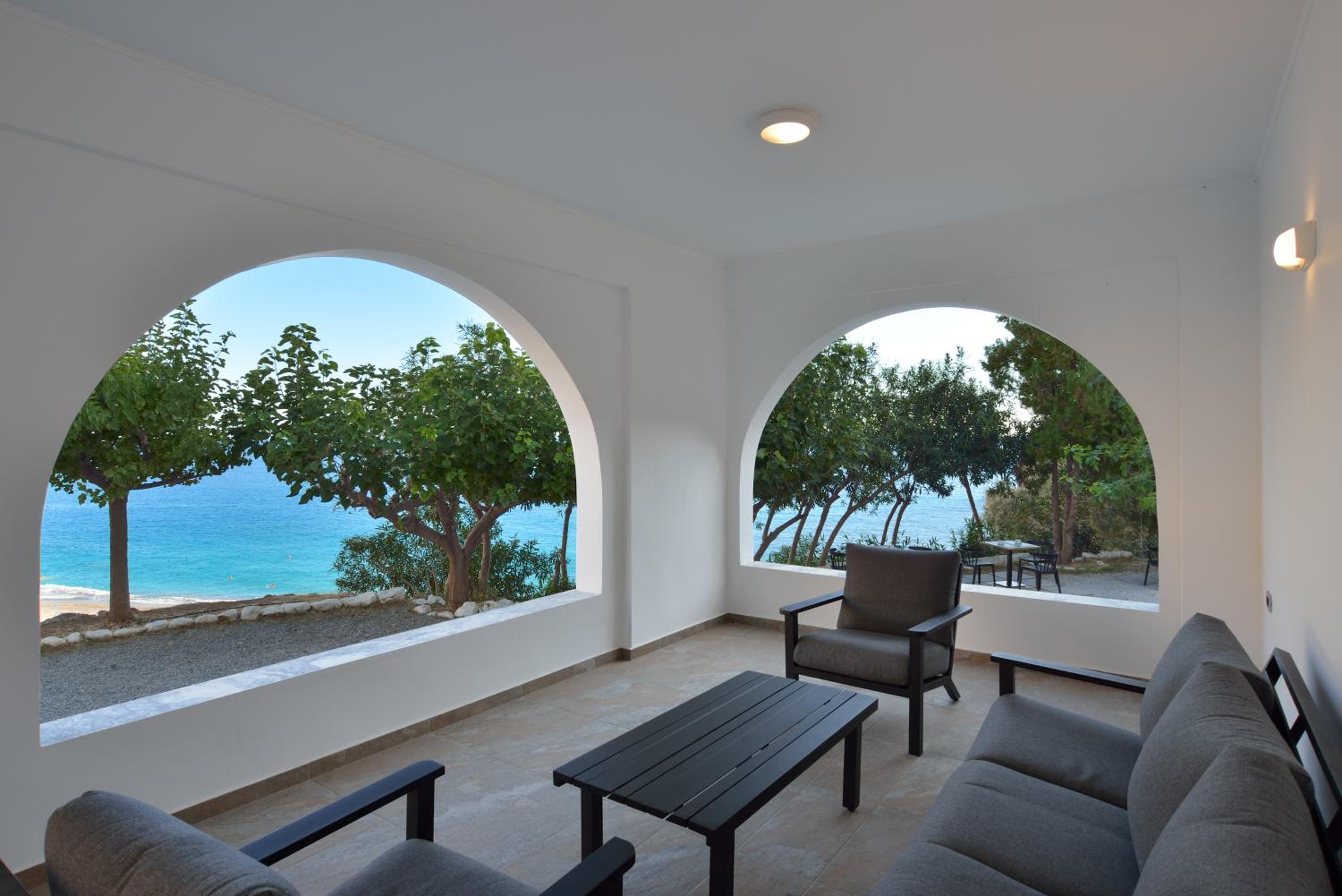 The property was perfect in every way! It was located just above the nicest beach which was a small, slightly pebbly, cove but with the clearest water. The host was super friendly and the room was large, contemporary, very clean and with very good A/C. We loved the picnic area in front of the rooms where we had breakfast overlooking the bay.