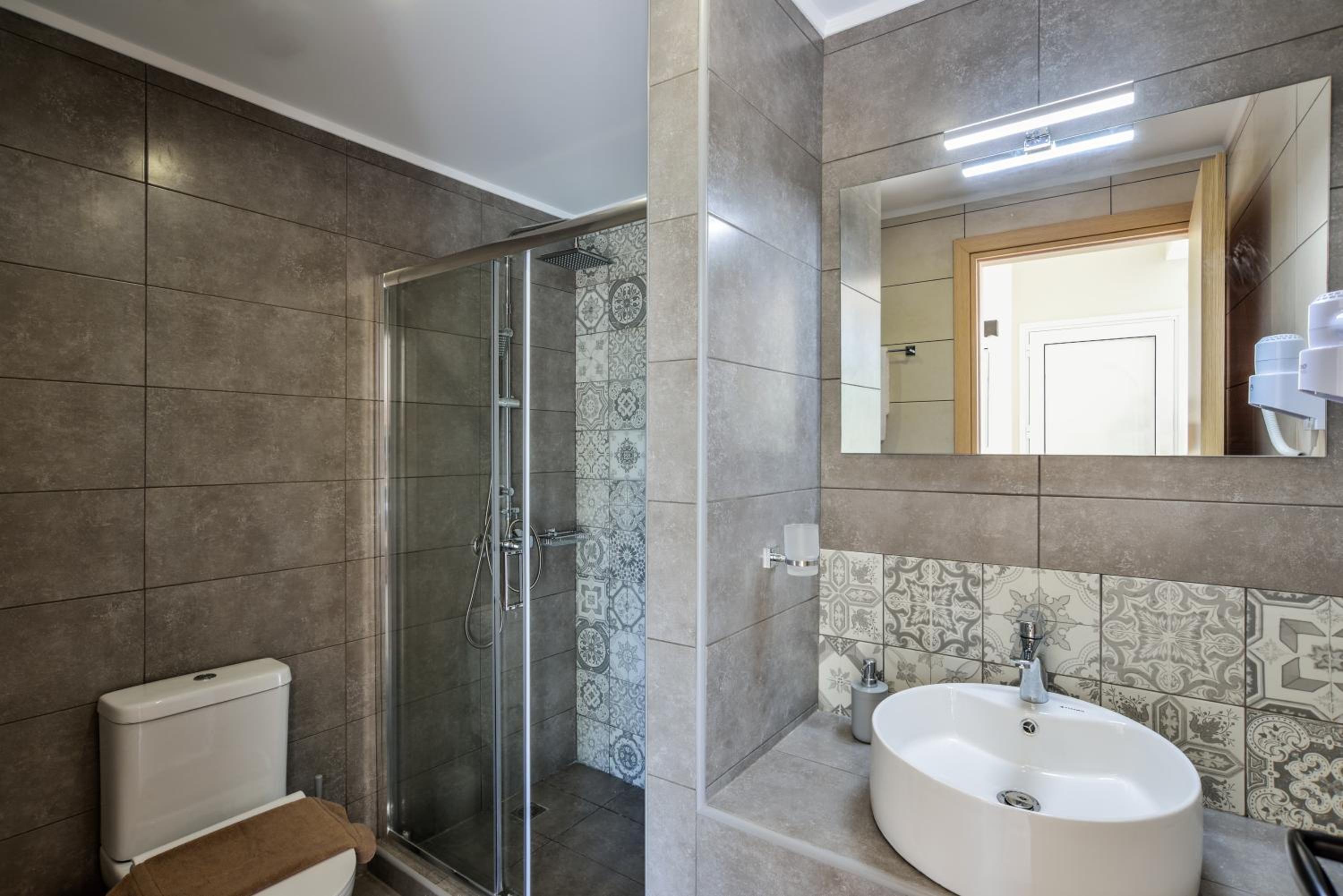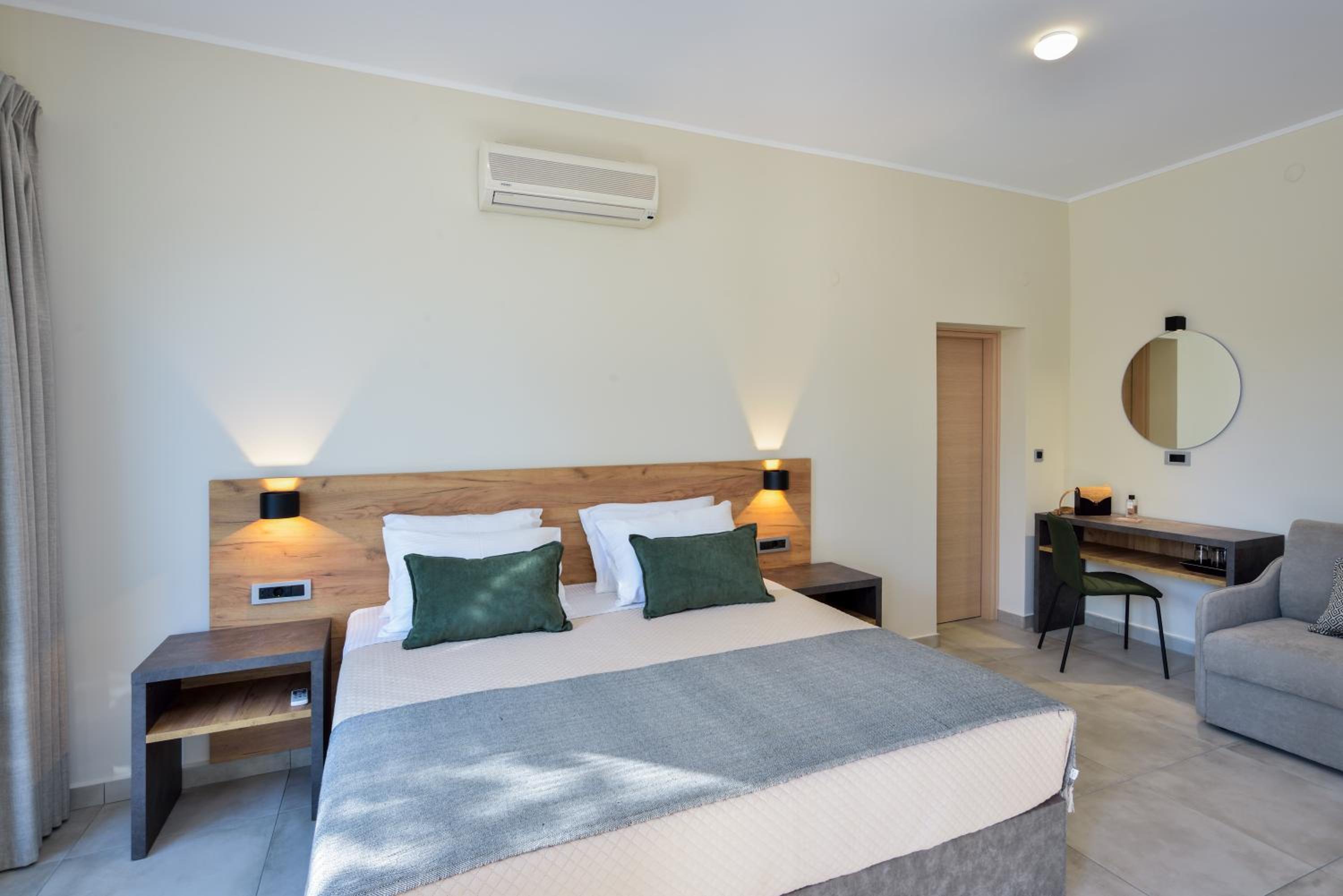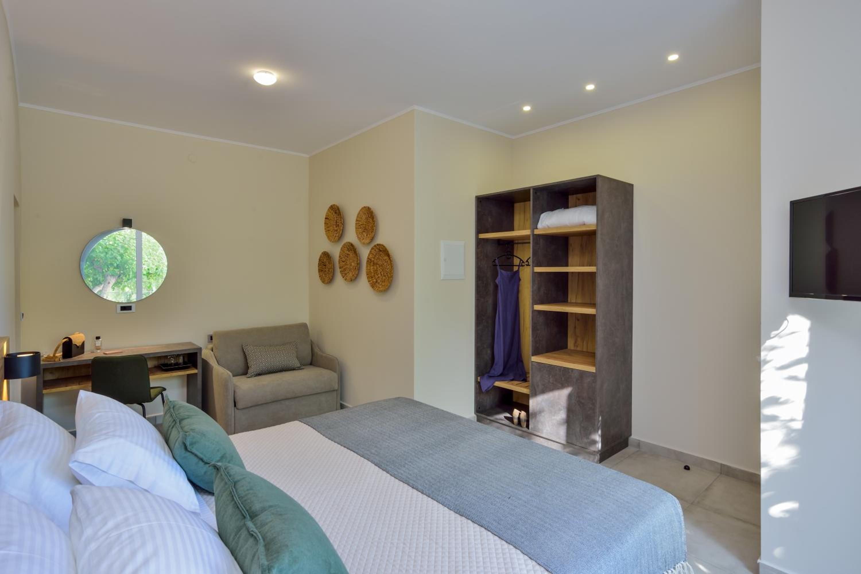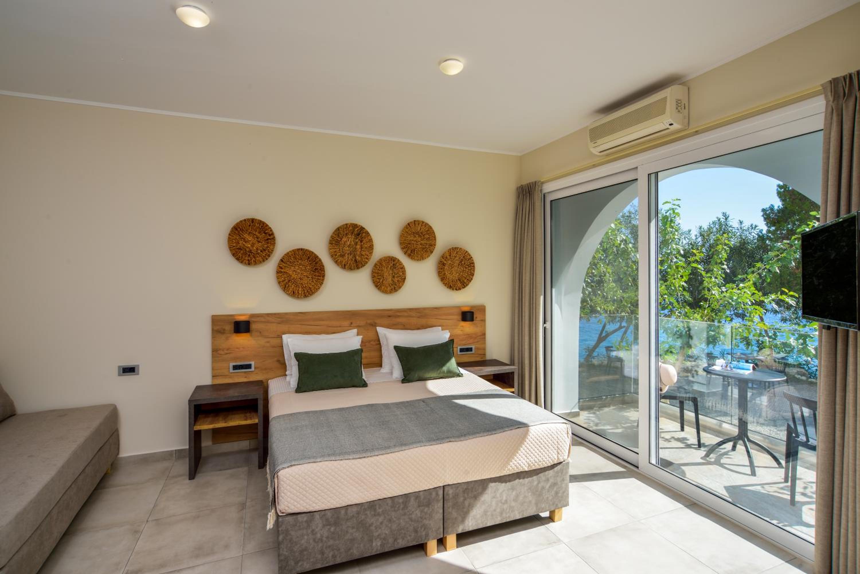 The property was perfect in every way! It was located just above the nicest beach which was a small, slightly pebbly, cove but with the clearest water. The host was super friendly and the room was large, contemporary, very clean and with very good A/C. We loved the picnic area in front of the rooms where we had breakfast overlooking the bay.