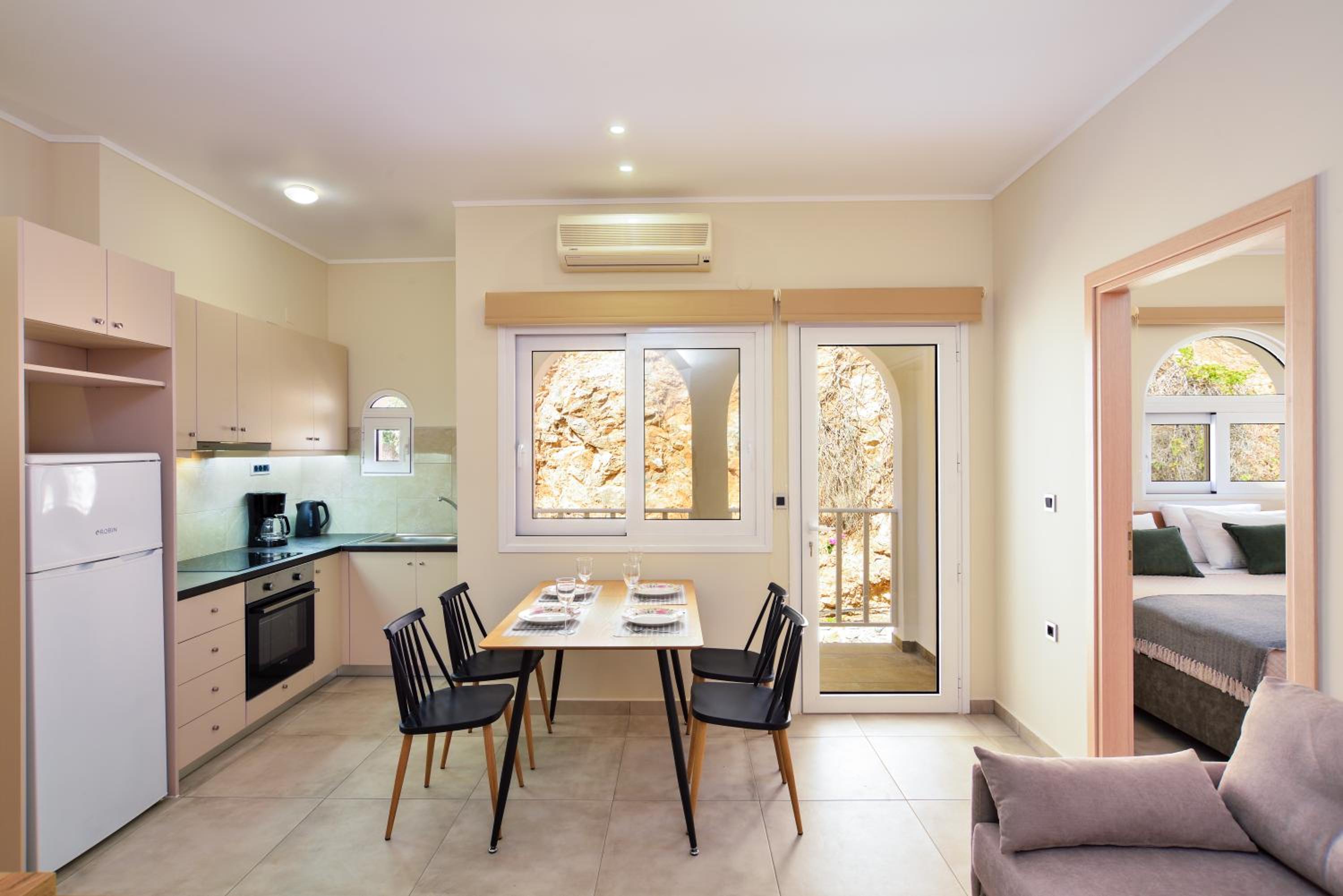 Quiet, peaceful apartments above a beautiful rugged and scenic beach. Was perfect for our family to explore the southern Crete beaches.