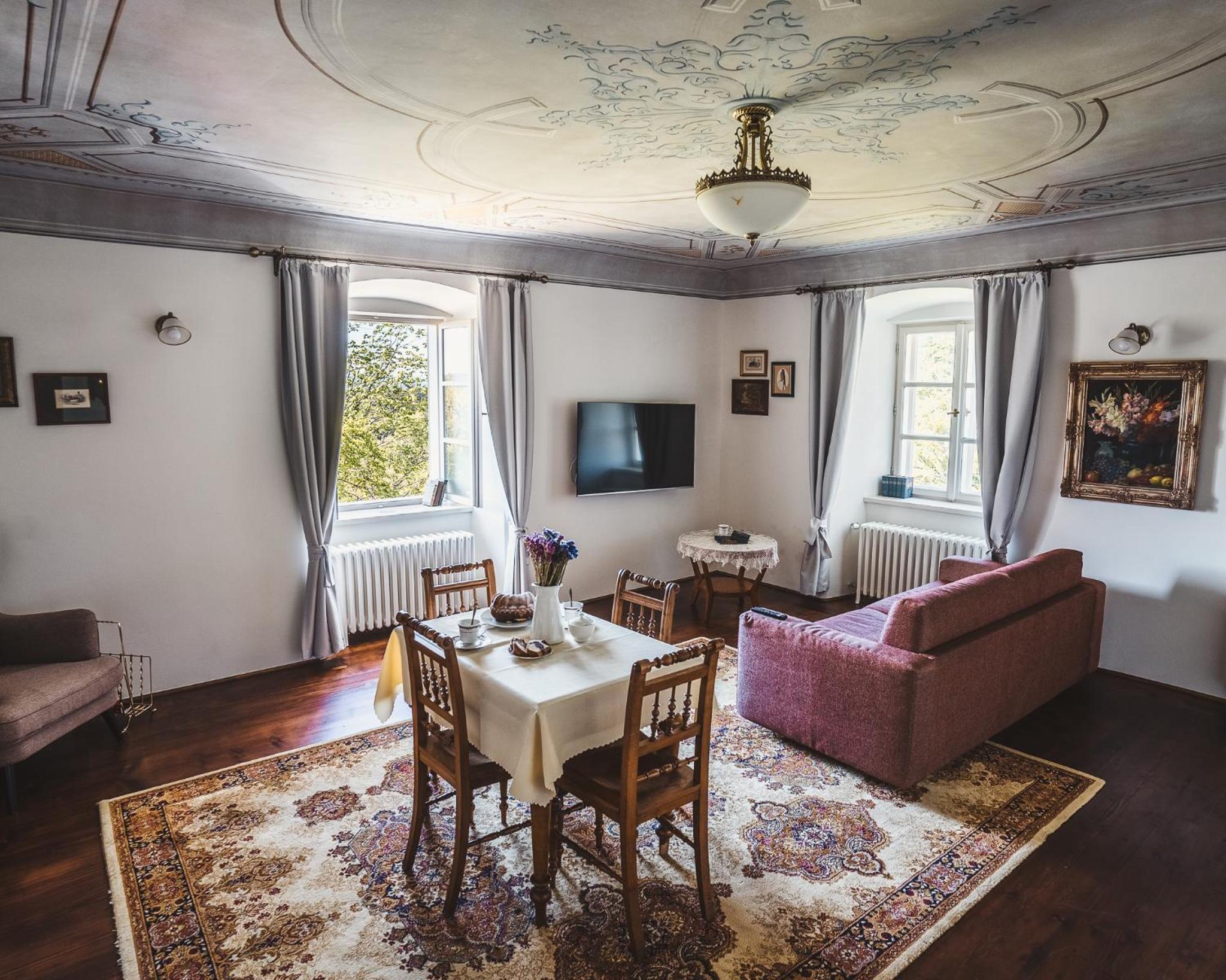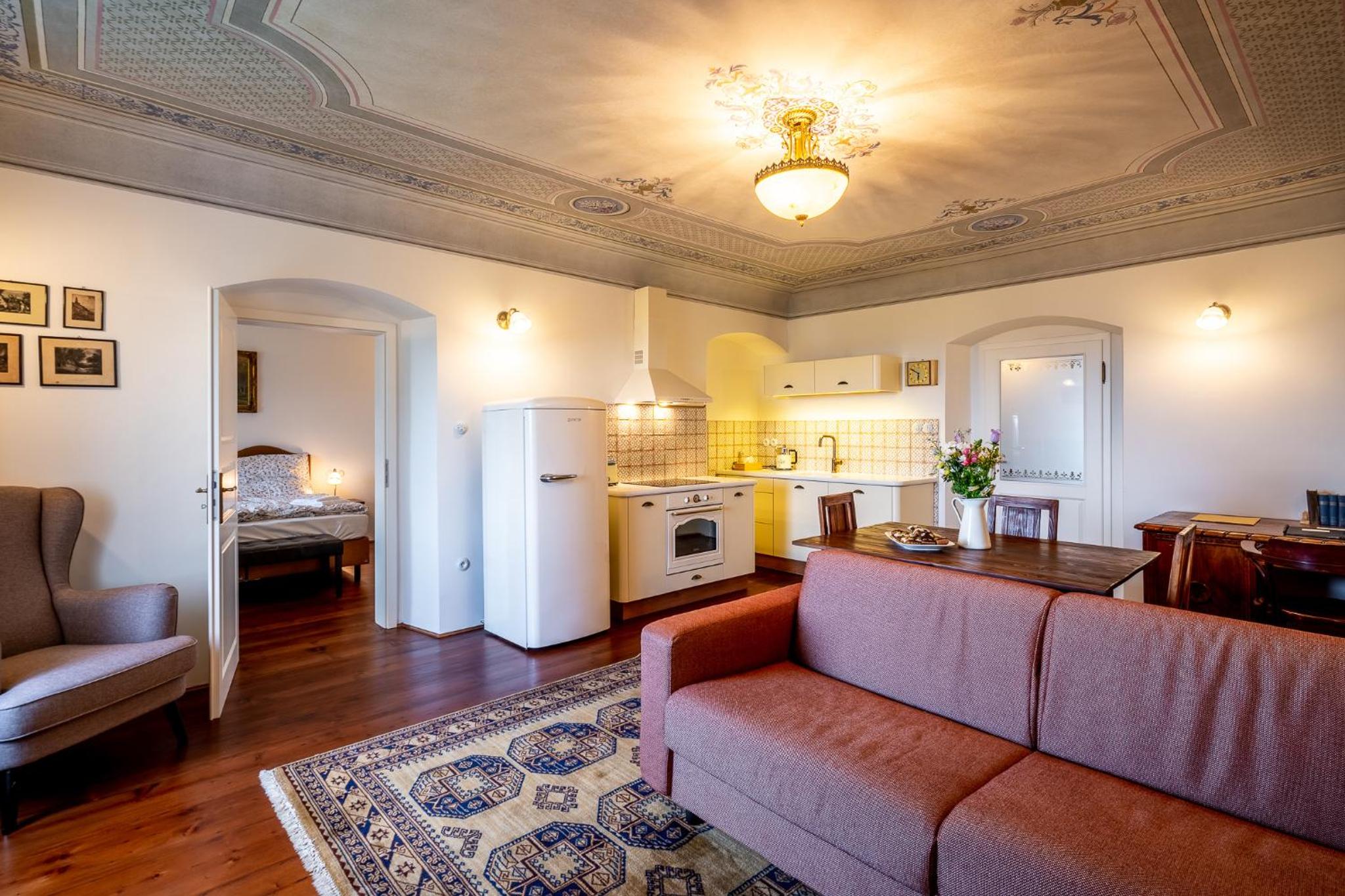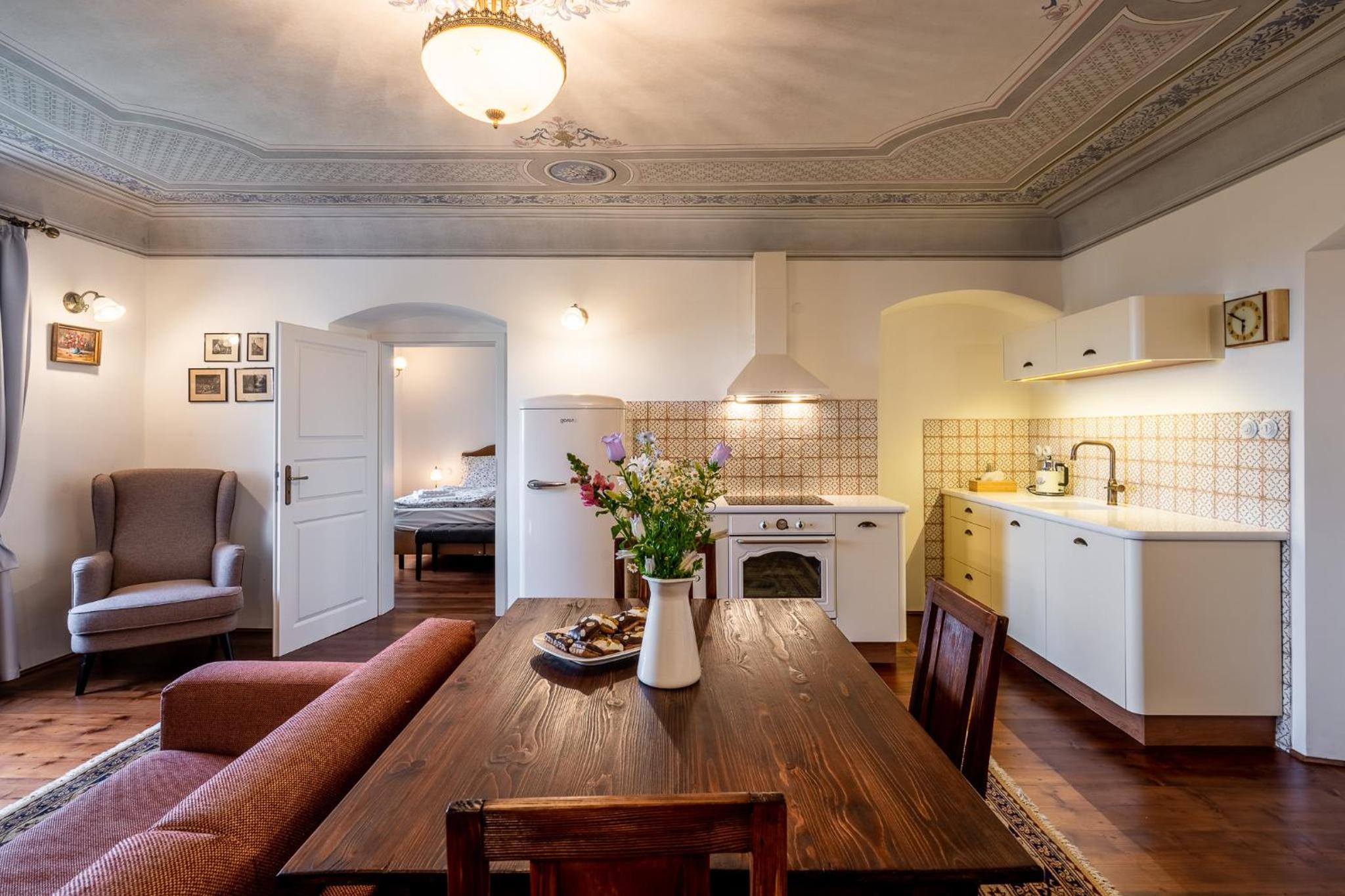 To be in Cesky Krumlov and in one of Villa Waldhouse apartment is like in a fairytale. Stay in a renovated building of the former Schwarzenberg Gamekeeper´s Lodge.You can feel the history. It's peaceful and silent. We had a small amount of snow and the countryside was magnificent. The apartment is very comfortable. The renovation was done while maintaining the authenticity of the original building. The ceiling in the guest room is beautiful. The furniture and appearance are noble. Hanna and Martin the owners are wonderful people, always wanting to satisfy your needs. The breakfast and pastries brought to the door in a basket and the surprises warm the heart. You have plenty of parkings near the old city . The owners give a parking card so you can park free during your visit the most beautiful village Cesky Krumlov. We thank Hanna and Martin for their wonderful hospitality 🌷🪷