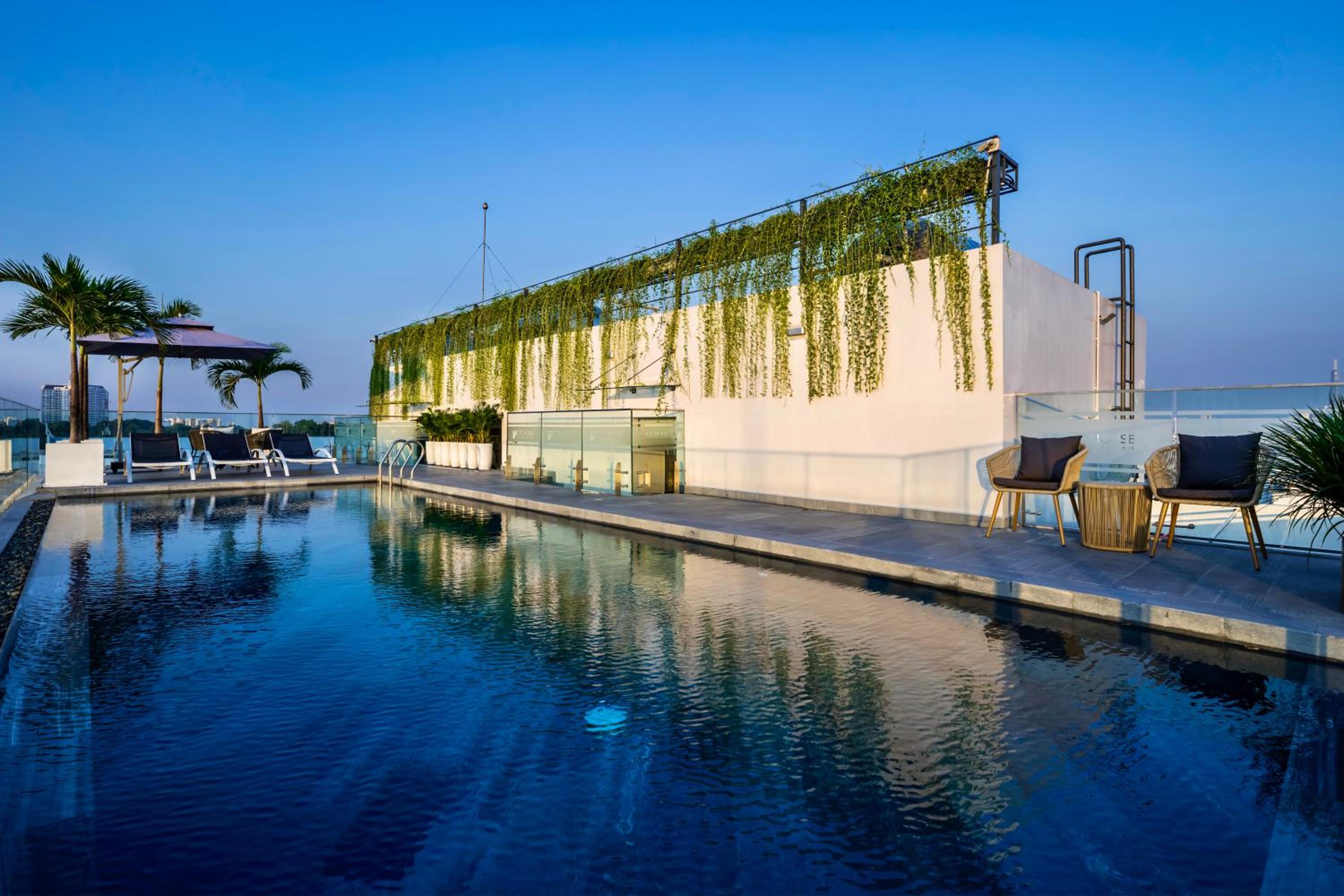 Experience luxury at CityHouse - Kim Nguyên with a stunning rooftop pool offering panoramic city views. Unwind and soak up the sun in this serene setting, perfect for relaxation.