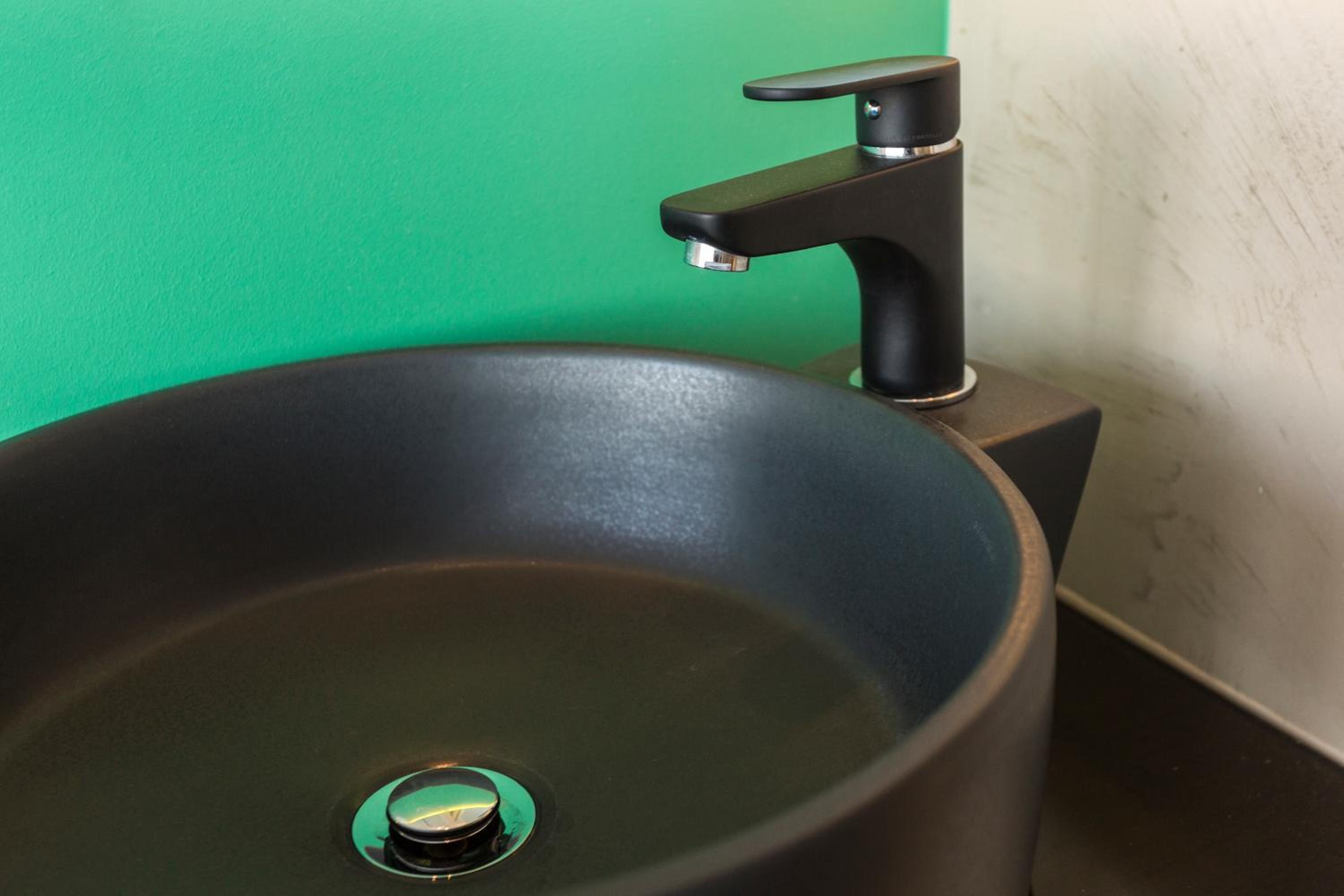 The shower is built into the bedroom, with transparent walls. And this first-floor room has windows opening to a pedestrian walkway. So you need to close the curtains to have any privacy during your shower.