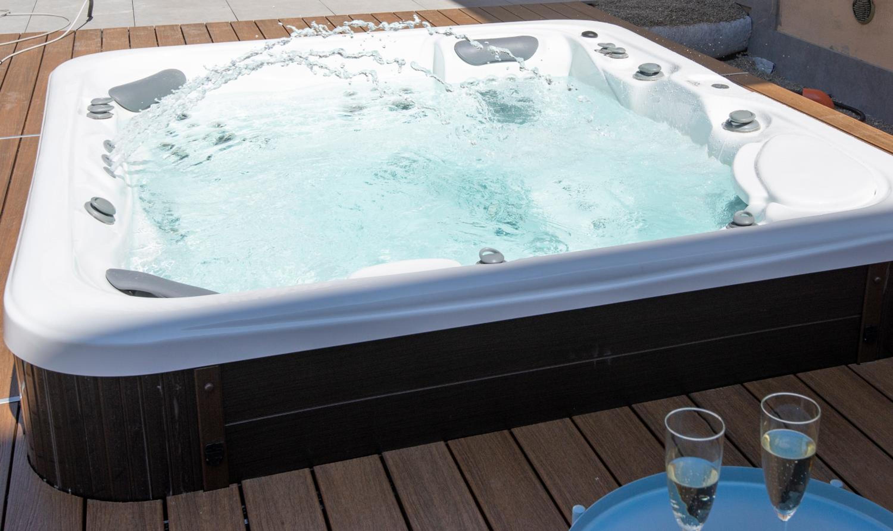 Lovely place to stay and centrally located . We stayed for a wedding so accommodated a few of us . Well equipped , comfy clean beds . Staff were really friendly and sorted our late check in with ease . One day hot tub was a bit grubby but lovely and clean the next .