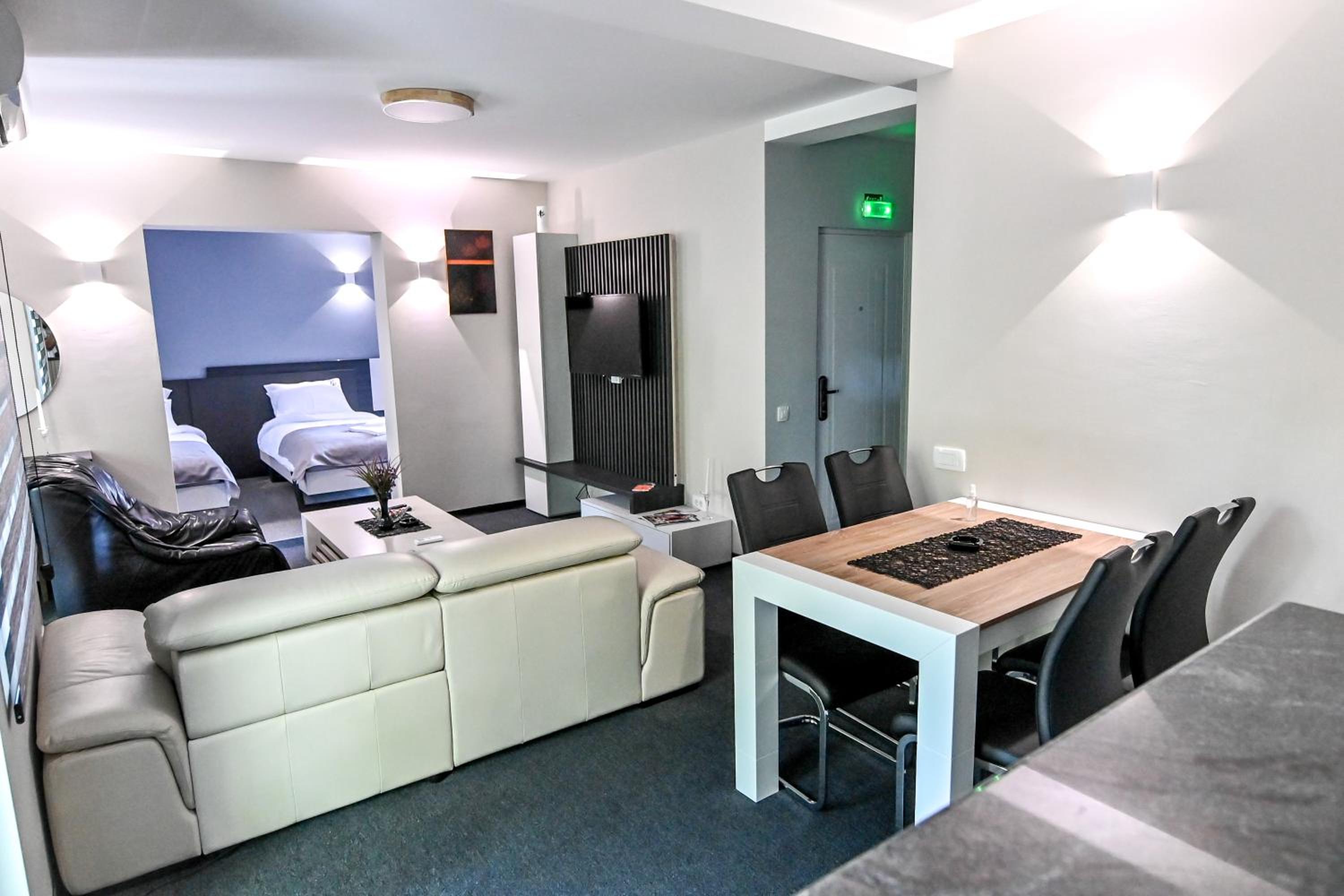 Domaćin je jako ljubazan i zaista je učinio sve da se osećamo kao kod kuće, devojke koje rade u kafiću koji je u istoj zgradi takođe preljubazne, divne i nasmejane. Apartman je čist, prostran, udoban, ima 3 terase koje su nam upotpunile uživanje, kreveti su jako udobni i na odličnoj i centralnoj lokaciji je. Bazen je topao, voda čista, doručak preukusan, sve je stvarno bilo savršeno. Svakako ćemo se vratiti opet, a smeštaj je za čistu desetku! Hvala Vam na divnom provodu!