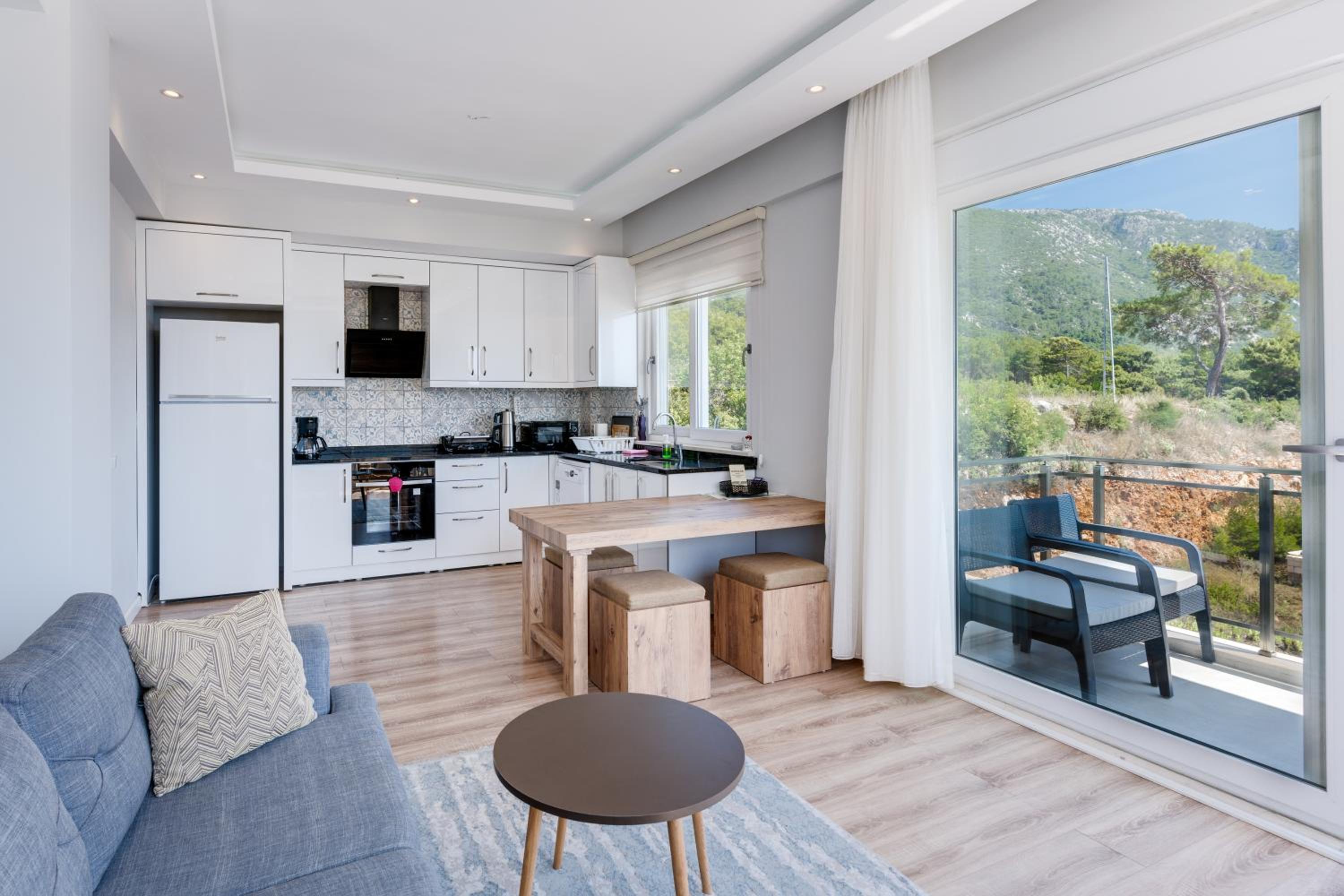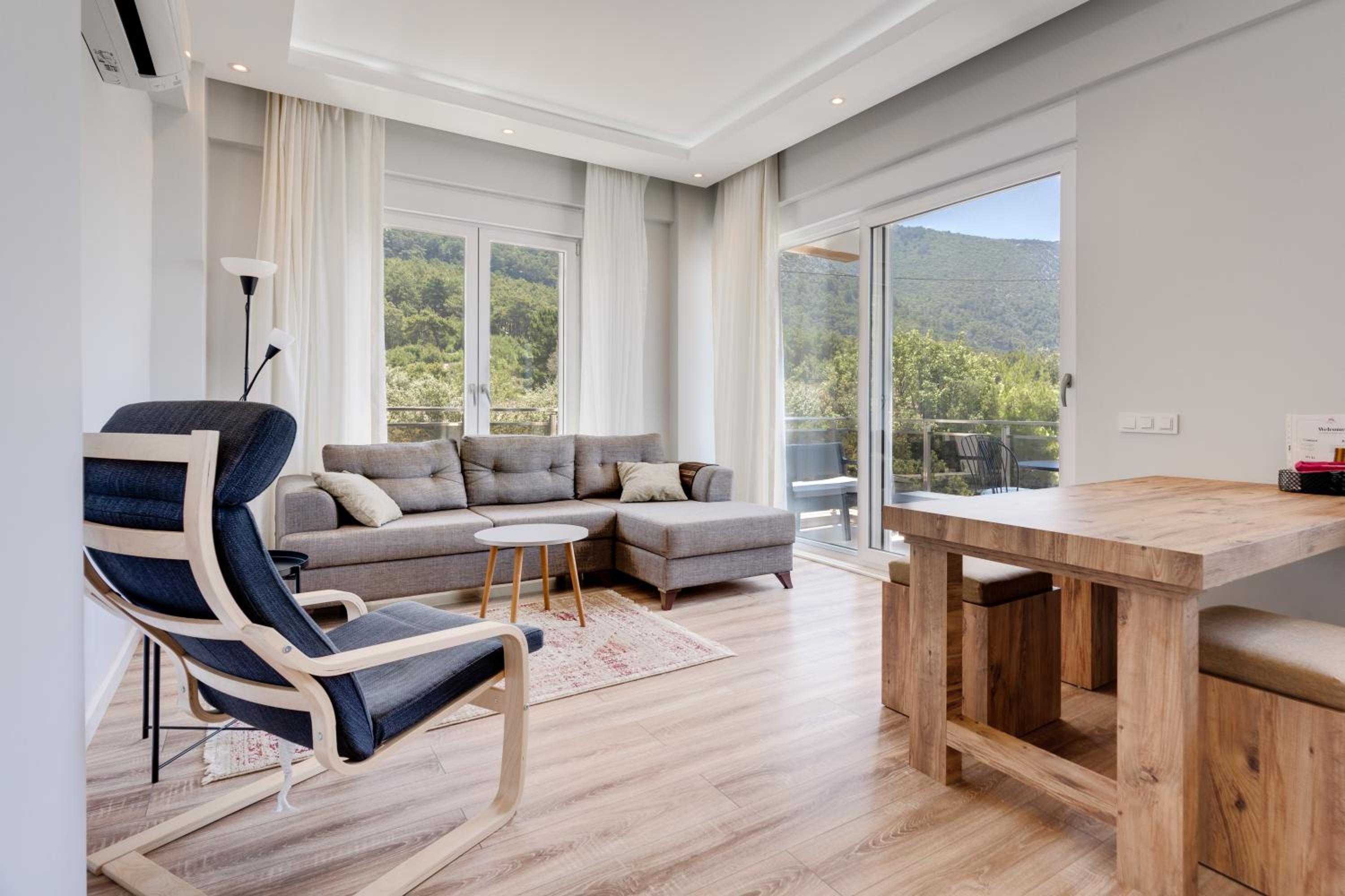 Located in village Karaozn this modern 1 bdrm apartment had all modern conveniences and had a well stocked kitchen. Host Bekir was superb and was very helpful at all times. He even came to village entrance to guide us in as Google misdirect to back end of property. He was helpful at all times and provided us with whatever we requested. He goes over and above in being the Host that you dream of. Has good recommendations for eating out and activities.place is ideal for relaxing in uncrowded beaches and scenic droves to destinations such as treks and ruins etc.