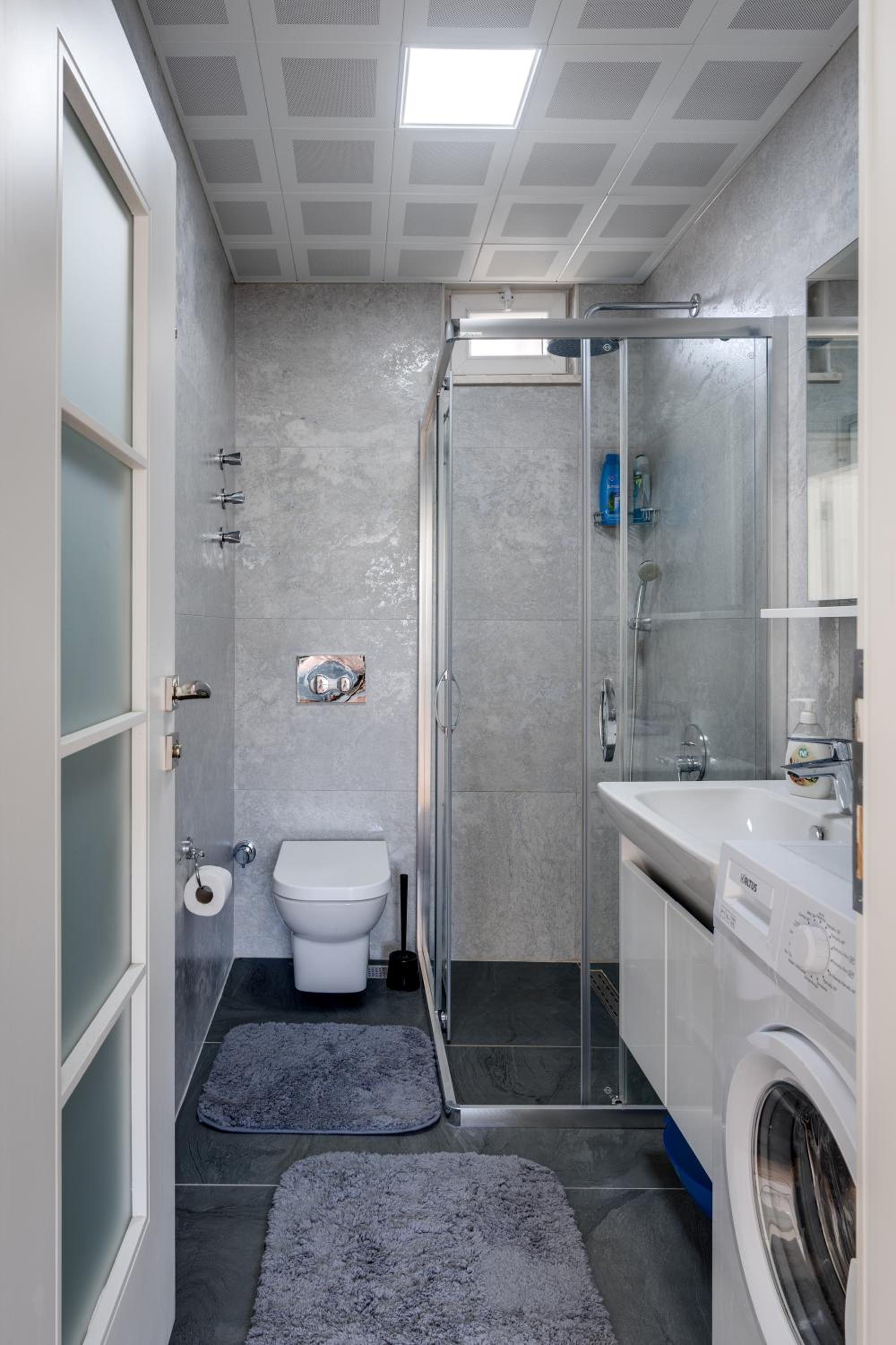 - It is very difficult to adjust the flow of warm water in the shower; it is either cold or very hot. The correct setting can be achieved with millimeter precision. Perhaps this can be fixed with a thermostatic mixer (advice for the owner).