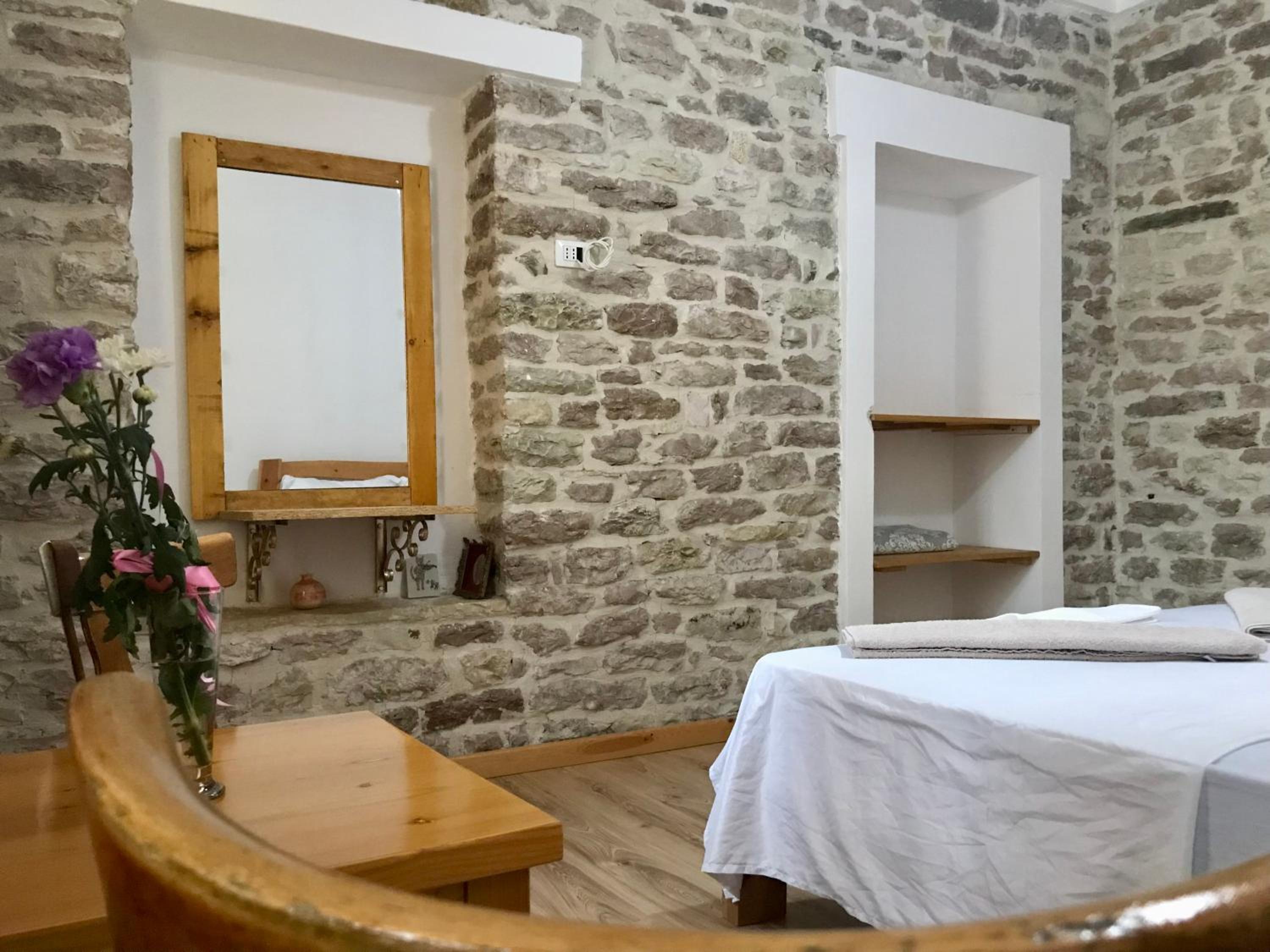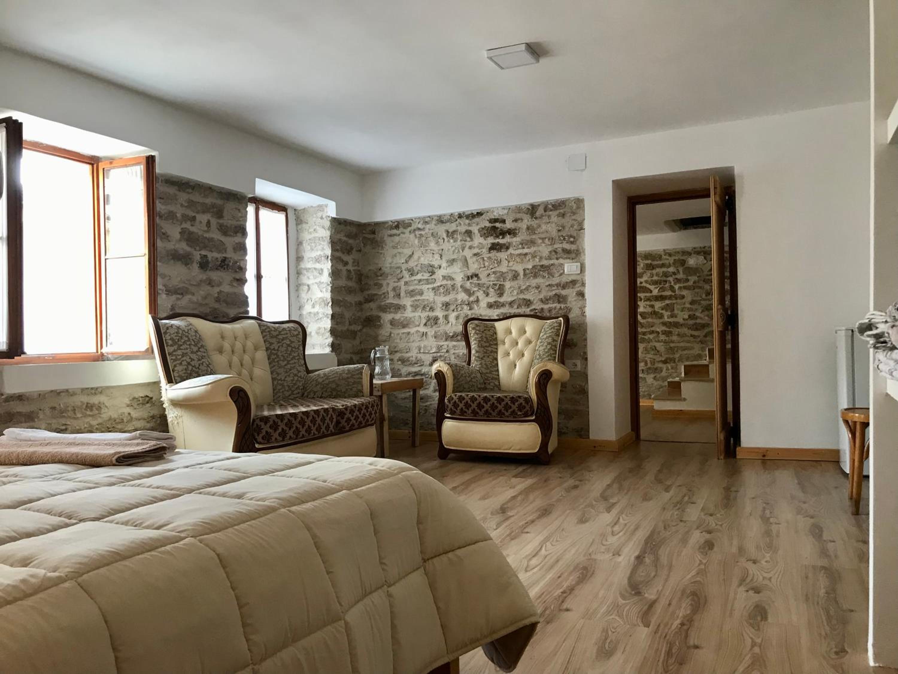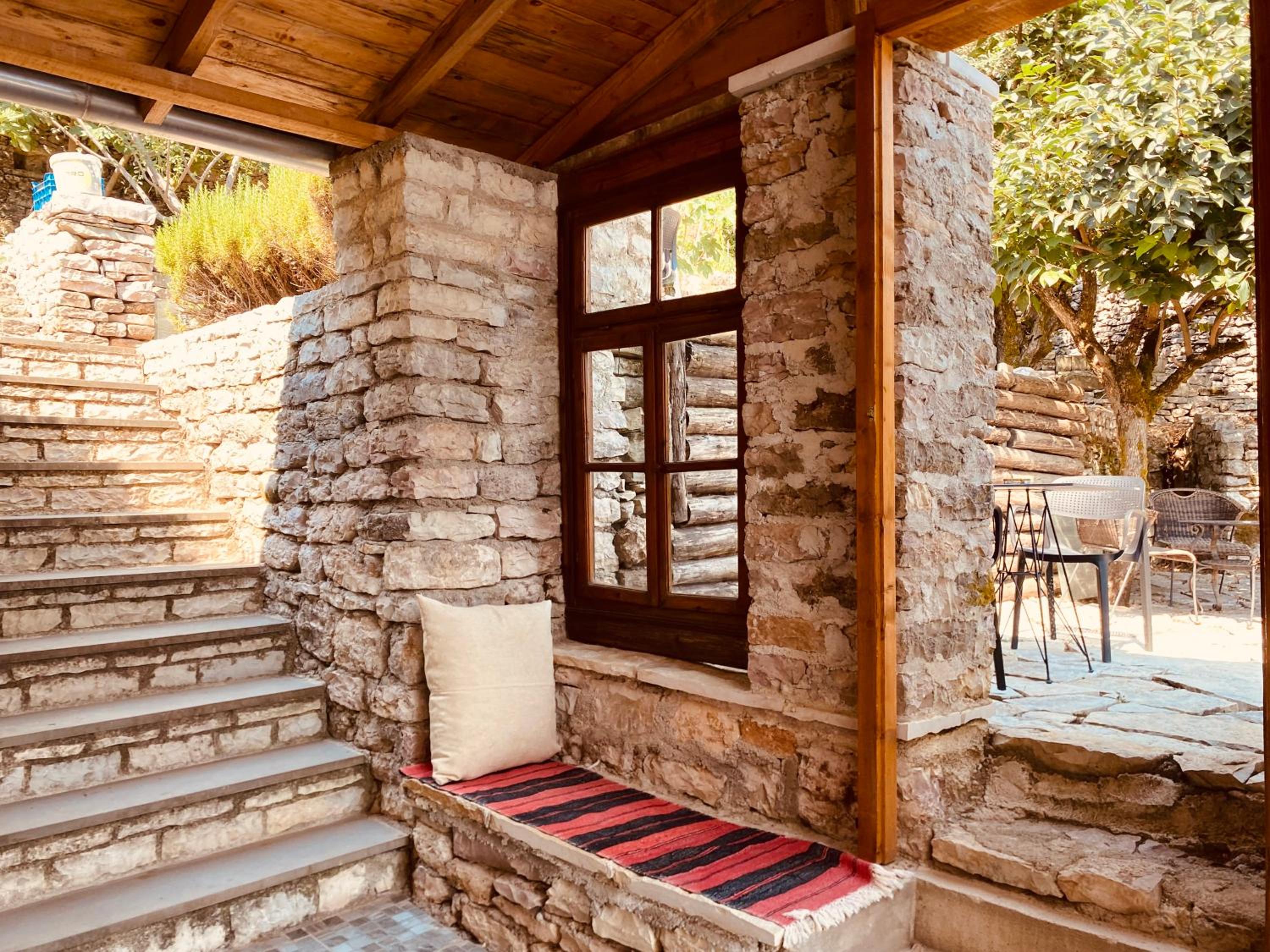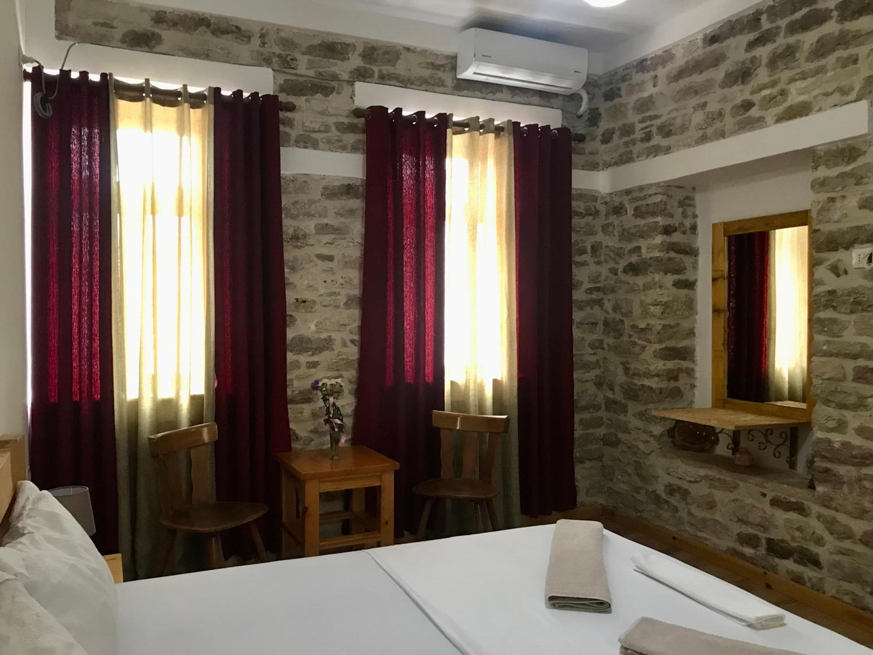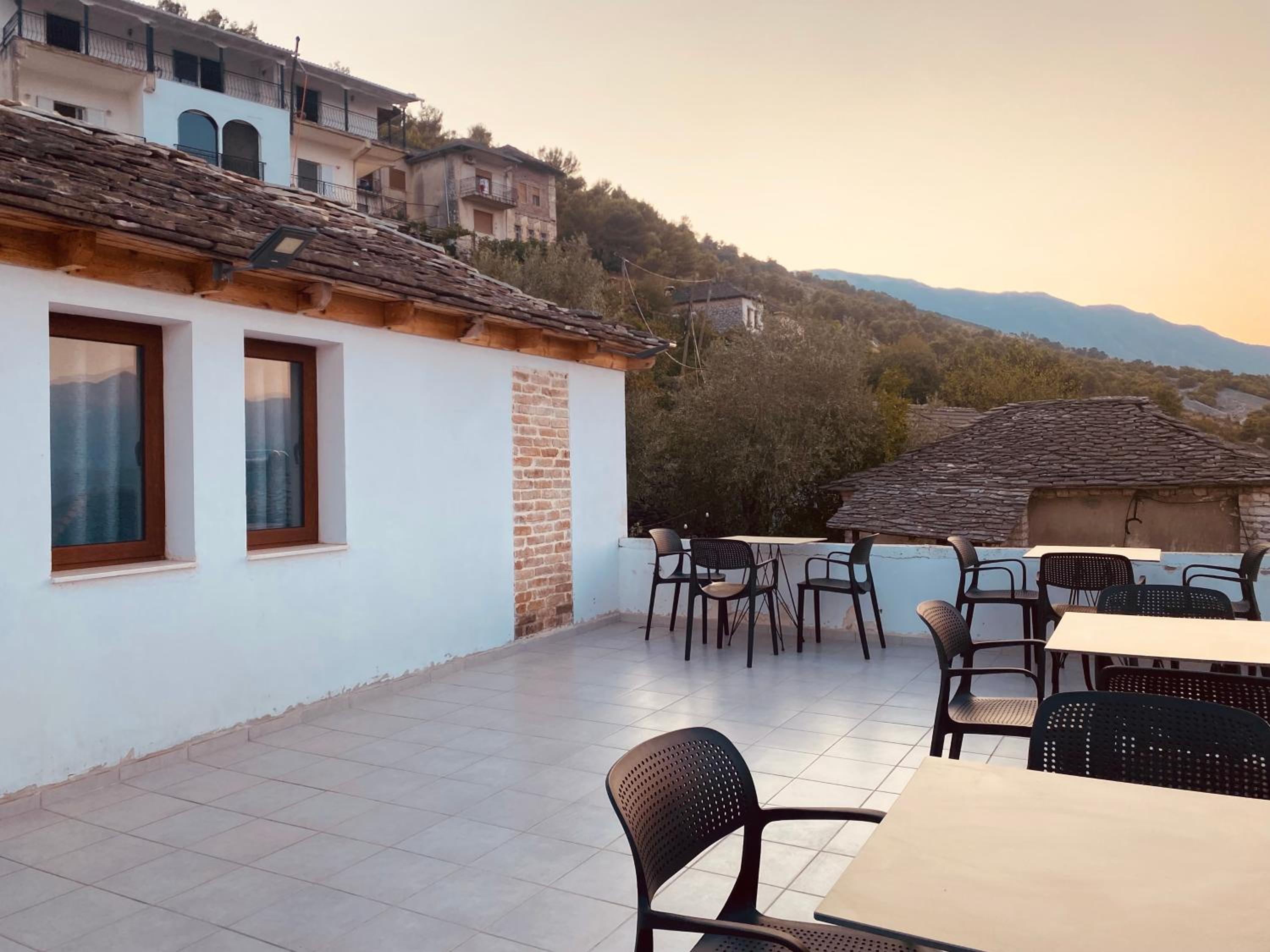 Come le foto molto suggestiva colazione fantastica e bella e interessante chiacchierata con il padrone di casa sulla storia albanese e greca consigliatissimo