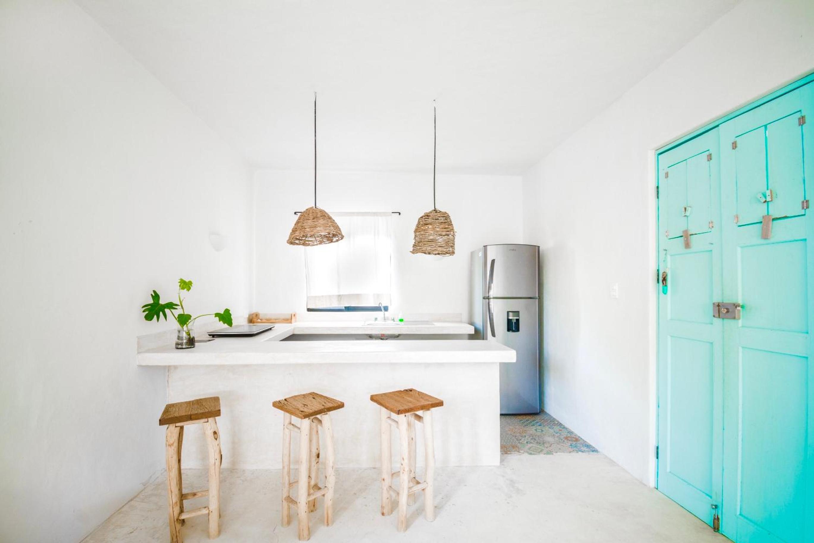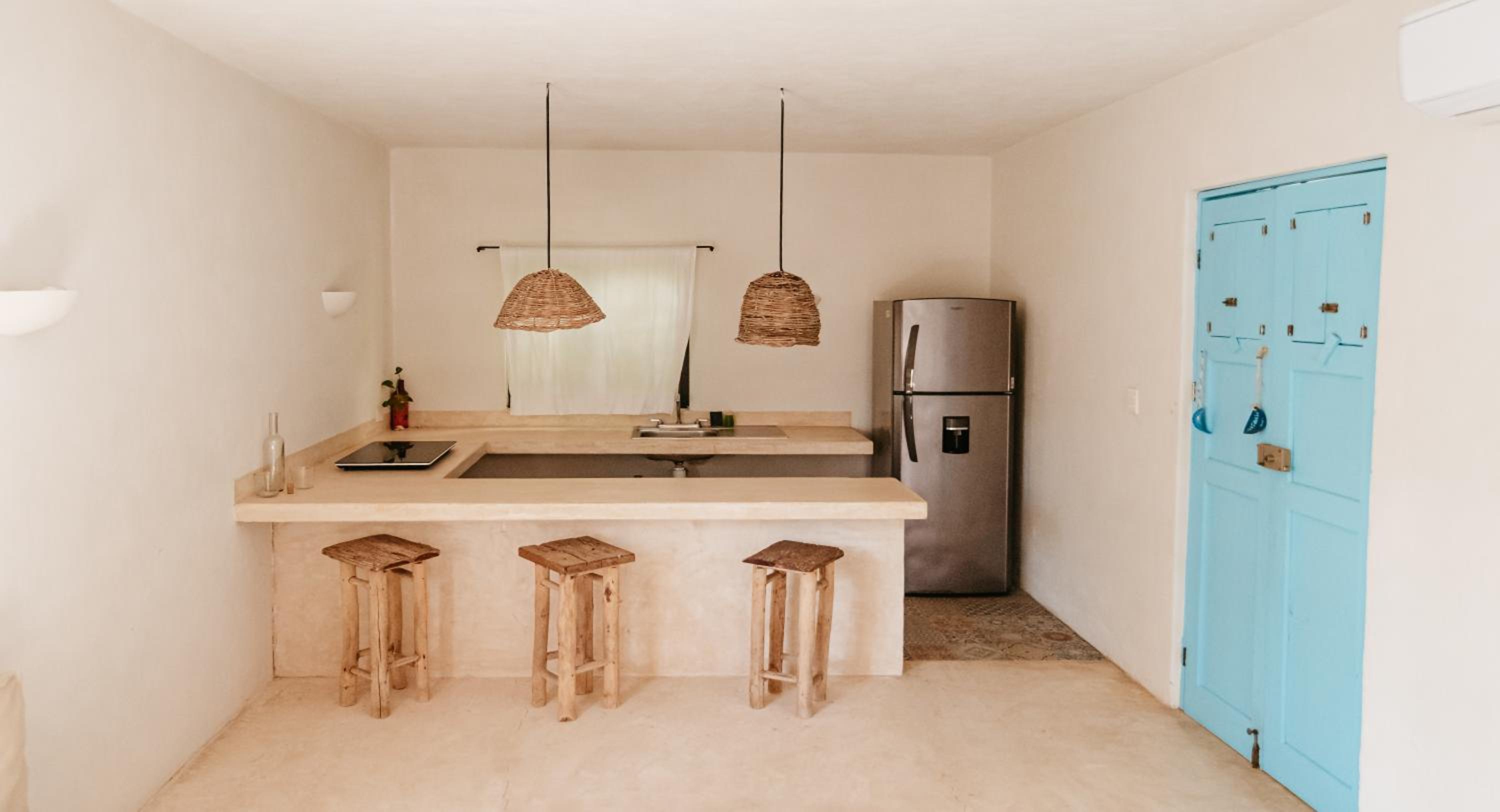 Indulge in our 12 charming suites, each offering views of the sea, lagoon, jungle, or our cozy pool area. Complete with a well-equipped kitchen and private bathroom, your comfort is our priority.