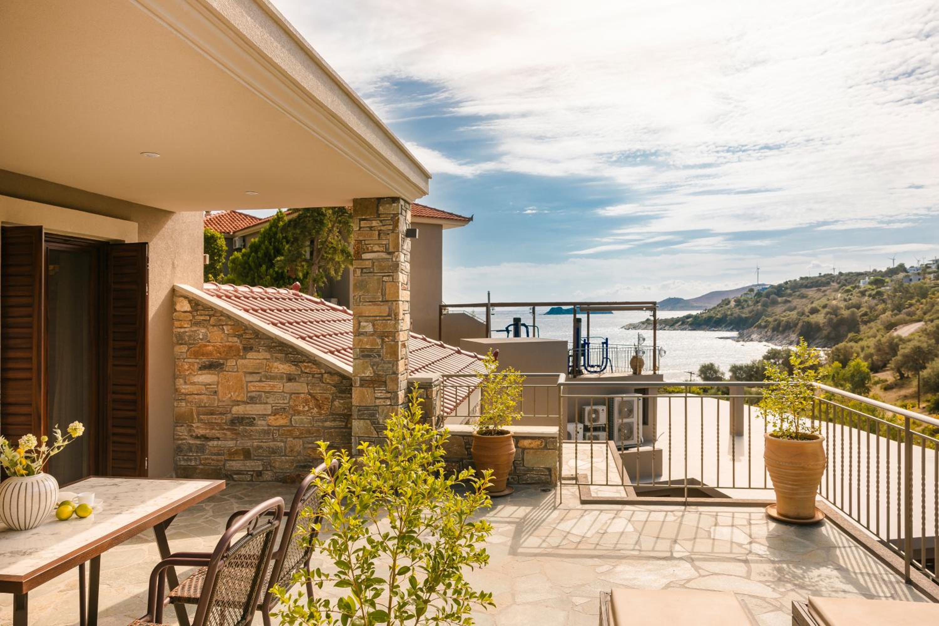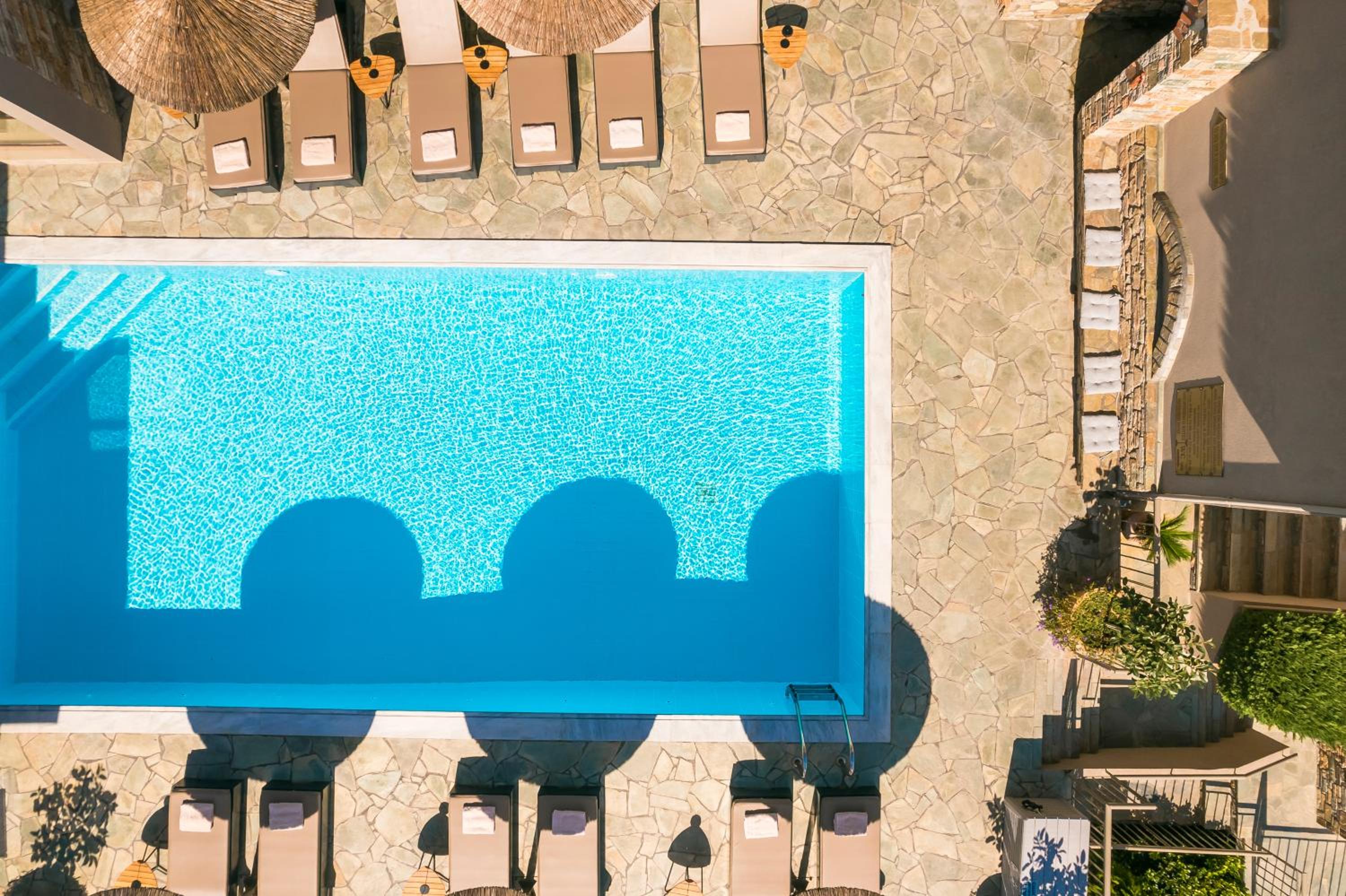 This is a really pretty hotel with stylish rooms, bar, and restaurant. The staff are wonderful, the spa treatments were great, and the breakfasts were delicious. One of the best things about staying here was the beach - less than a minute's walk and with free sunbeds for hotel guests, it was so easy and comfortable hanging out in this beautiful small bay. The rooms were also really comfortable, and the taverna next door has delicious food and a lovely view of the bay.