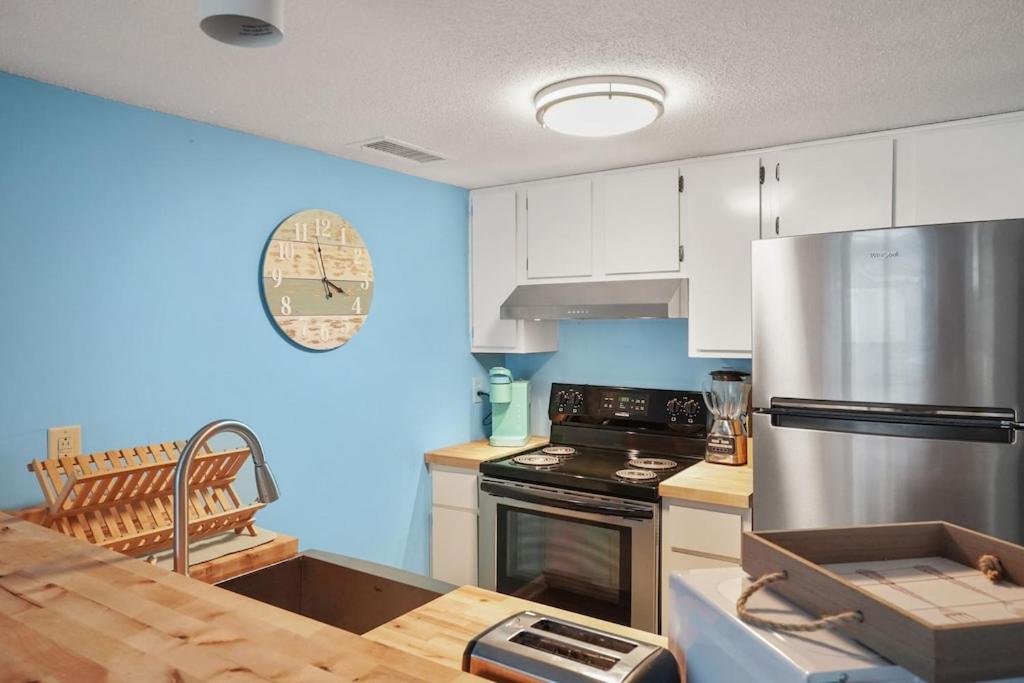 Beautiful Blue Ocean Condo in Myrtle Beach offers a spacious and modern 2-bedroom, 2-bathroom aparthotel with a private pool, free WiFi, and a fully equipped kitchen. Enjoy the stunning sea views from your balcony and relax in the comfort of air-conditioned rooms with premium amenities like a flat-screen TV and soundproofing.