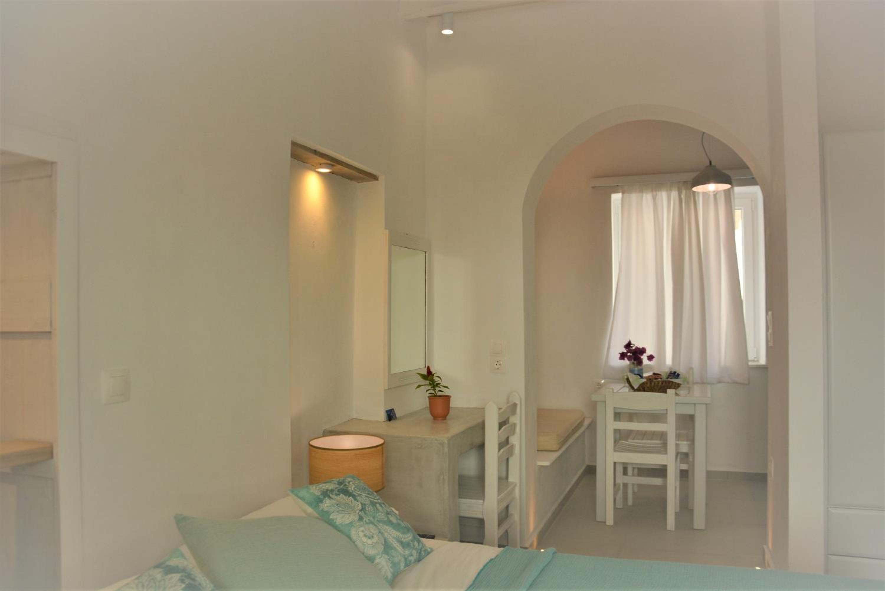 Wonderful service! Iannis is the ideal host: friendly, attentive and committed. You can ask all sort of information, from culture to restaurants. Very helpful with hiring a car, laundry service, beach directions, restaurant advice, etc. Breakfast is fully supported with many offers of jam, butter, coffee, cookies, etc. The room was appropriate to our needs and in line with what we paid for, with very modern bathroom and air conditioning. Beautiful balcony with view of chora and sea. Sunset is a plus to be con templated from there.