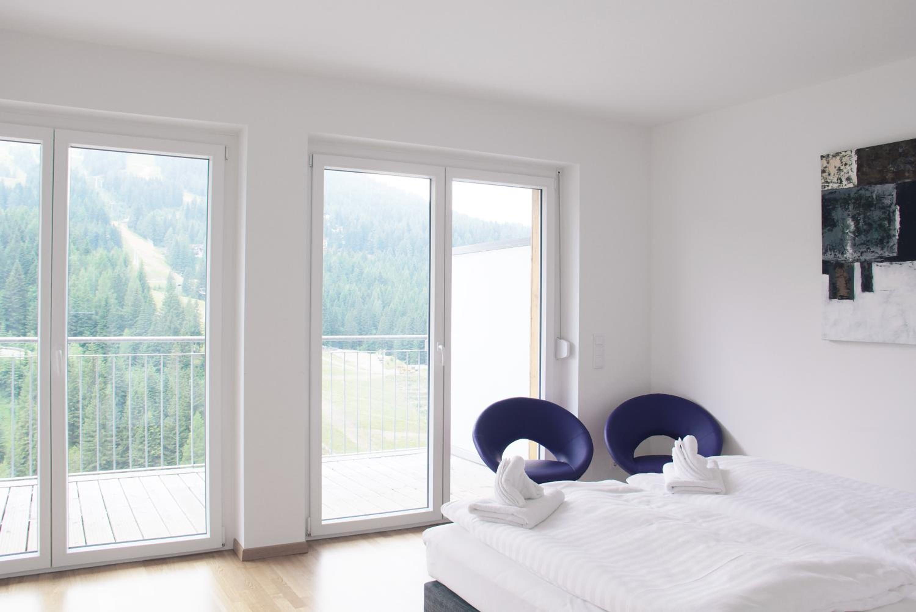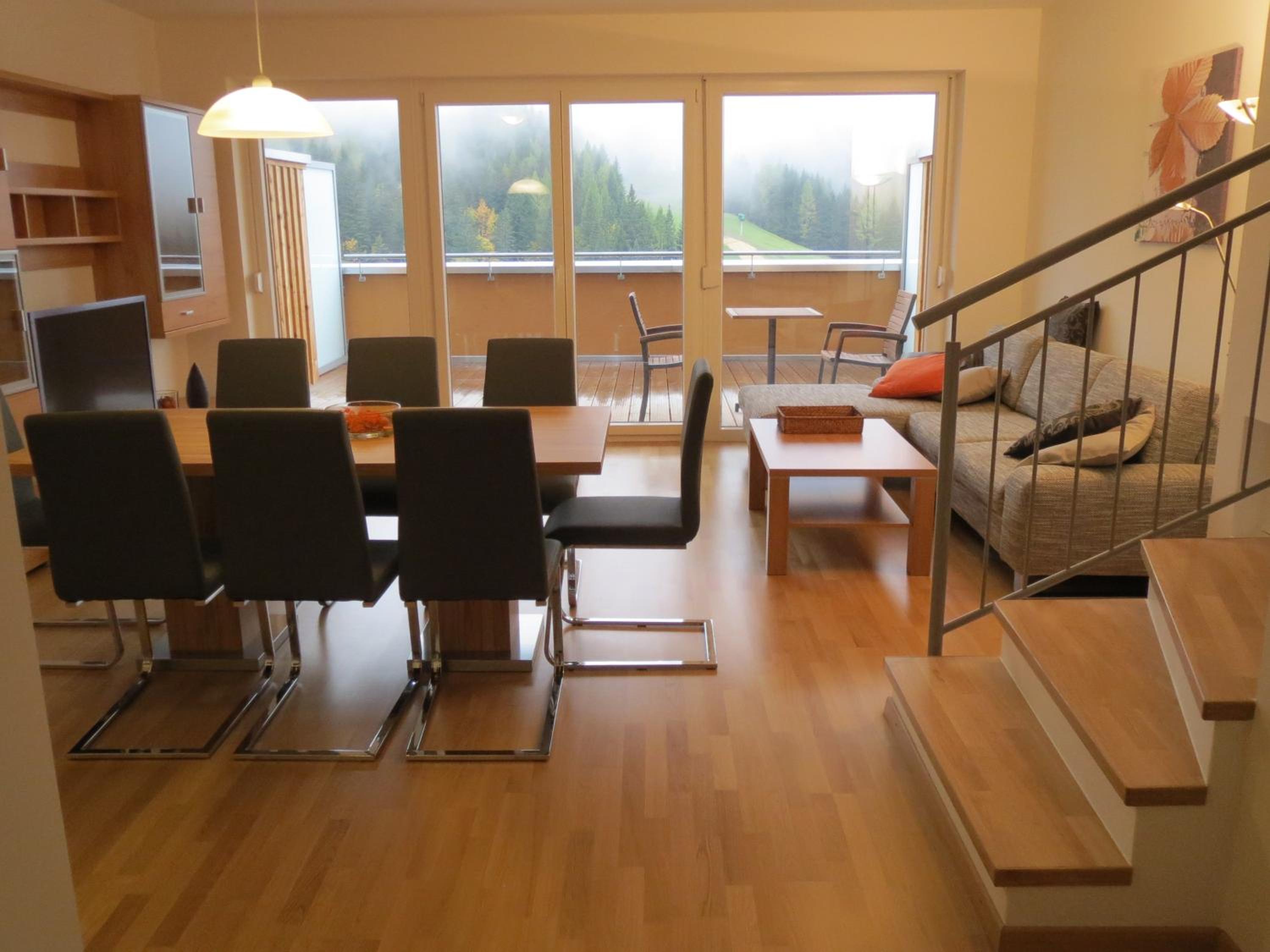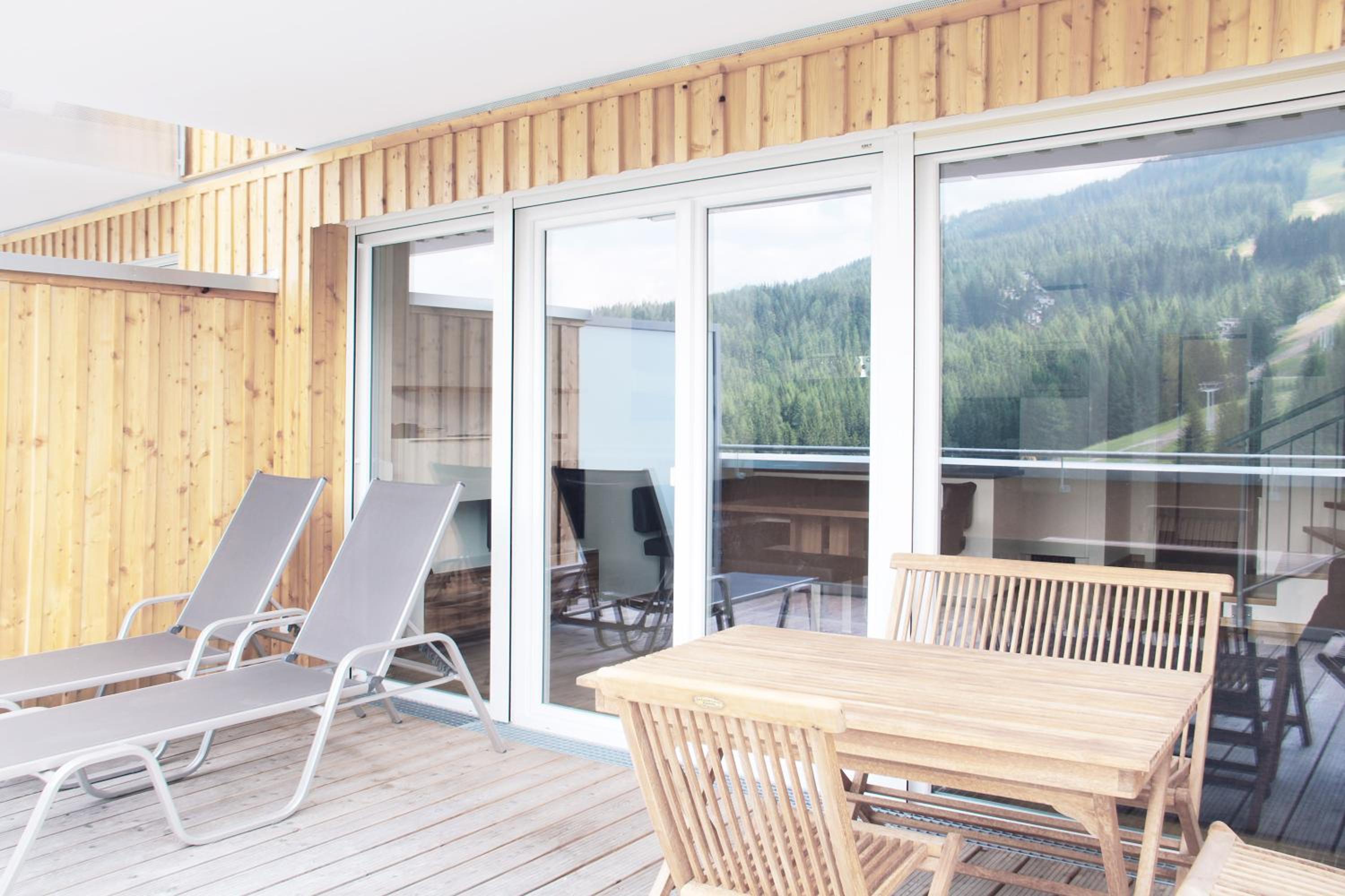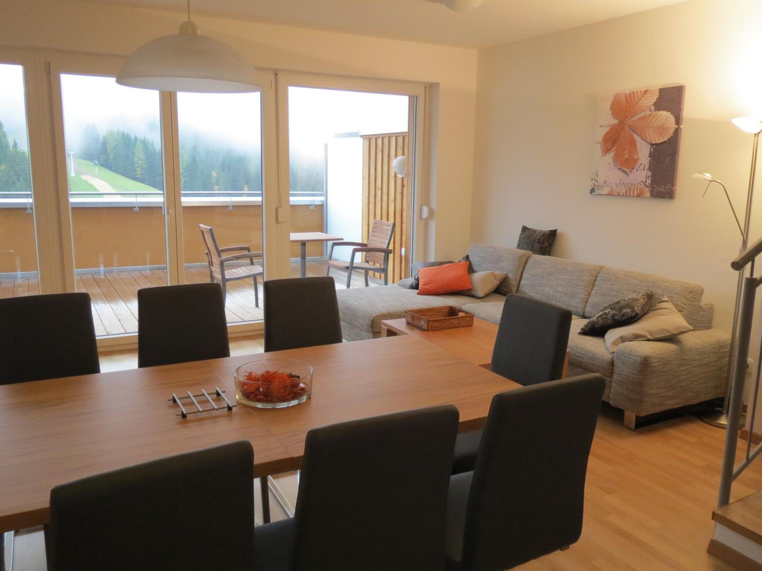 The Haus CKPK Lux apartment offers a luxurious stay right by the ski slope in the Sonnenalpe-Nassfeld Ski Area. Enjoy modern furnishings, a fully equipped kitchenette, and stunning mountain views from the terrace.