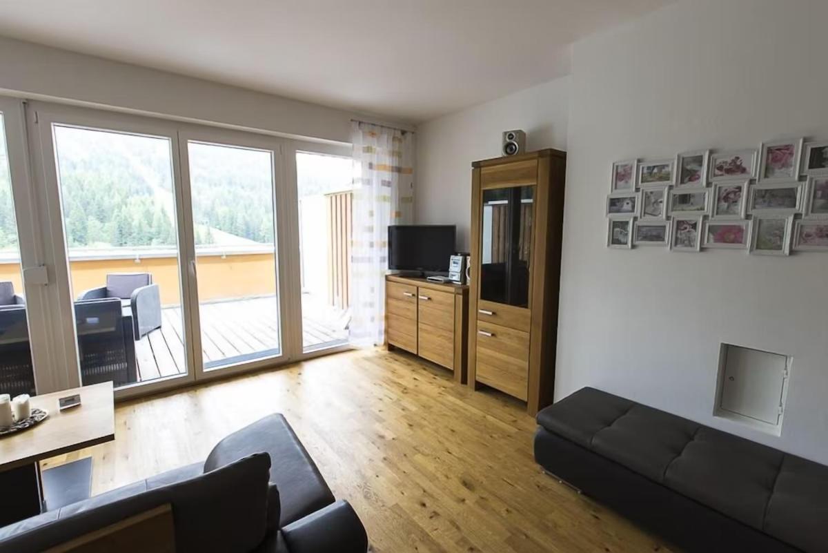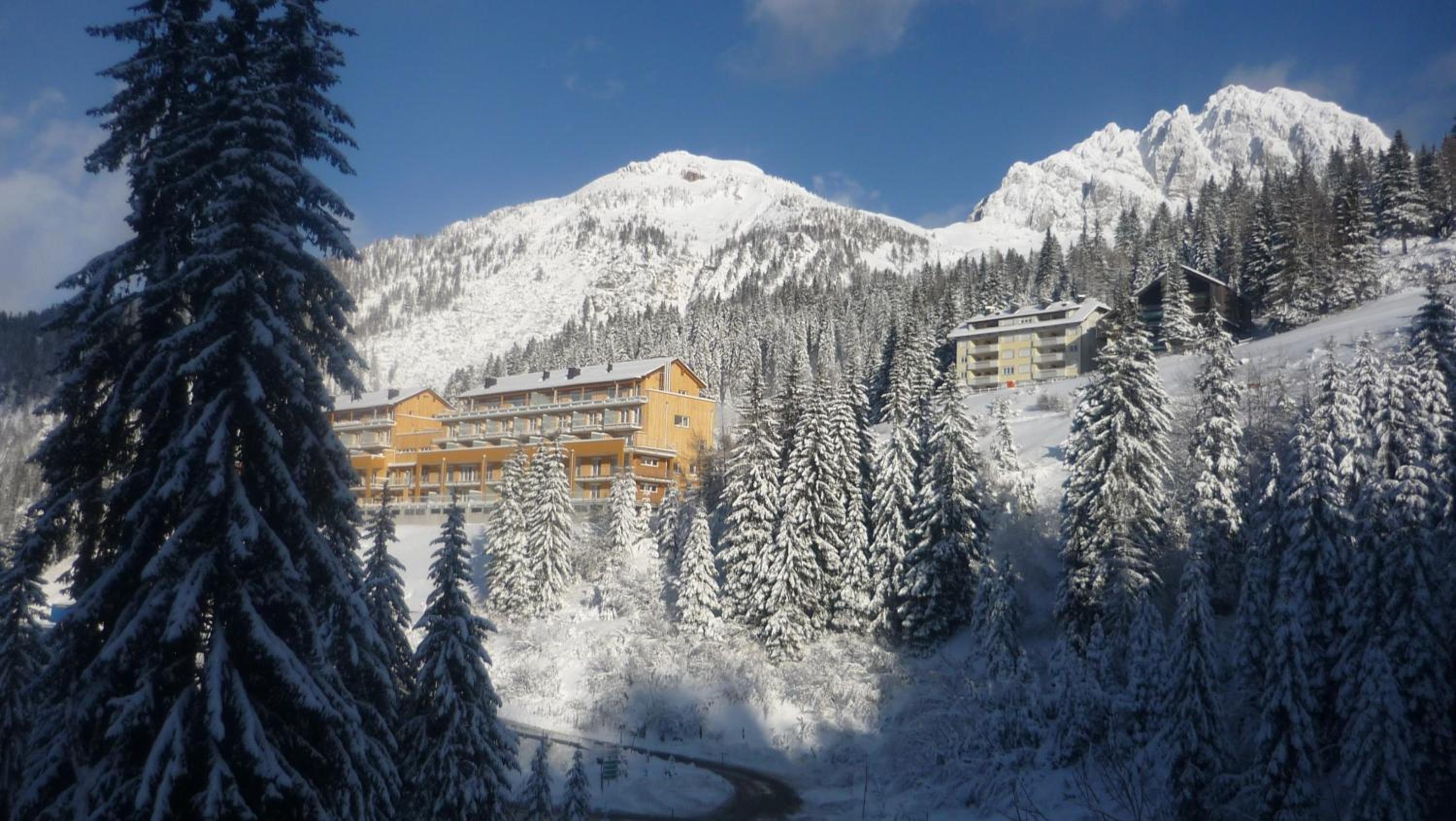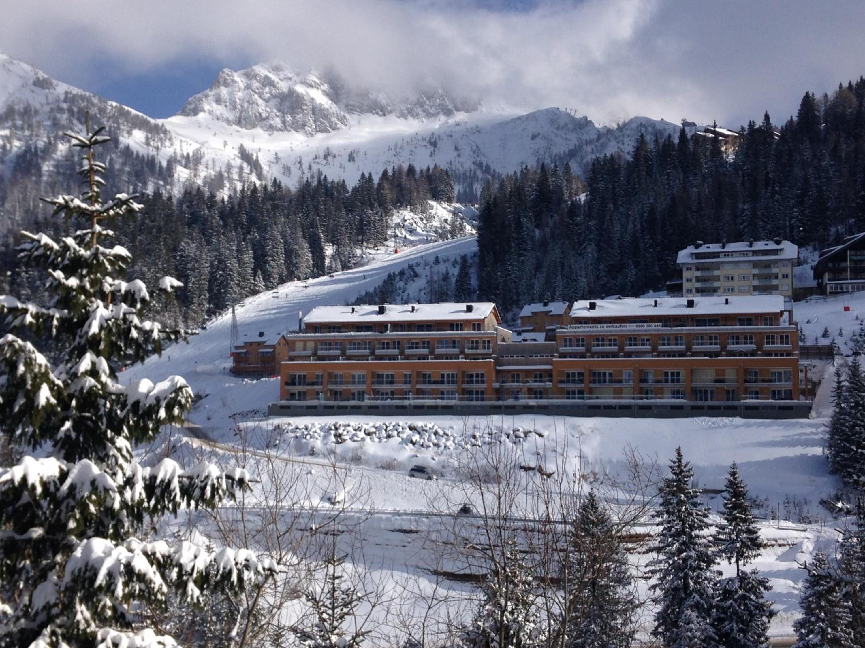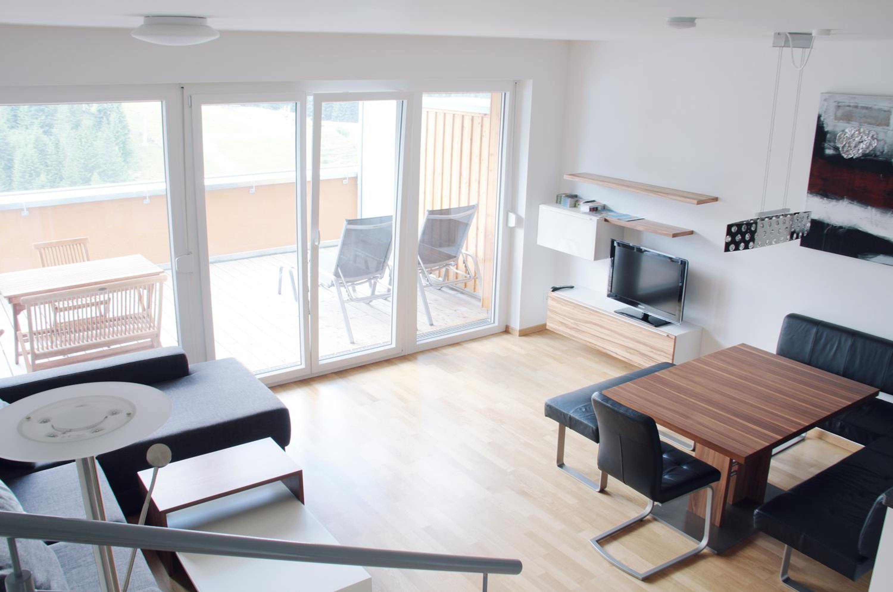 The Haus CKPK Lux apartment offers a luxurious stay right by the ski slope in the Sonnenalpe-Nassfeld Ski Area. Enjoy modern furnishings, a fully equipped kitchenette, and stunning mountain views from the terrace.