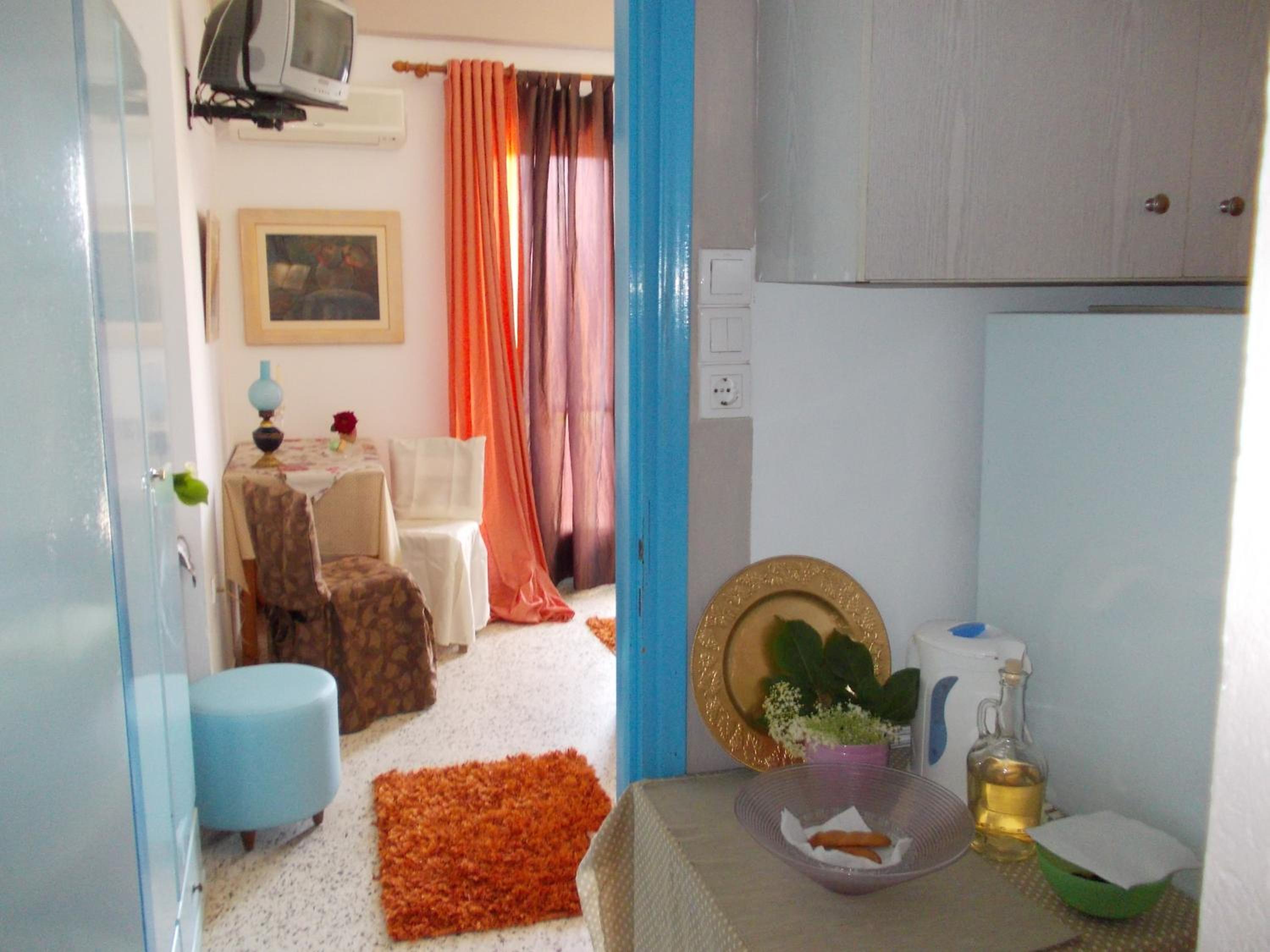 Очень доброжелательный и приветливый хозяин Костас, великолепное расположение, прекрасный вид из номера. В номере все необходимое для проживания.