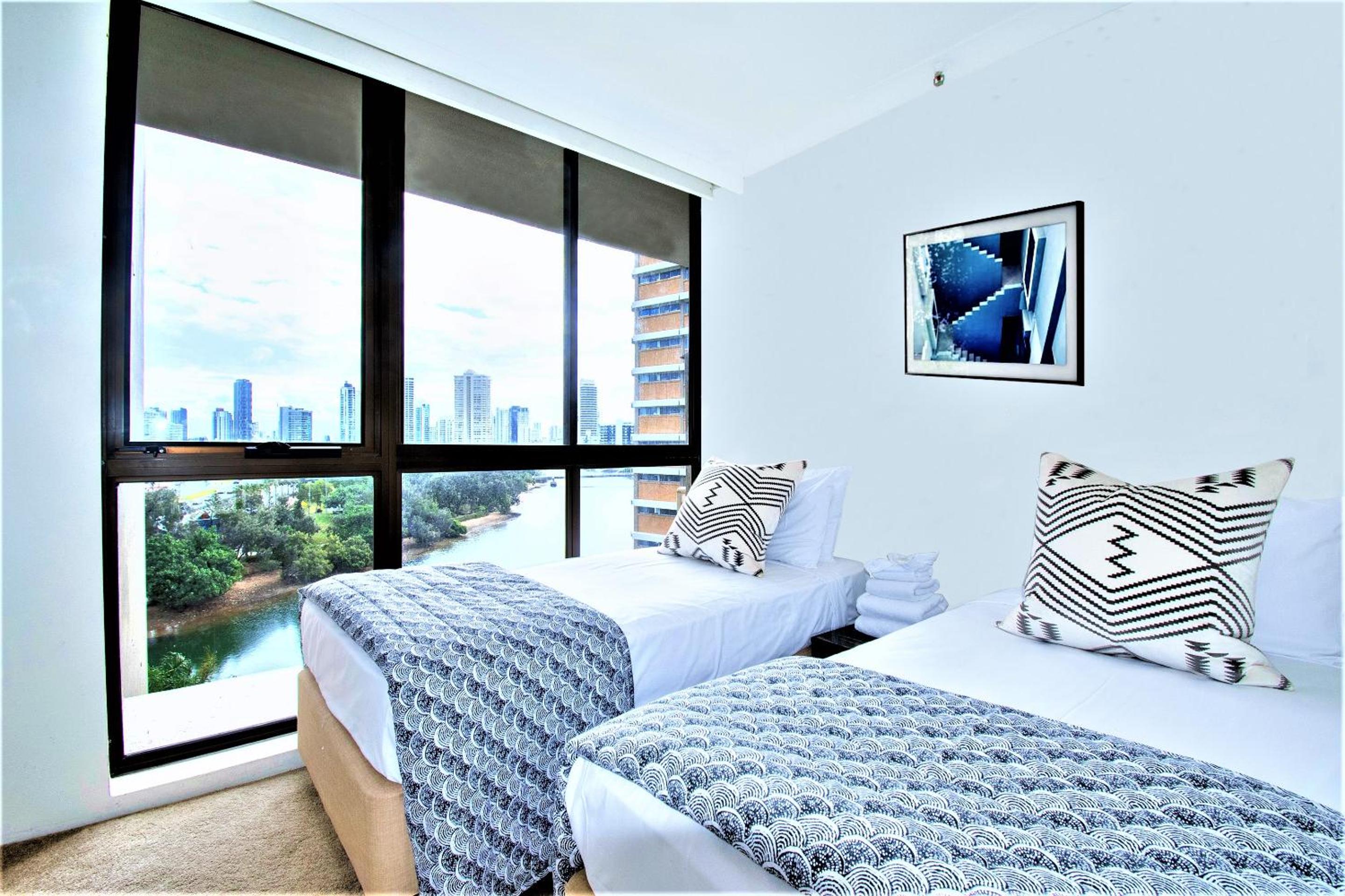 Beautiful modern spacious apartment with everything we needed. Stunning river and ocean views. Loved that it was a little quieter than in surfers but an easy walk and tram ride to all the popular locations.