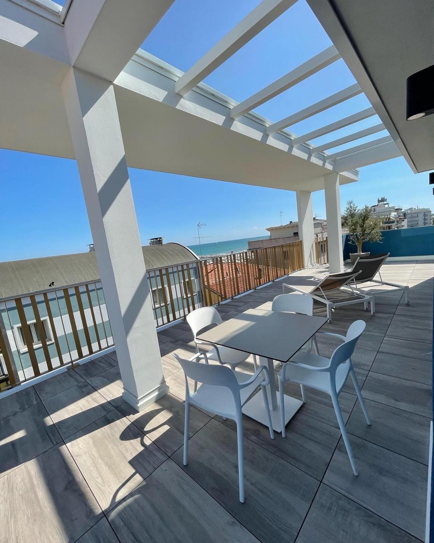 Sehr schönes Apartment. Gute Betreuung, nettes Personal. Kurzer Weg zum Strand und in die Innenstadt. Die Dachterrasse mit Blick auf das Meer und den Sonnenliegen.