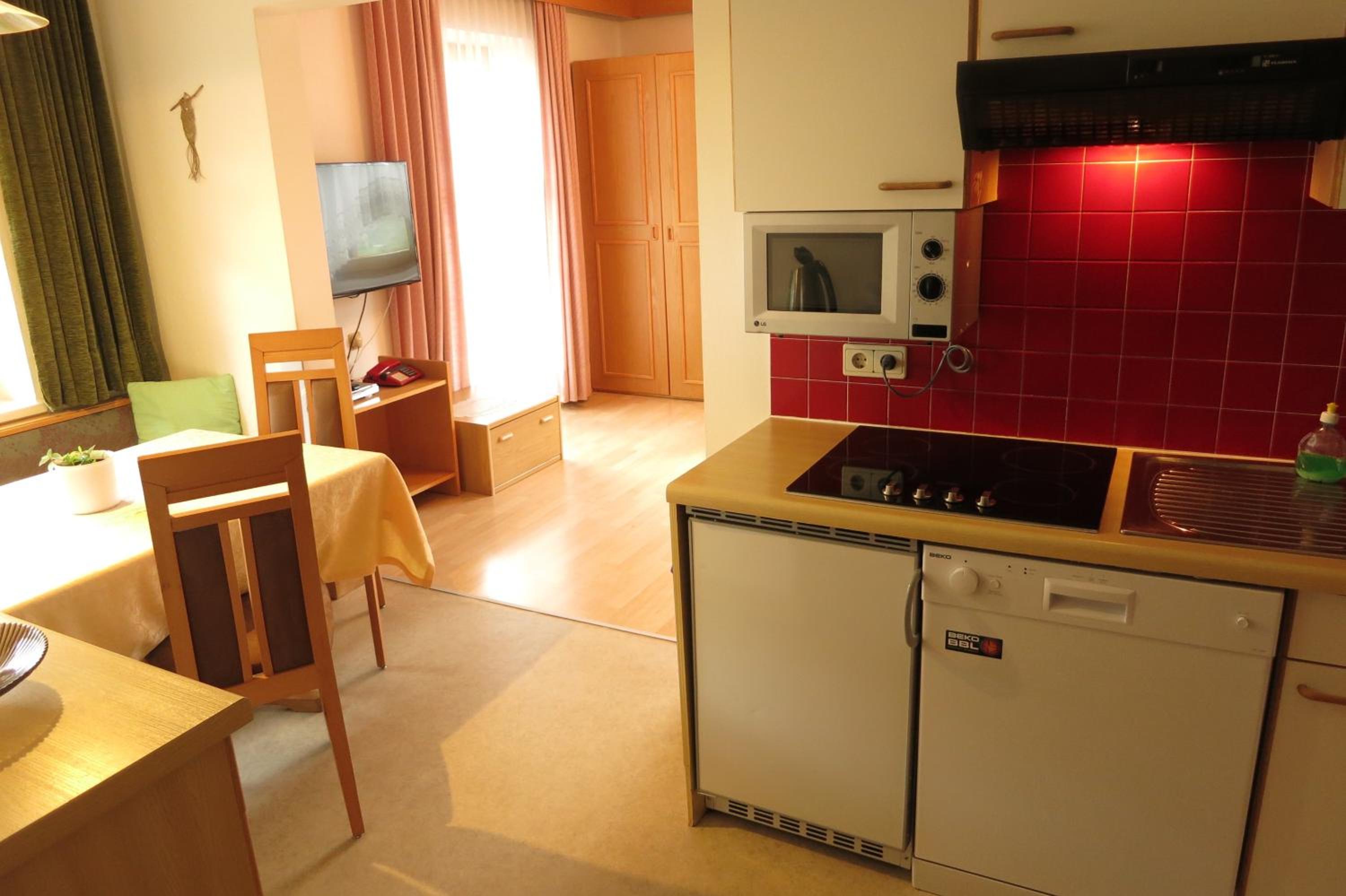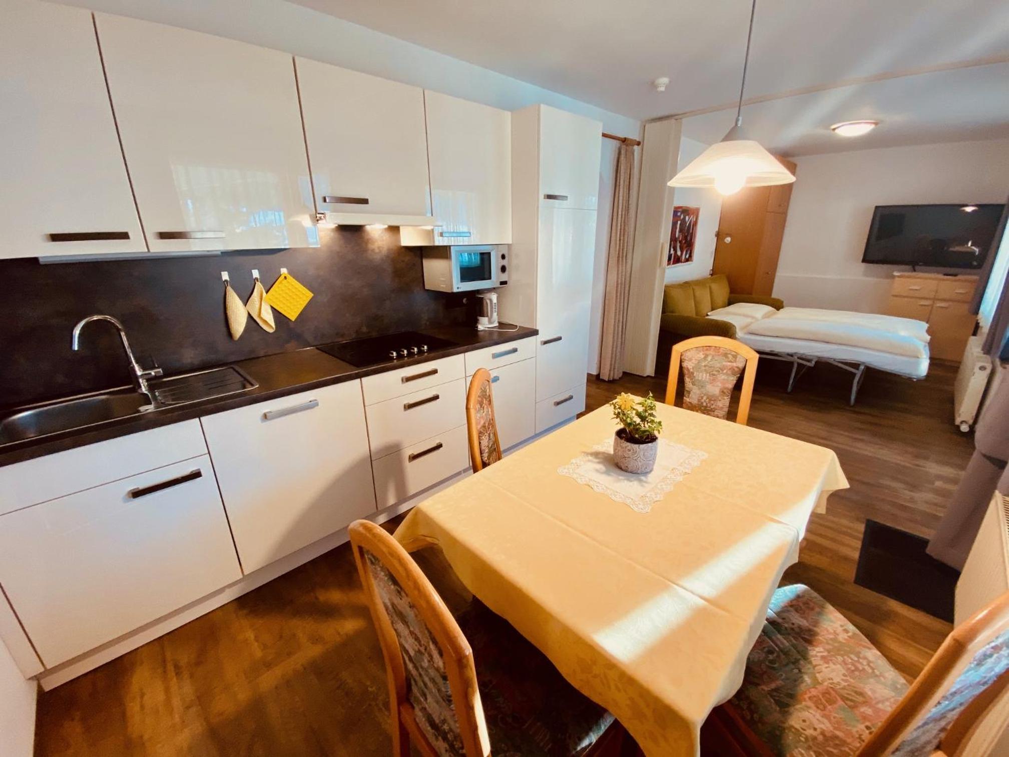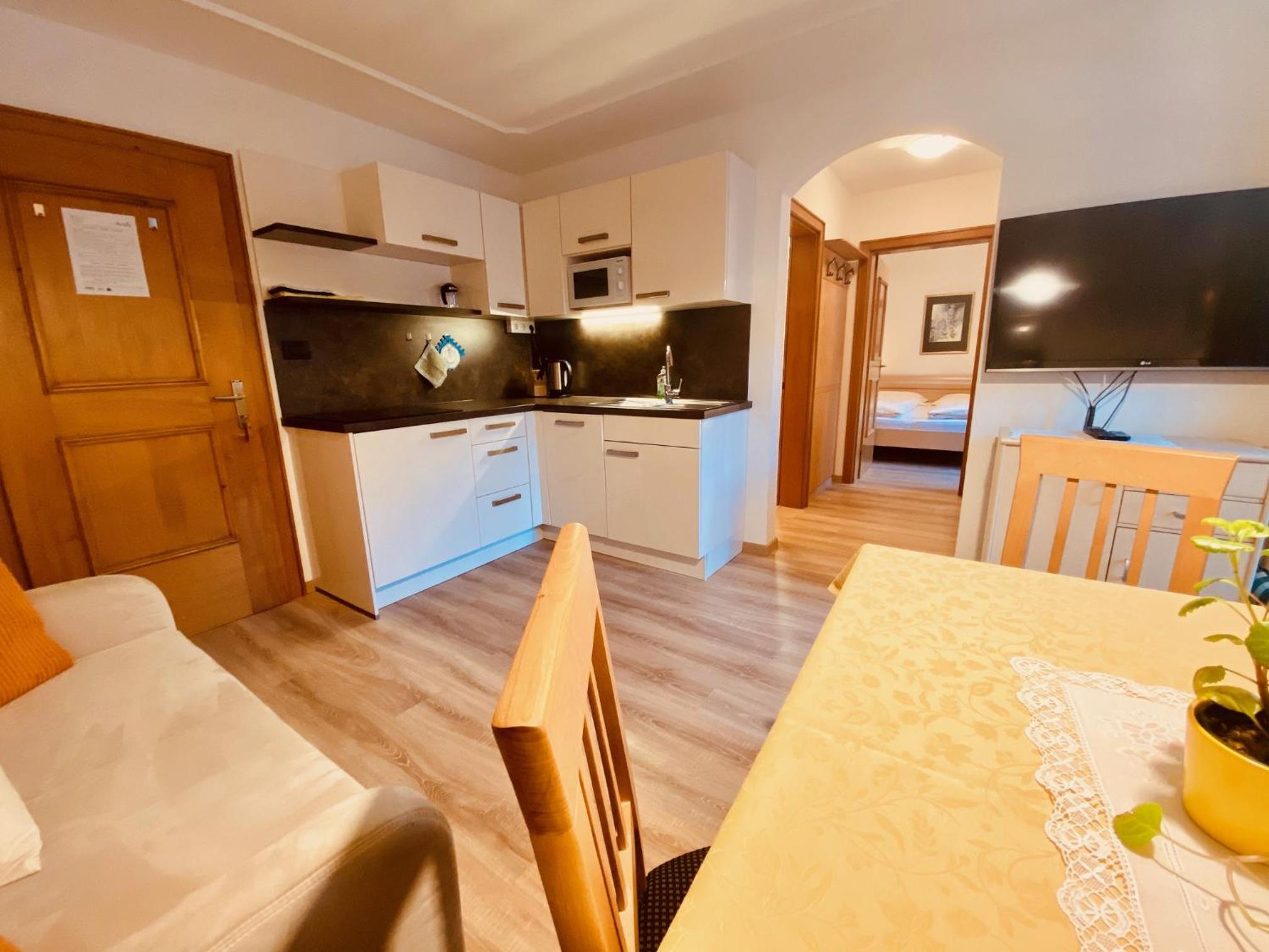 Das Appartement ist gut ausgestattet (z.Bsp. Geschirr). Wir waren 5 Erwachsene und hatten alle gut Platz.
