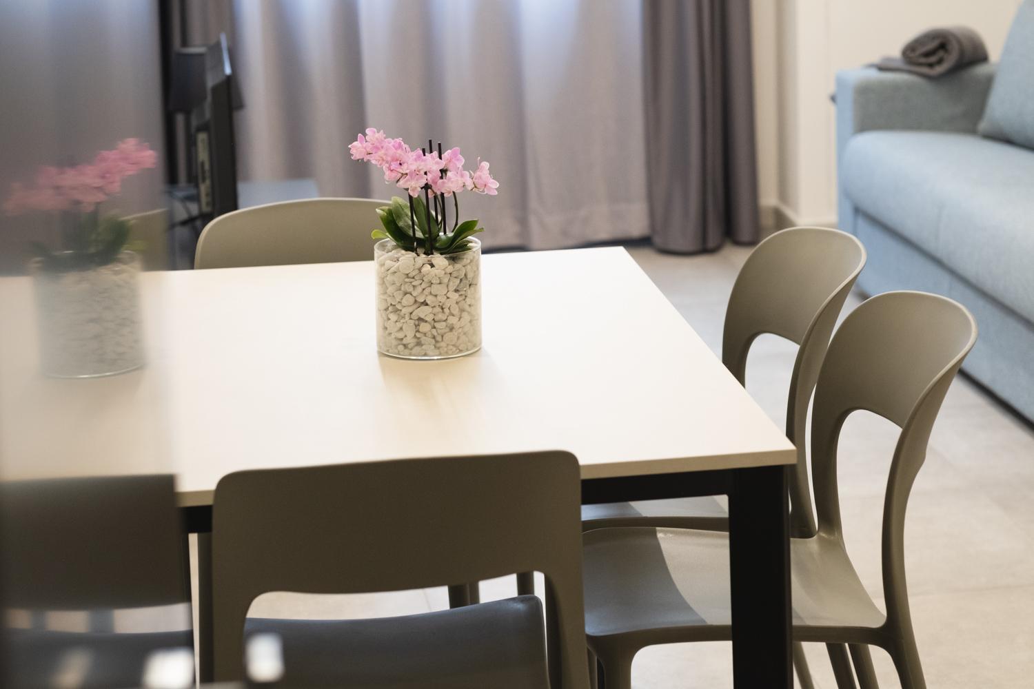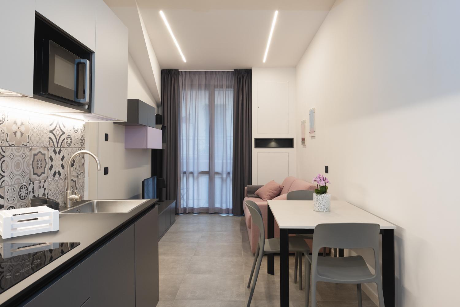 Struttura: elegante, funzionale e curata su tantissimi aspetti. Pulizia camere, letti comodi, angolo cottura ben attrezzato (oltre al microonde e ad un frigorifero, ci sono anche una lavastoviglie, un piano cottura ad induzione e la macchina da caffè con capsule).