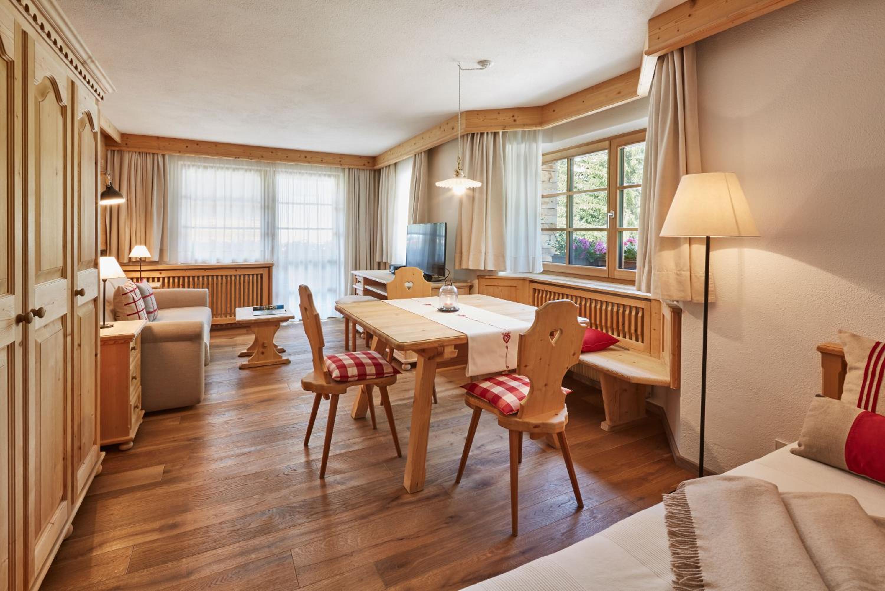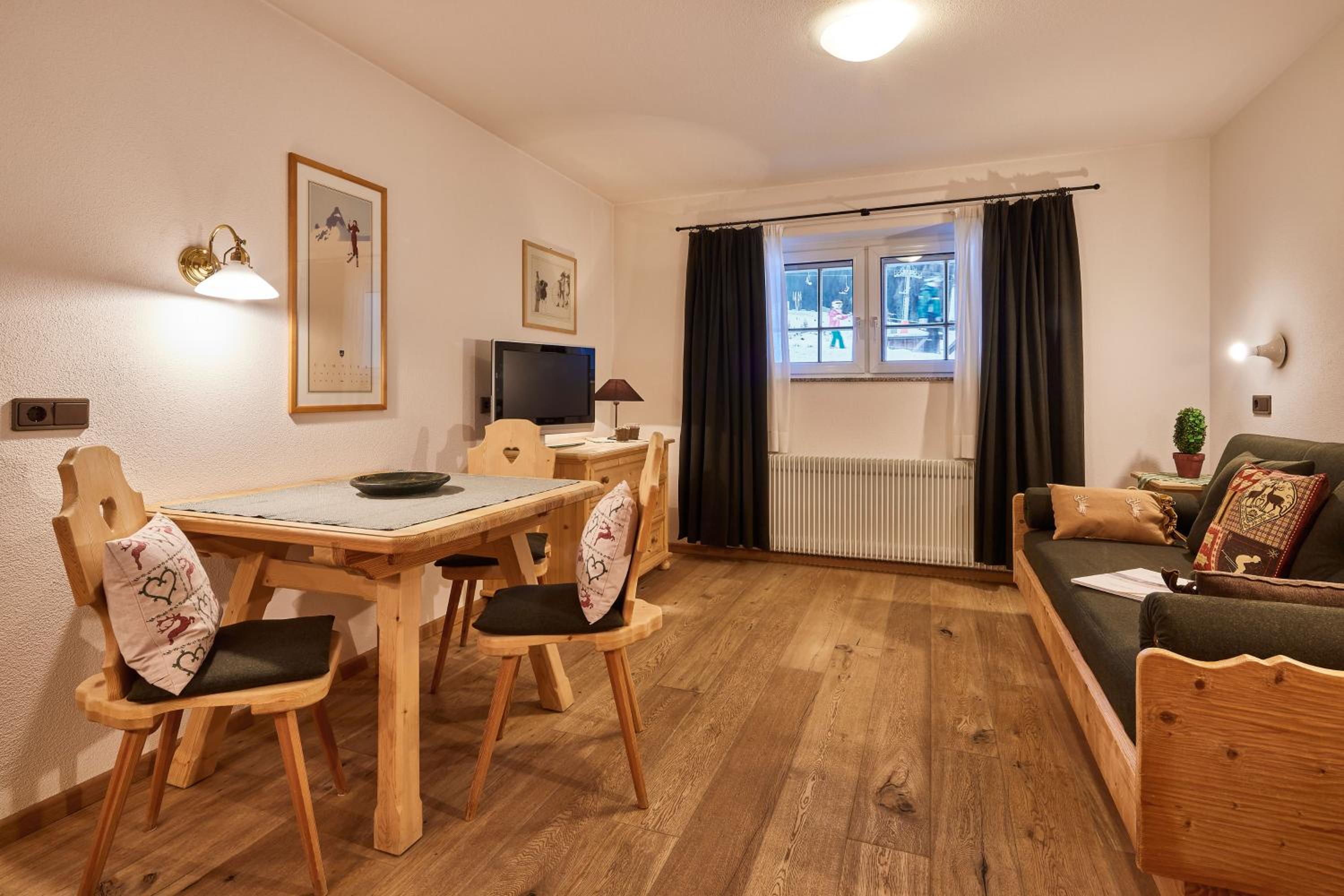 The location is ideal. It's ski in - ski out and a short walk to all we could need in Corvara... restaurants, ski rental and grocery store.