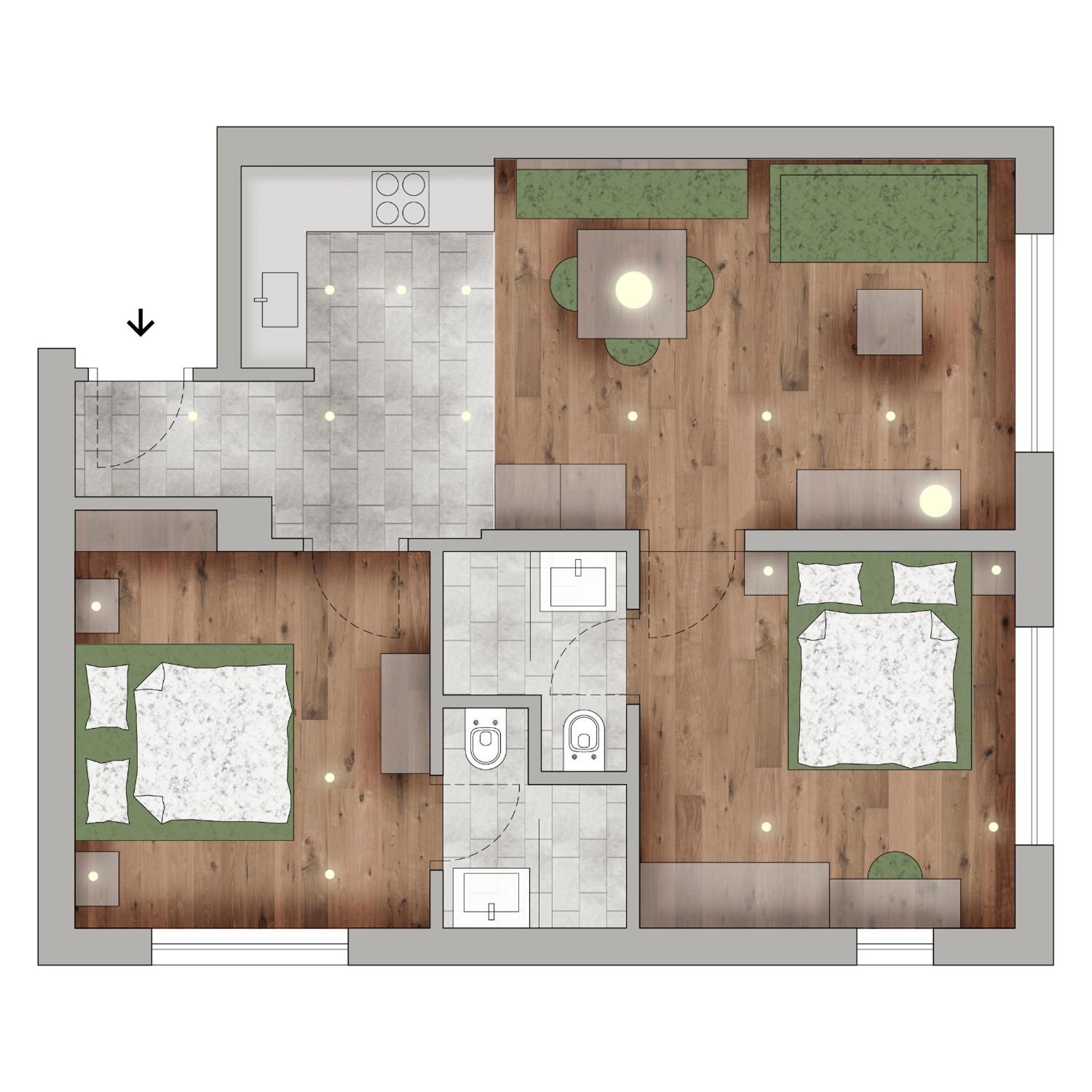 The location with ski in ski out to Col Alt gondola, and convenient access to the sellaronda. Also very close to everything in the town of Corvara. The building amenities were great and the apartment itself was clean and appointed well.