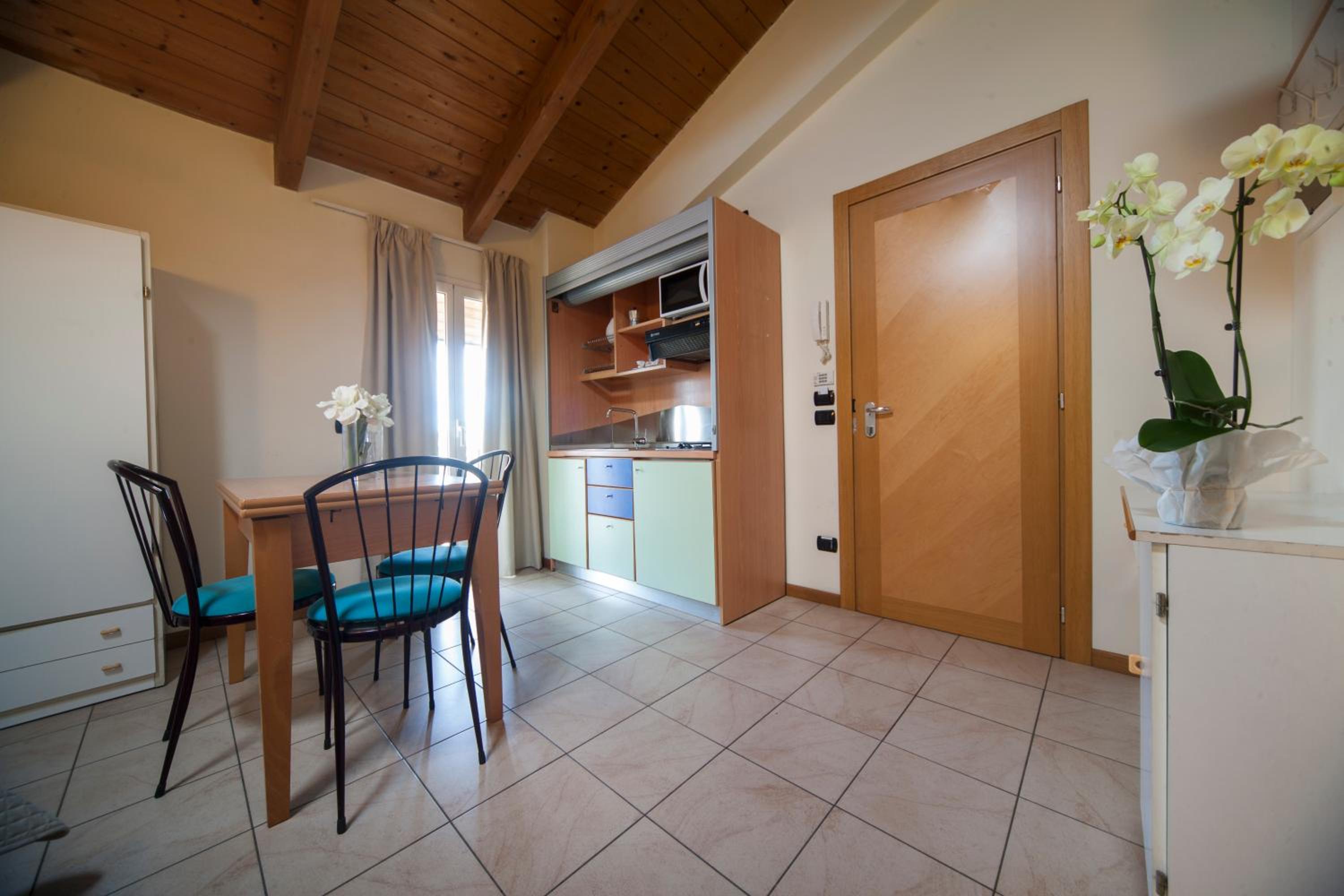 Residence il Capodoglio offers air-conditioned units with modern amenities like a flat-screen TV, fully equipped kitchen, and private balcony. The inner courtyard views provide a peaceful retreat for guests looking to relax.