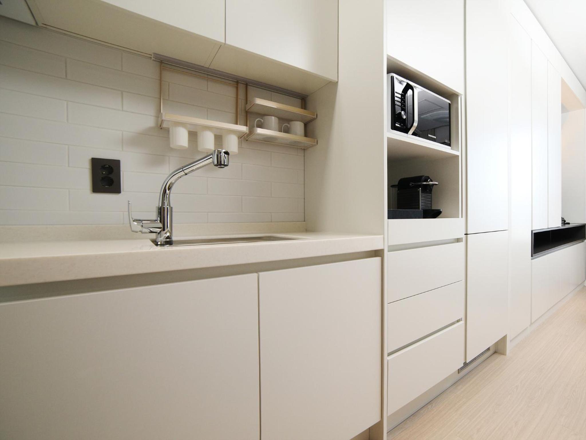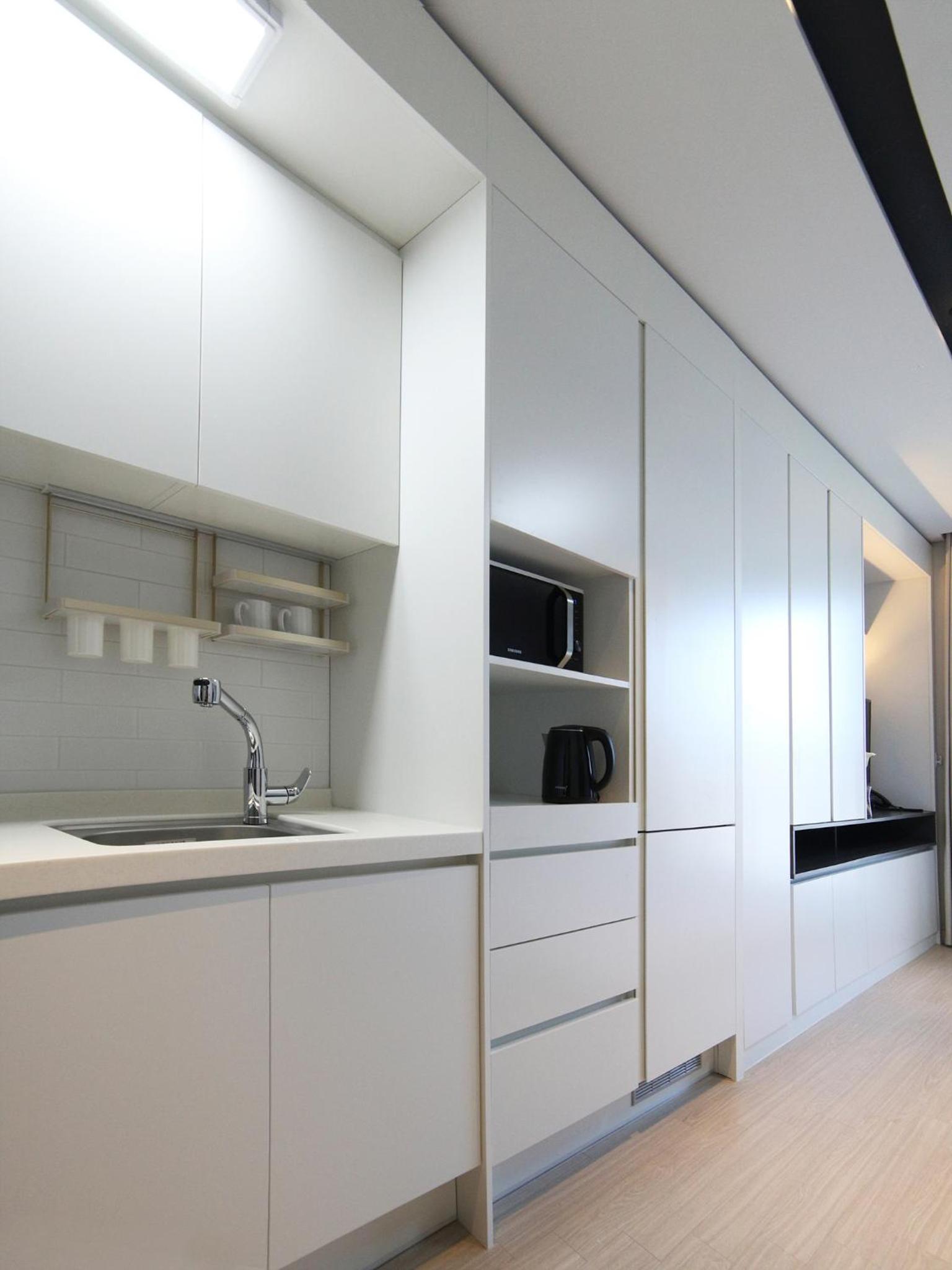 .간단한 티 테이블이나 의자도 없어 매우 불편함. 원래 원룸시설이었는지 붙박이 장이 공간을 많이 차지하여 그 결과