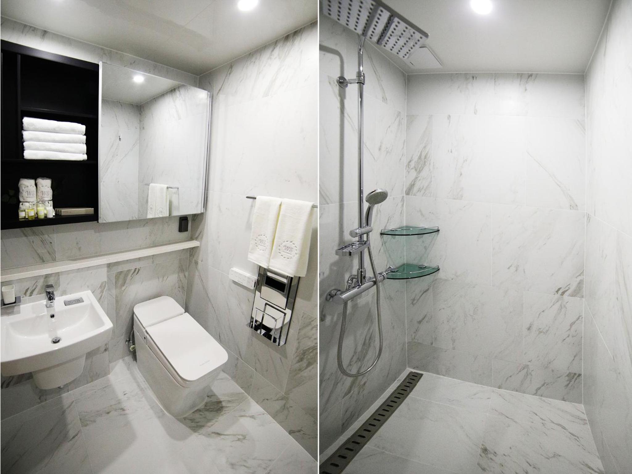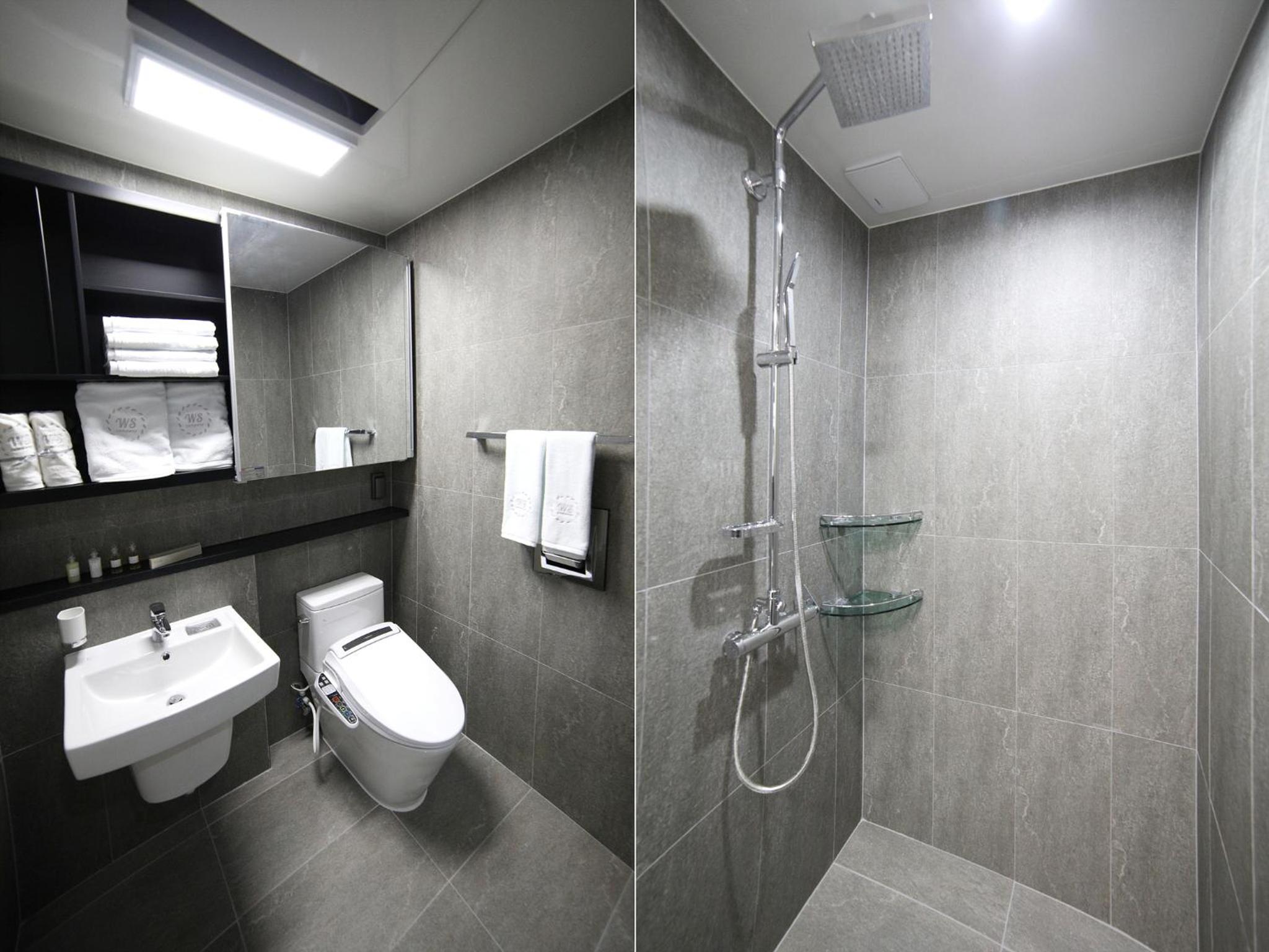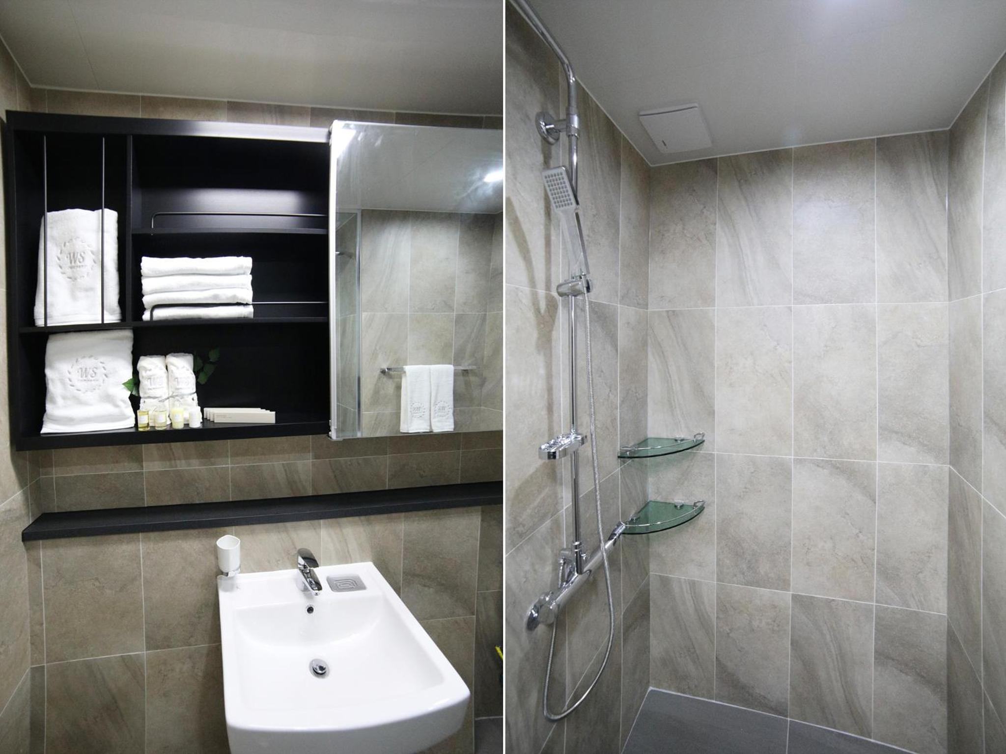 .특히 화장실 내부의 샤워공간의 일부가 트여 있어 샤워 시 물이 화장실 쪽으로 튀고, 흘러나가 매우 신경이 쓰였음.
