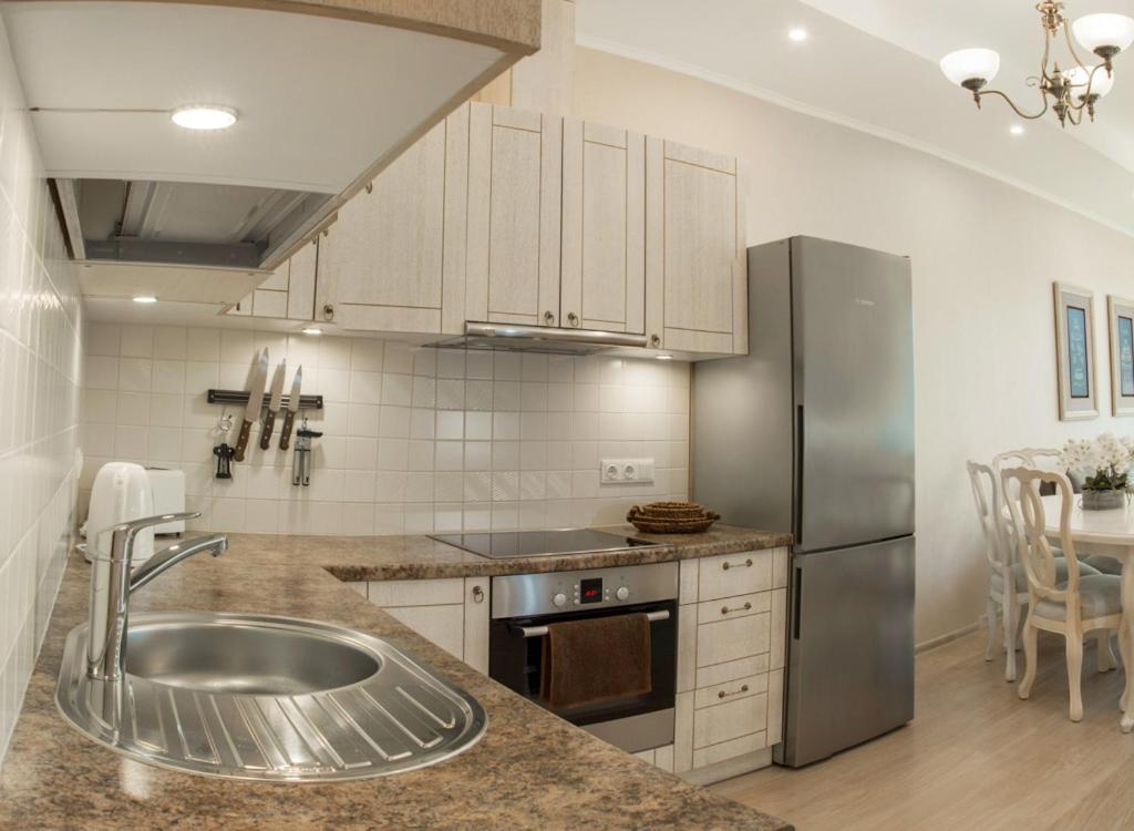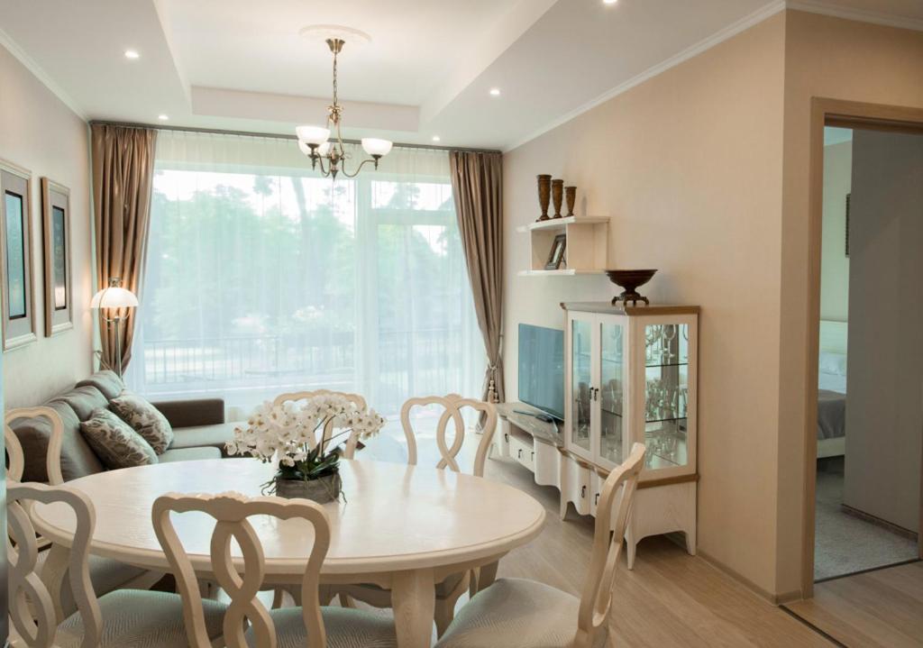 Апартаменты оказались просто идеальными: просторные, современные, со всем необходимым для жизни. Было приятно, что хозяева заранее позаботились о таких мелочах, как таблетки для стиральной машины и посудомойки — это сильно облегчает быт при длительном проживании. Расположение тоже отличное: рядом все юрмальские рестораны, магазины и набережная.