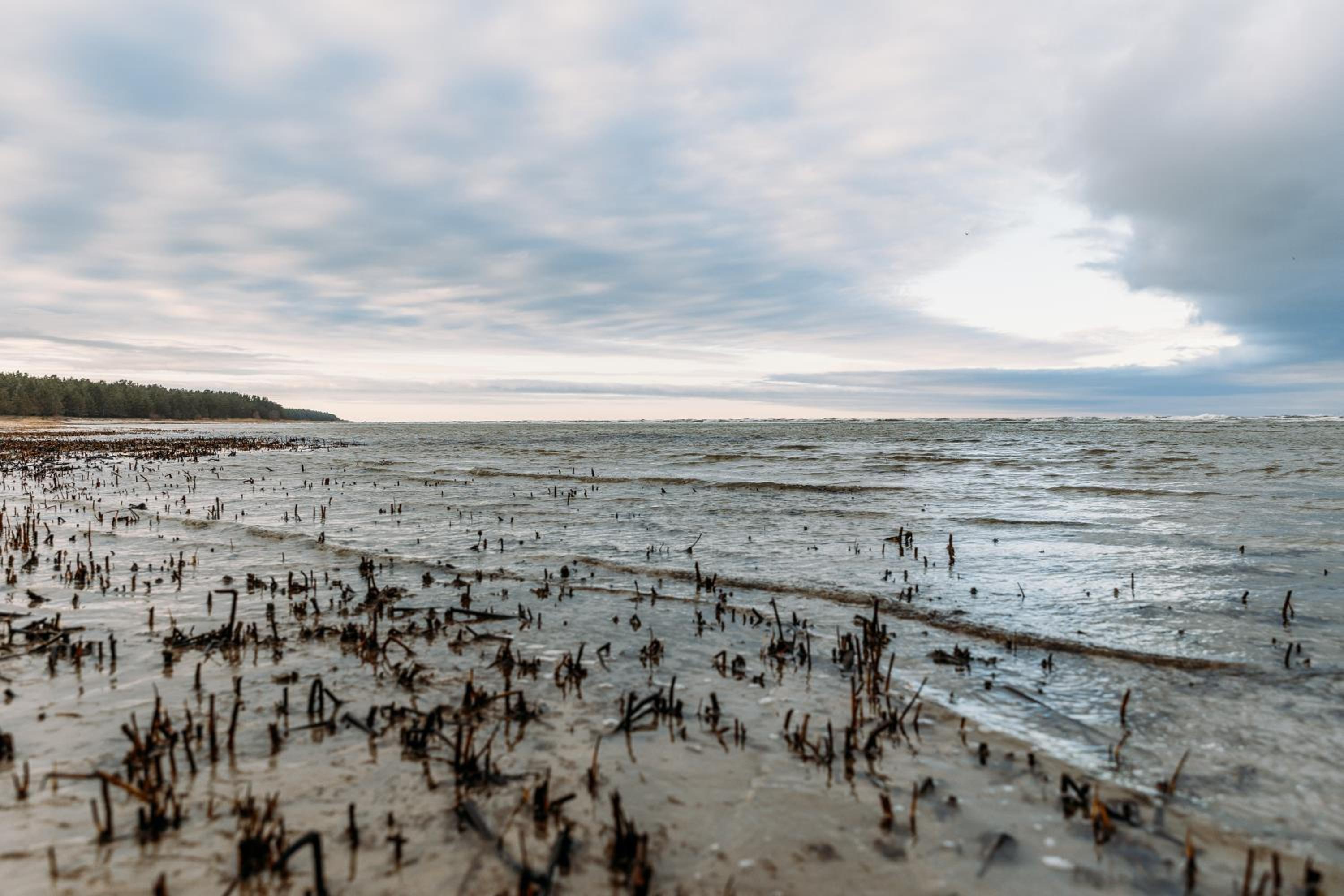 There are reeds in this part of the sea, ideal for fisherman but for swimming it is better to drive ca 15 mins to Mersrags lighthouse where the sea (with facilities) is great.